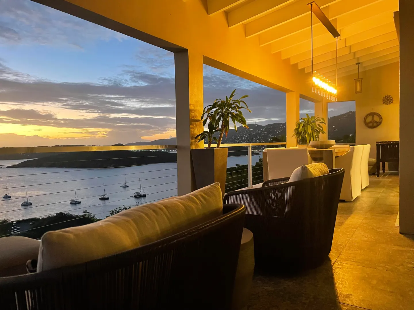 NEW CONSTRUCTION 2020!!Exquisitely redone post Irma and Maria, this fully customized new home nestled in the quiet hills of Estate Bakkero is a show stopper. The discerning buyer will recognize no expense was spared in the complete rebuild, from the bottom walls of the foundation up, of this stunning Luxury property. Entirely new plumbing, electric, pumps, water filtration, A/C etc.. Featuring a chef's kitchen with top of the line Thermador appliances, solid granite floors and custom cabinetry , elegant indoor/outdoor living with high end furnishings and solid brass fixtures, three bedrooms and two half baths in the main house, automatic generator and a beautiful pool with sweeping harbor views! A one bedroom apartment below brings a steady vacation rental income.