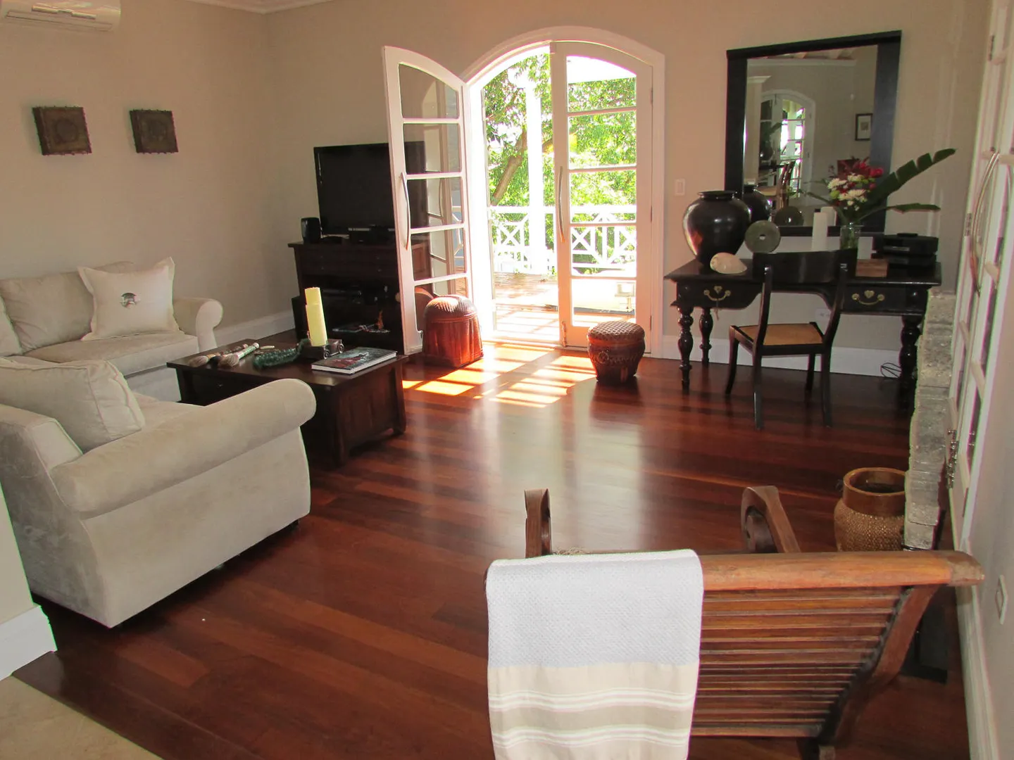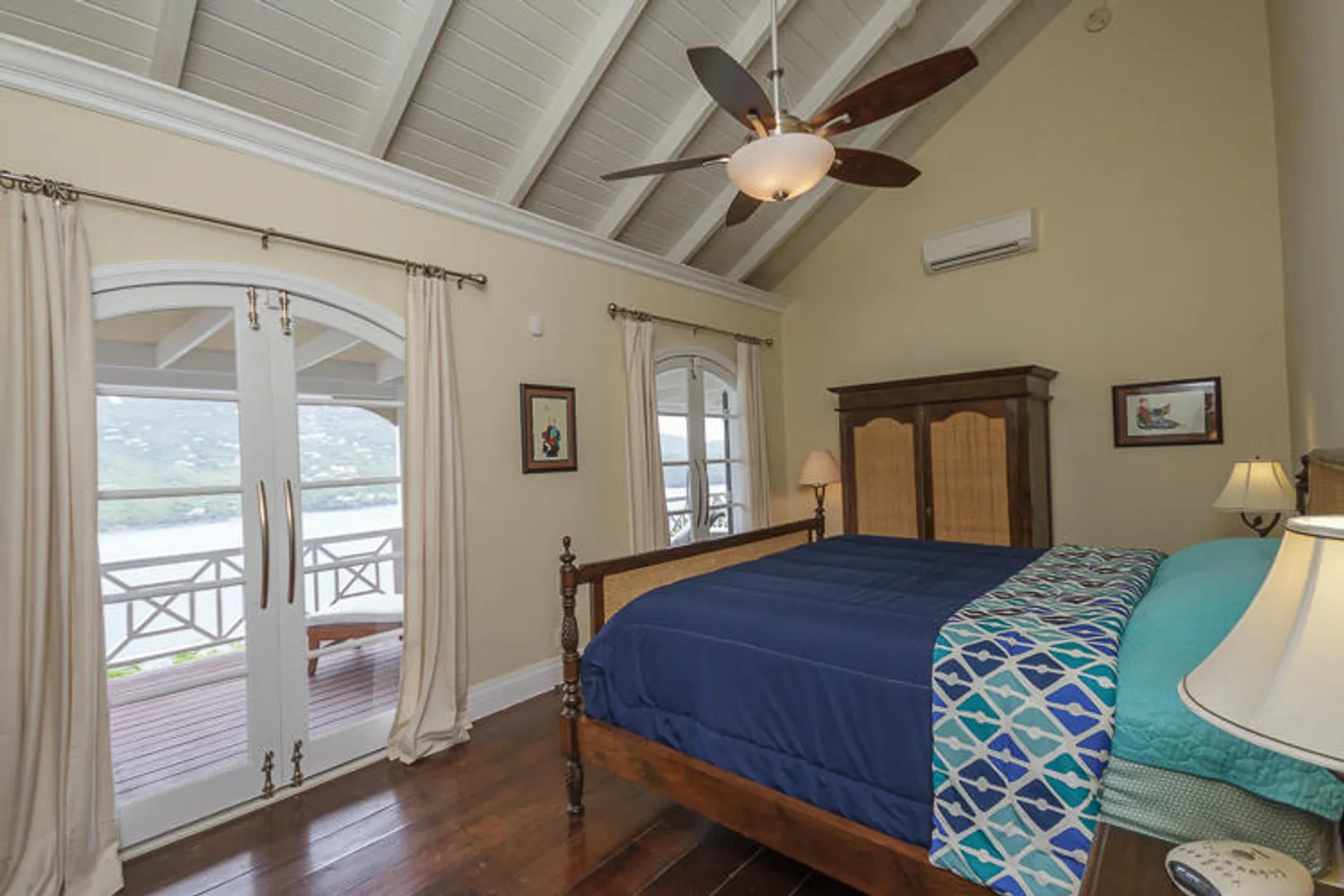 Walk in to this luxury home and you're beckoned outdoors to the visual feast of world famous Magens Bay. Sweeping vistas frame your kitchen and living room enjoyment, where signature finishes spell high-end tropical living. Two bedrooms in main home, third bedroom outside and downstairs, the fourth in a separate cottage. Splendidly remodeled in 2009. Hot tub on deck.Main residence, solid concrete. Cottage bedroom, wood. All appliances, GE Profile, including built-in microwave. Disposal in kitchen Generator is 17 KW automatic, powers entire house Two septic tanks, one for main house, one for the bedroom cottage Central irrigation system sustained by a grey water tank Split AC systems throughout the house and the cottage