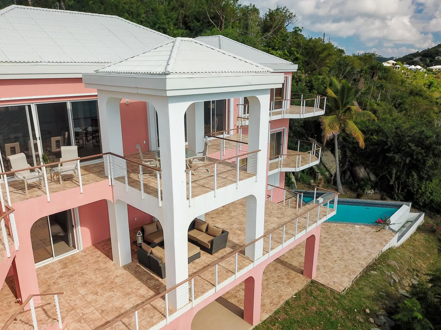 Incredible custom designed villa perfect as short term vacation rental or ideal family home in the prestigious Red Rock community! Three spacious guest wings feature bedroom suite, sitting area or 2nd bedroom, private decks and spa inspired baths. Great room boasts gourmet kitchen, wet bar, gorgeous cabinetry, large dining plus breakfast bar. Perfect layout for entertaining with expansive multi level sun decks overlooking your gorgeous pool and hot tub with a birds eye view of Magens Bay. Family Room/game room also features wet bar and ample outdoor entertaining space. The villa includes a spacious 2 bedroom apartment with separate entrance perfect for caretaker, mother-in-law suite or as rental. Make this your new island dream home!