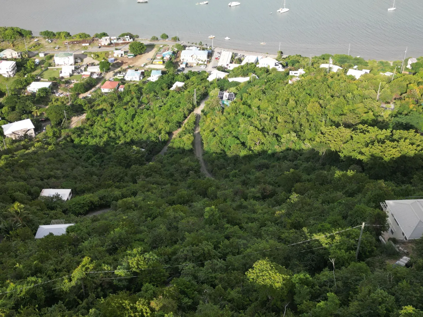 Improved parcel with paved driveway, stone retaining walls, septic tank and expired building plans. Impressive sea views overlooking Coral Bay and beyond to the BVI. Downhill build. Electricity to site previously. Perfect opportunity toadd to the existing infrastructure and add to your liking.