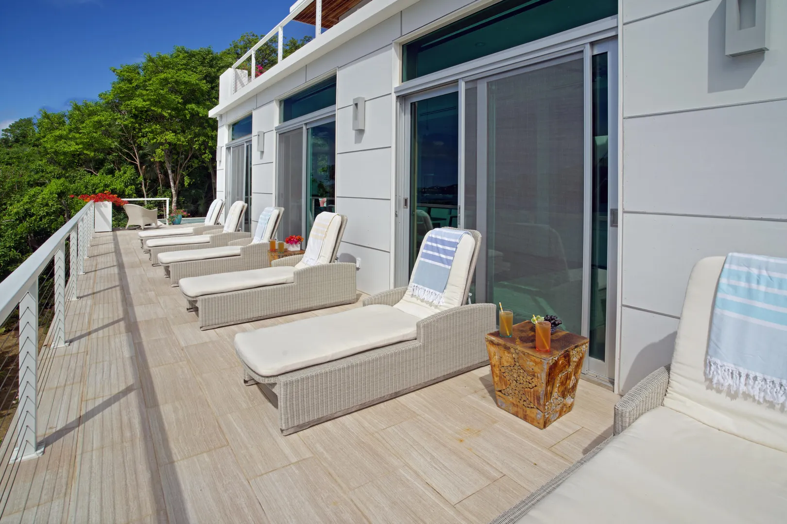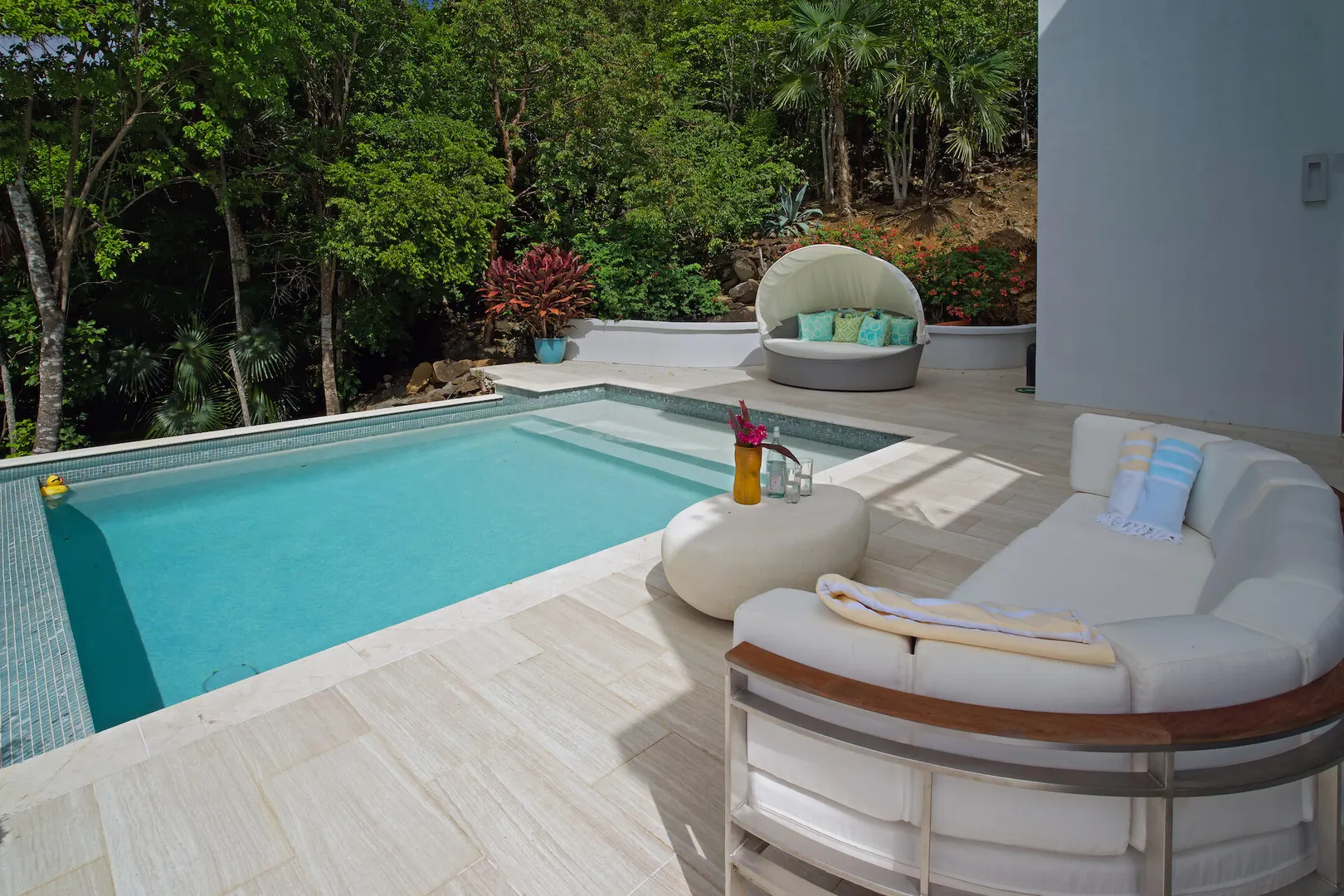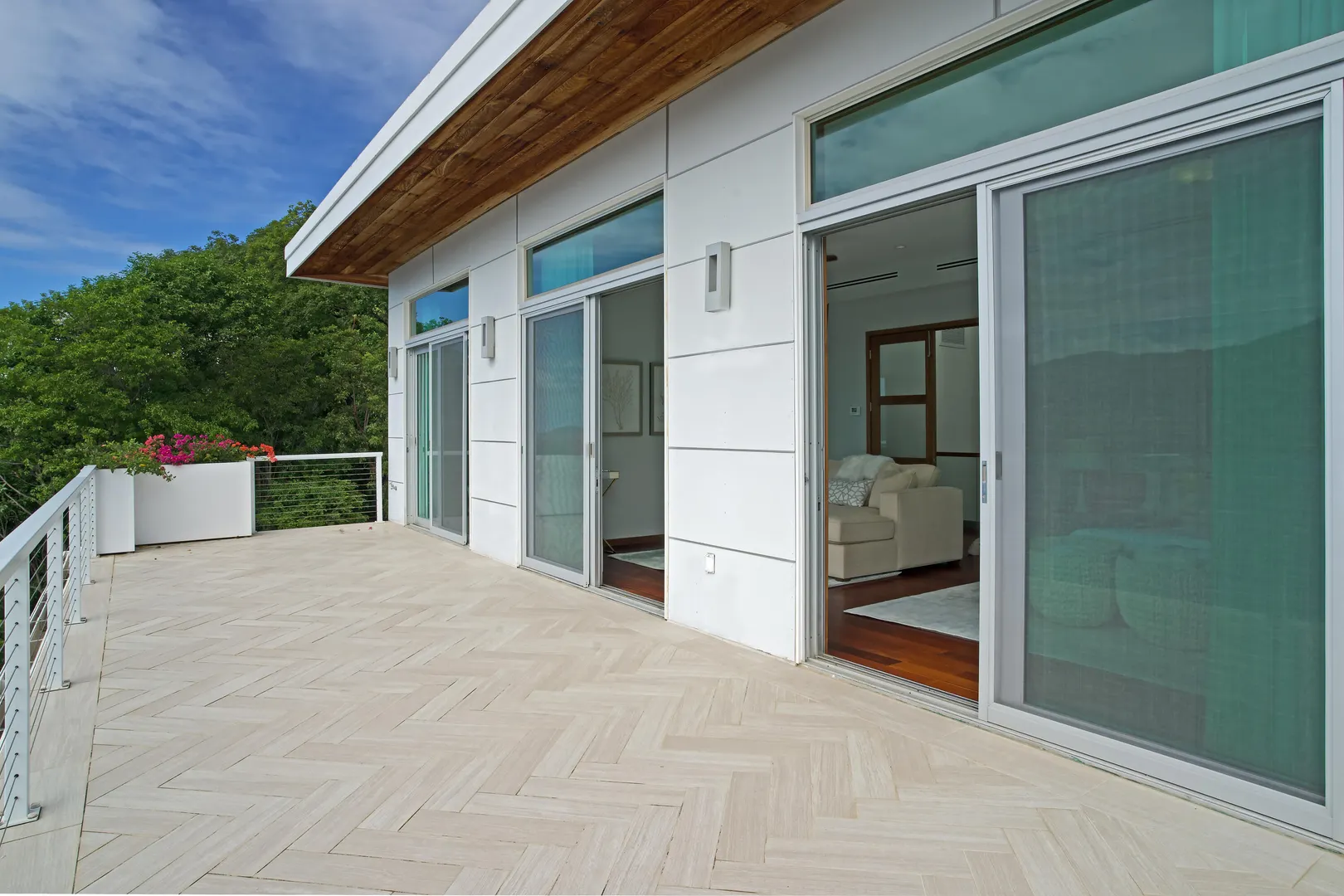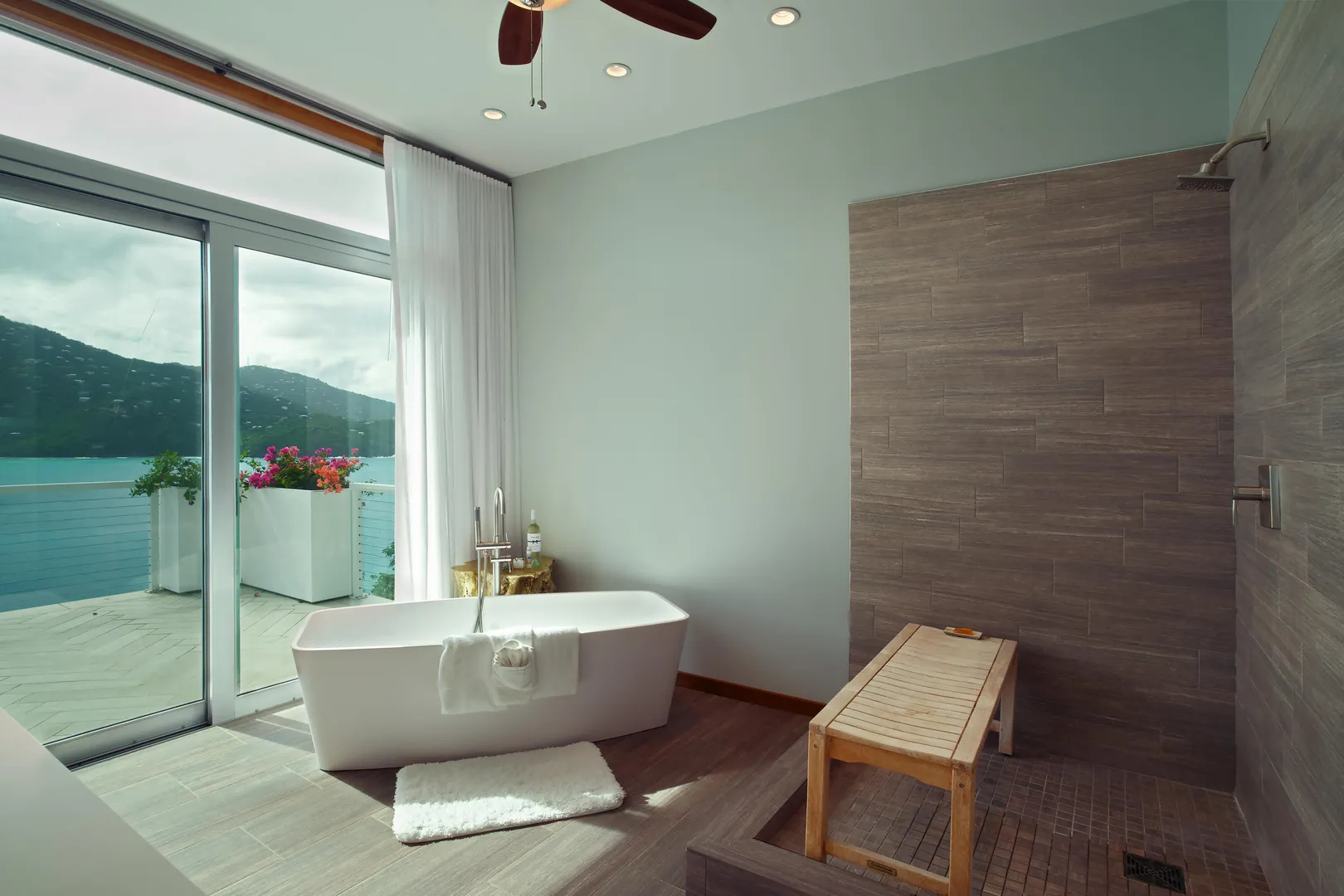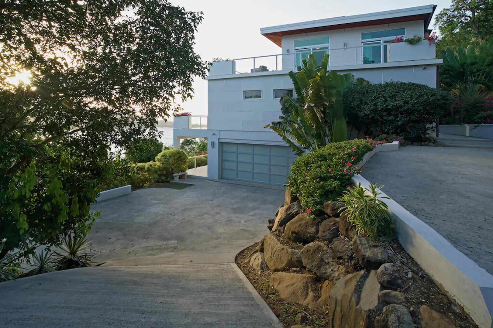 Perfectly located in the gated community of Peterborg Peninsula, this gorgeous 4 bedrooms 4 bath multi-level pool villa sits on a fenced one-half acre directly above Magens Bay.Go through the smart gate and either park in the air conditioned garage or drive right up to the front door. On the garage level there is a spacious one bedroom apartment with washer/dryer hookup and large covered deck with ocean views. Apartment can be accessed from the main house or a separate entrance, which makes it perfect for a guest or staff apartment or a very private home office. The main level is open concept with wall to wall sliding glass doors to take in the ocean view. The flooring is a mix of tile and Brazillian cherry wood.