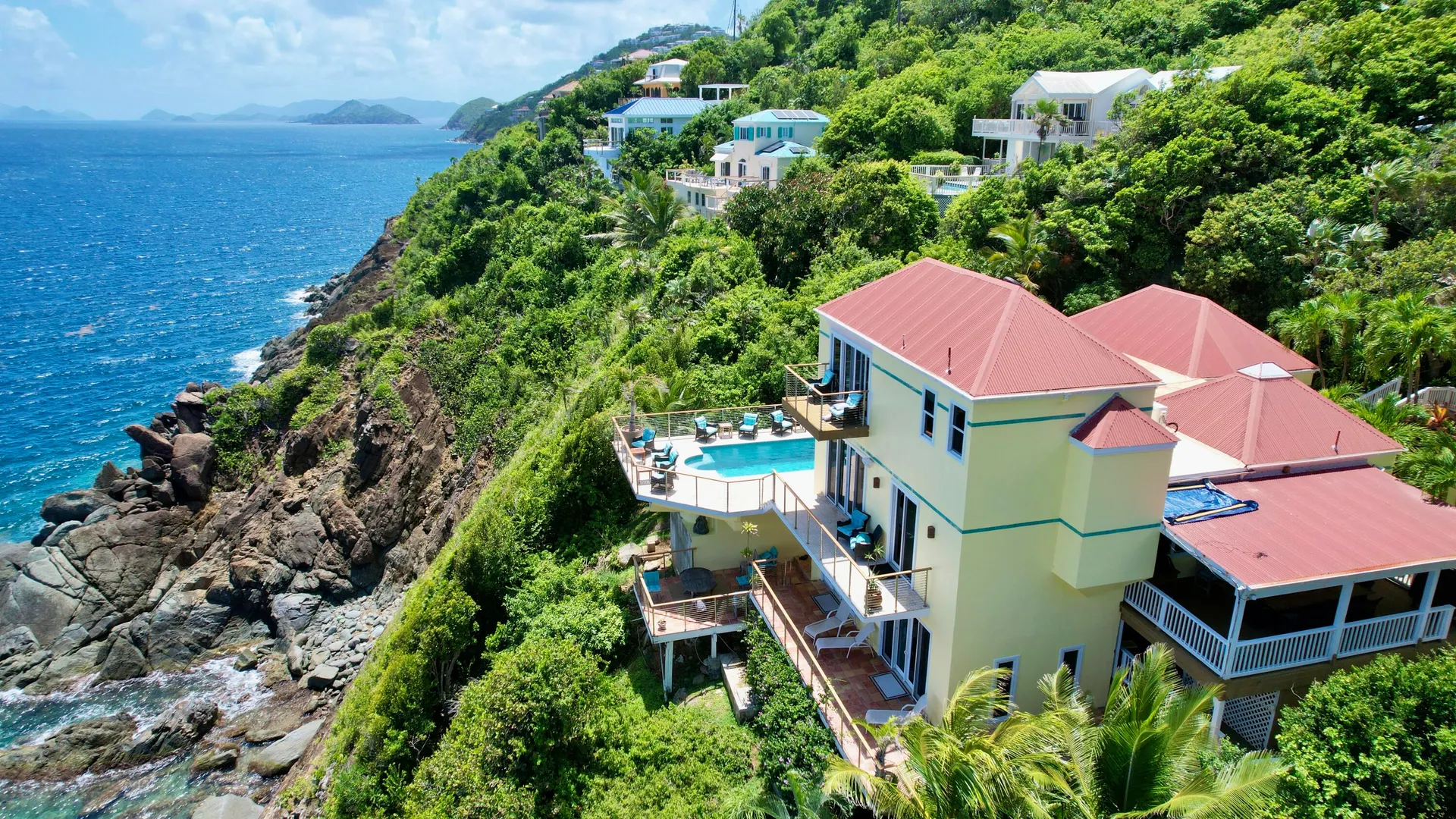 VILLA SORISSO!!!!!! Absolutely the most incredible views and ocean surroundings in Peterborg East. Waterfront Turnkey Luxury Villa with an impressive short term rental history. Fully furnished and accessorized with attention to detail, the 5 bedroom 5.5 bathroom home is in a gated private community with THE VIEW, DOWN ISLAND AND BEYOND!!. Property has hurricane rated doors and windows, 5 filter water purification system with UV light, 28 KW generator with auto transfer system, security cameras and TV's in every bedroom!! Listen to the ocean sounds on the decks and pool area. The dream of being in the Caribbean is alive and well at Villa Sorriso!!!