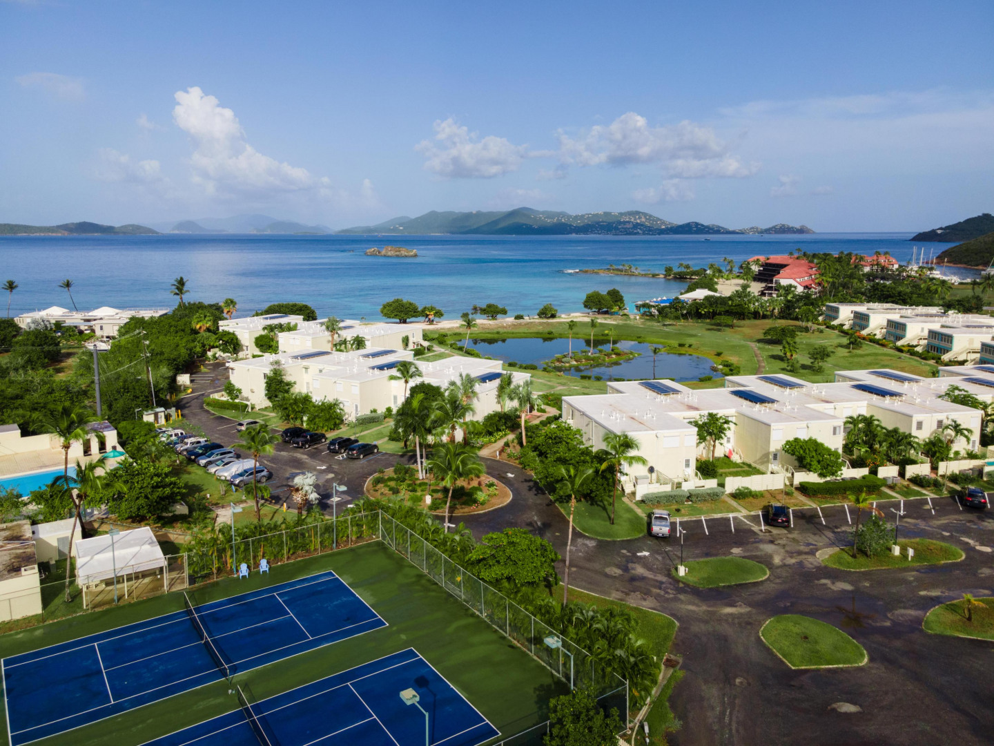 Top Floor - Great view of Beautiful Sapphire Bay Beach + St John. Well Situation for wonderful vacation rentals with 1 minute walk to the beach!! or 1 minute walk to huge salt water swimming pool!!Move Right in... well appointed for great beach rental program!