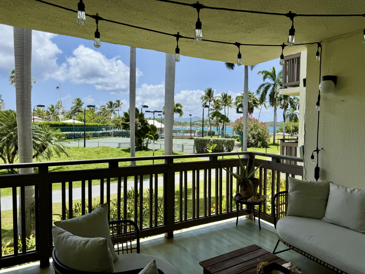 Walk to neighboring St. Thomas Yacht Club, this beautiful 2 bdrm/2 bath condo features a fabulous kitchen, numerous updates and a stunning view from its private balcony. Enjoy a full complement of amenities including a fitness/event center, tennis courts, beach, pool, on-site automatic standby generator, storage facilities and beautifully manicured grounds with well-lit pathways. Just a short 5-minute drive to Red Hook, with its array of shops, restaurants, marina, and ferries to St. John and the BVI. Nearby properties also include Cowpet Bay East & West, The Elysian, Ritz Carlton and Secret Harbour. Very popular and active short-term rental investment for the current owners who maintain a high guest review star rating. (see virtual tour's interactive floorplan experience)