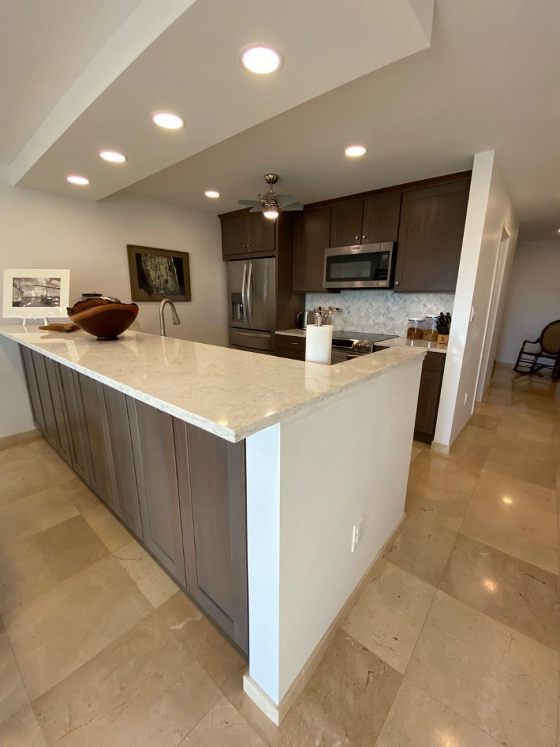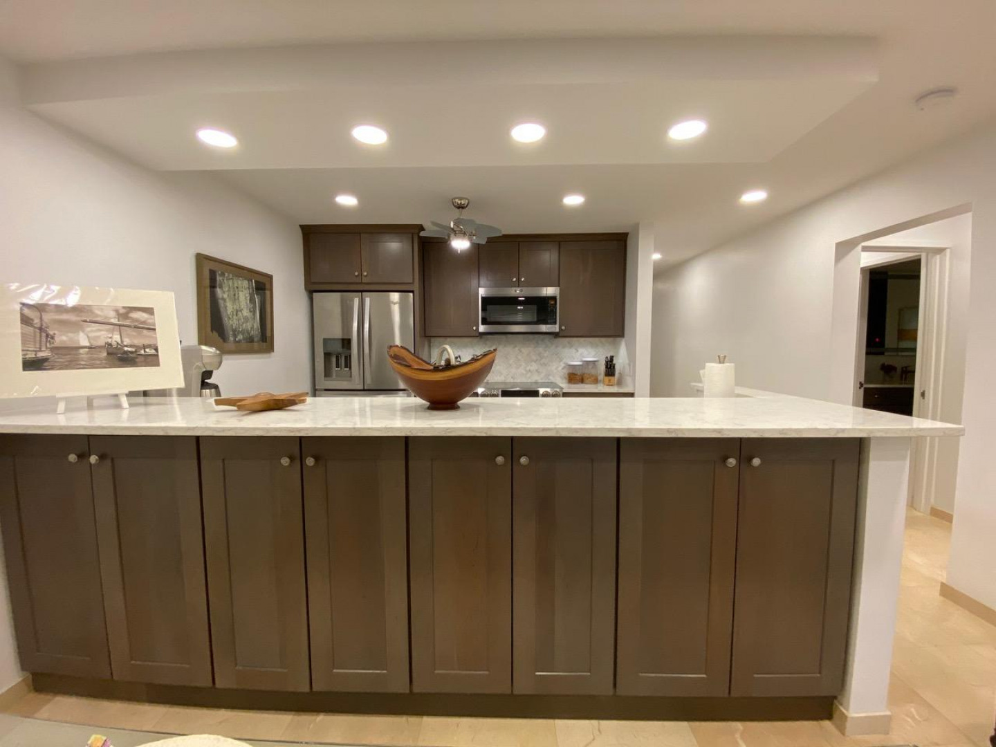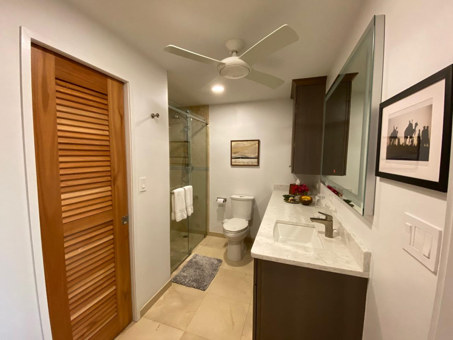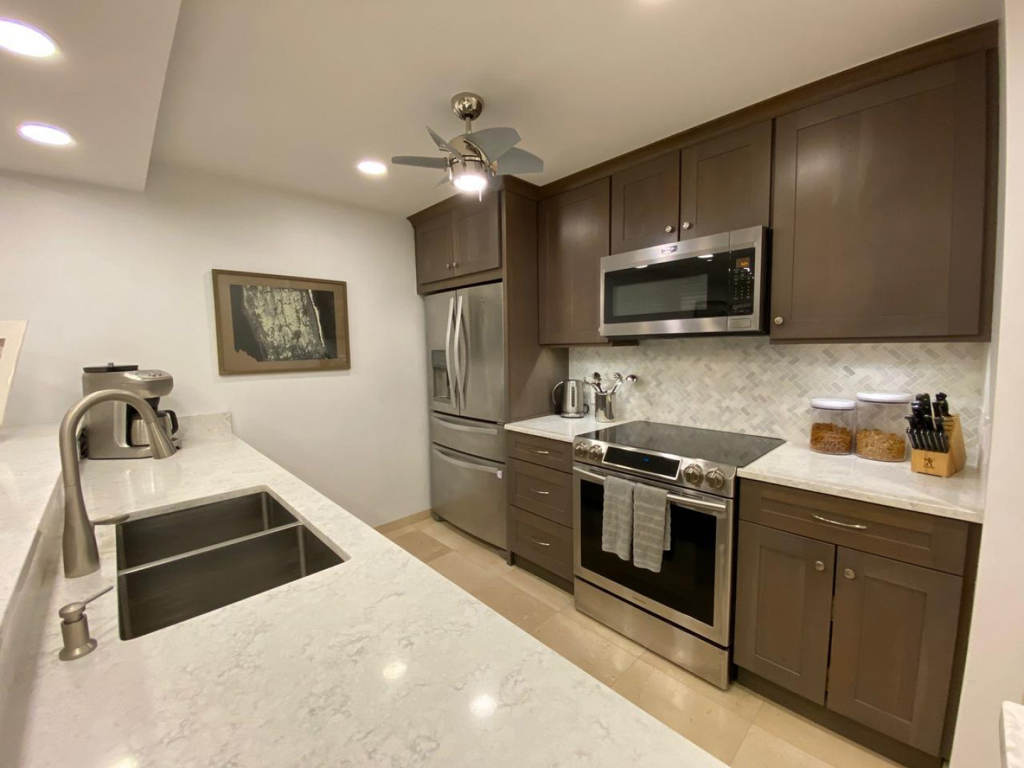 All you need is your bathing suit and personal design flair. Just steps away from beautiful Cowpet Bay beach with it's turquoise water and lounge chairs, this fully renovated oasis, in the East End's premier complex of Cowpet Bay--is move-in ready. Custom remodeled from floor to ceiling, the luxurious amenities include Spanish marble floors and showers; stained cherry wood cabinetry; quartz countertops; electric hurricane shutters; no-frame, by-pass glass shower door; hardwood and frosted glass interior doors; high-end stainless steel bathroom and kitchen appliances and fixtures; recessed LED lighting and light-up bathroom mirrors; picture-sized, insulated sliding glass doors; and USB outlets throughout. With keen attention to detail, the ample storage includes, pantry/laundry room,