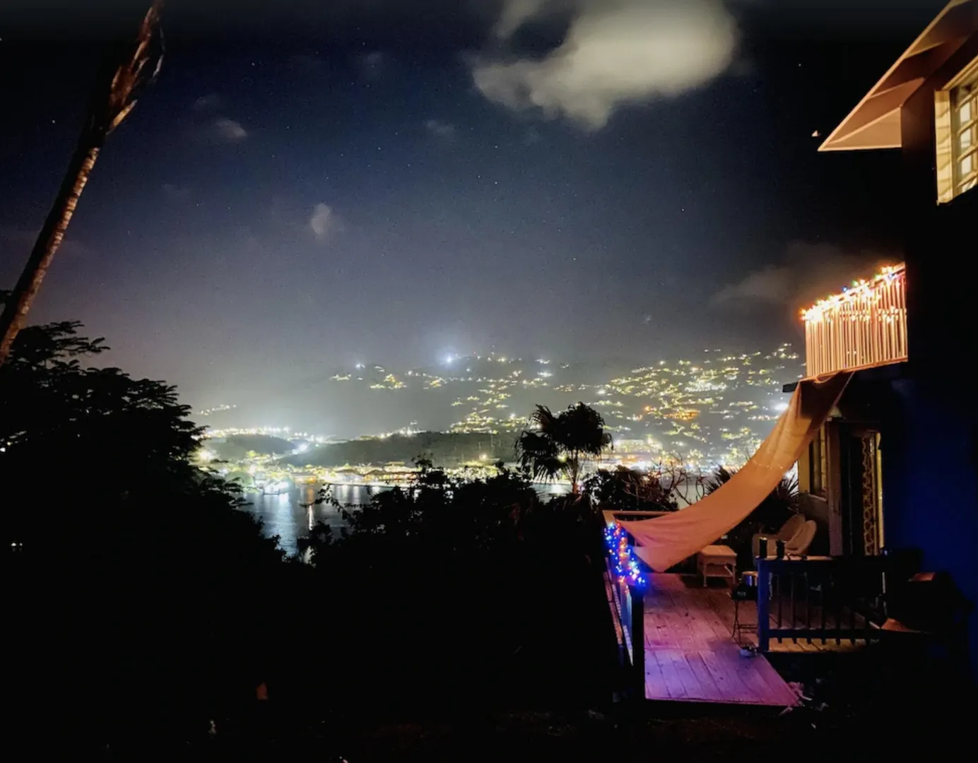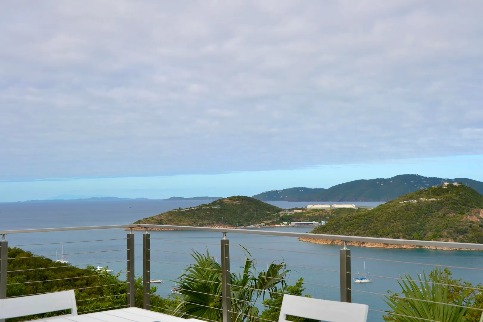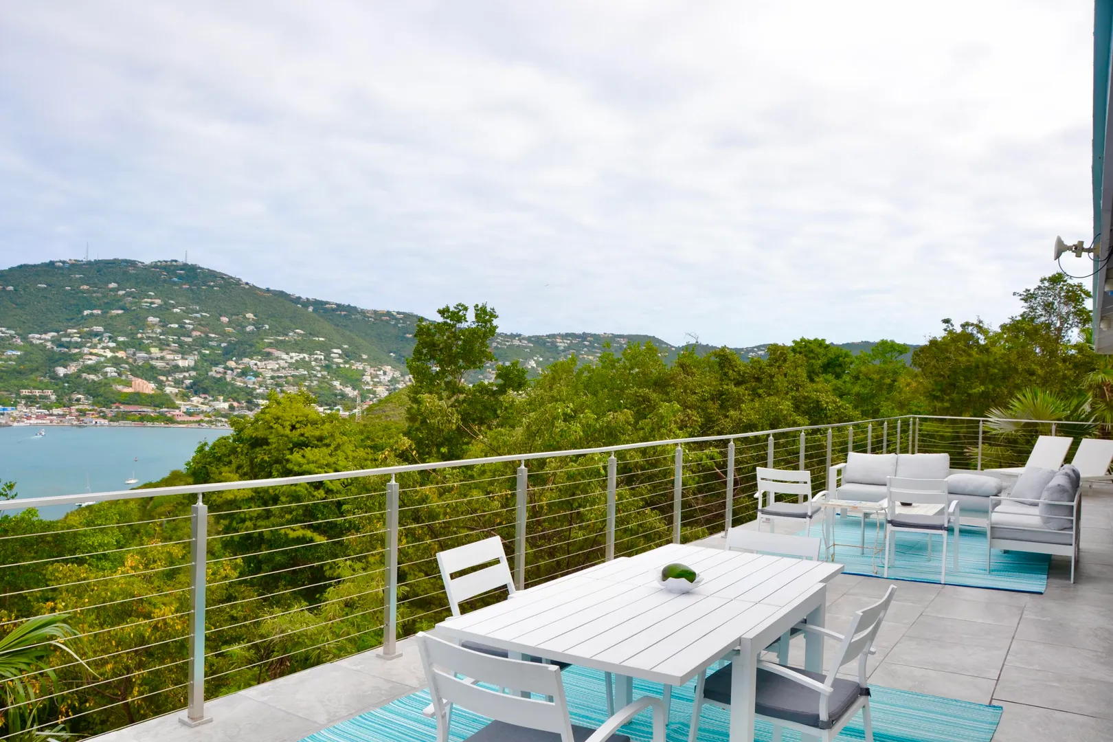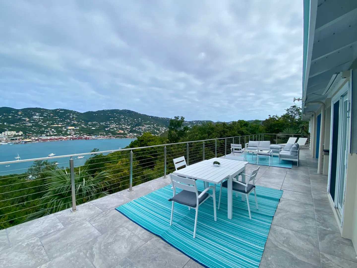 Water Island Dream Home! You will love this property. There are breathtaking views of Crown Bay and St.Thomas in every direction off of the 1000-square-foot balcony. This home boasts an open floor plan with a King bedroom and Queen Bedroom and two full baths upstairs. Along with the large spacious dining room, and full-size eat-in kitchen, there is also a small sleeping alcove. Downstairs you will find a darling studio apartment with an en-suite kitchenette and full bath. This cute apartment comes with a separate entrance and its own porch with outstanding sea views. Upgrades include fresh paint inside and outside, brand-new tile, and stainless steel railings on the upstairs deck. There is a new AC upstairs in the bedroom and new decking for the studio porch.