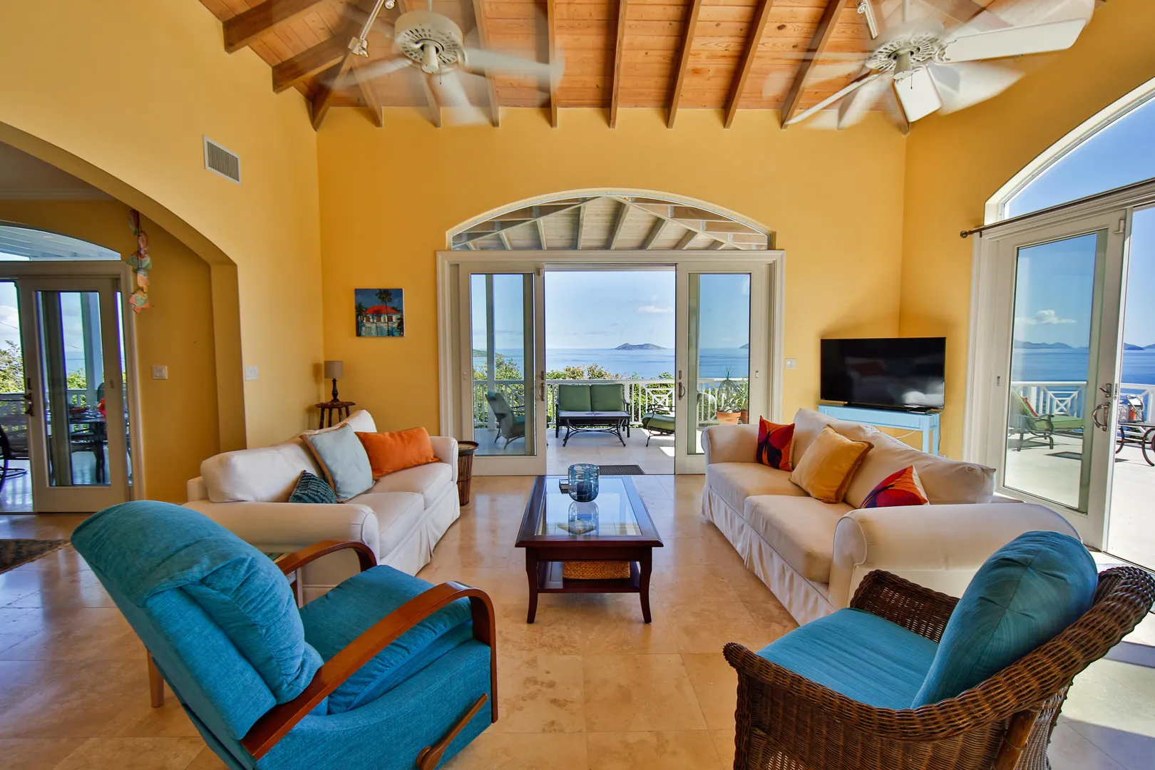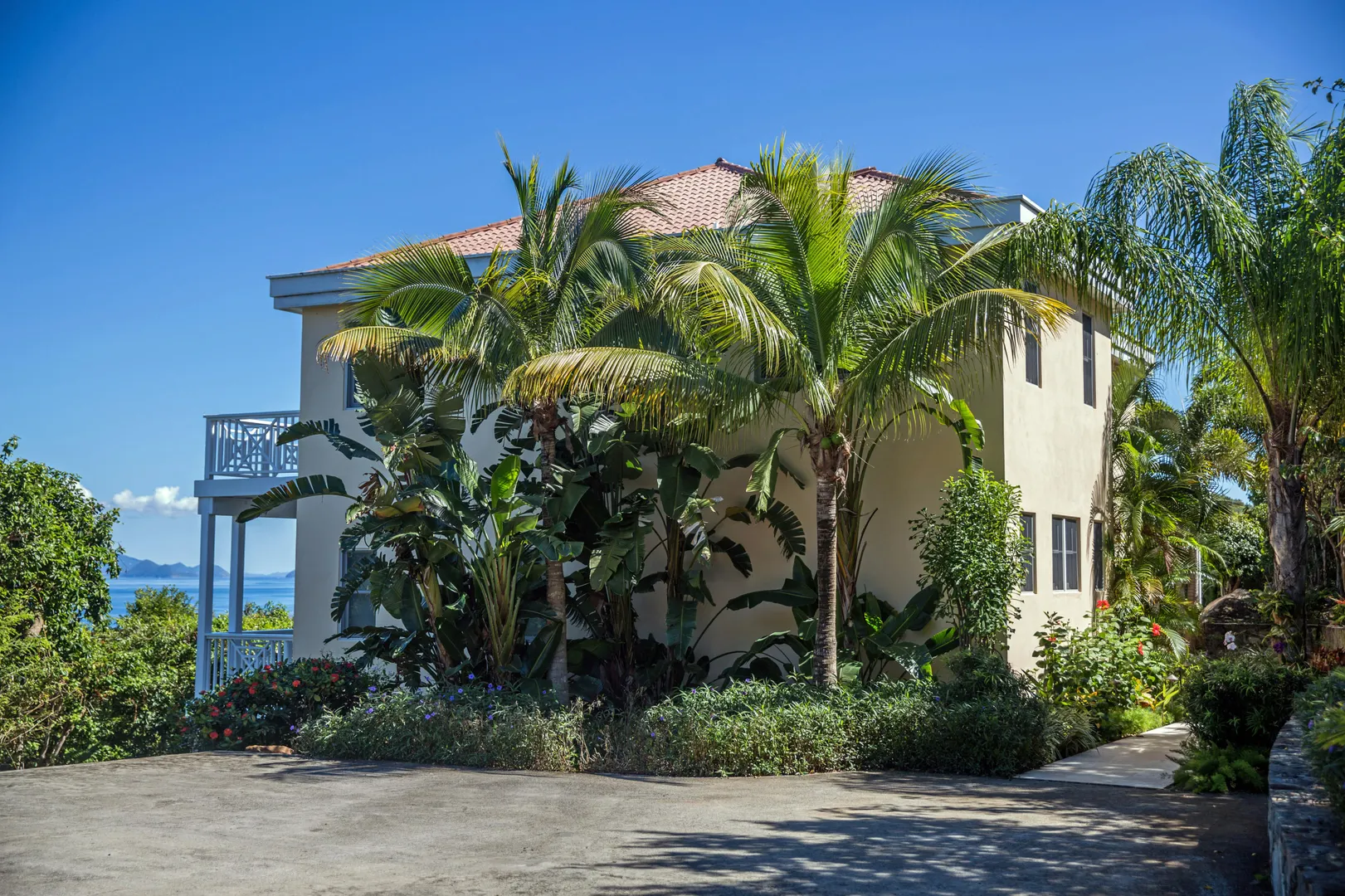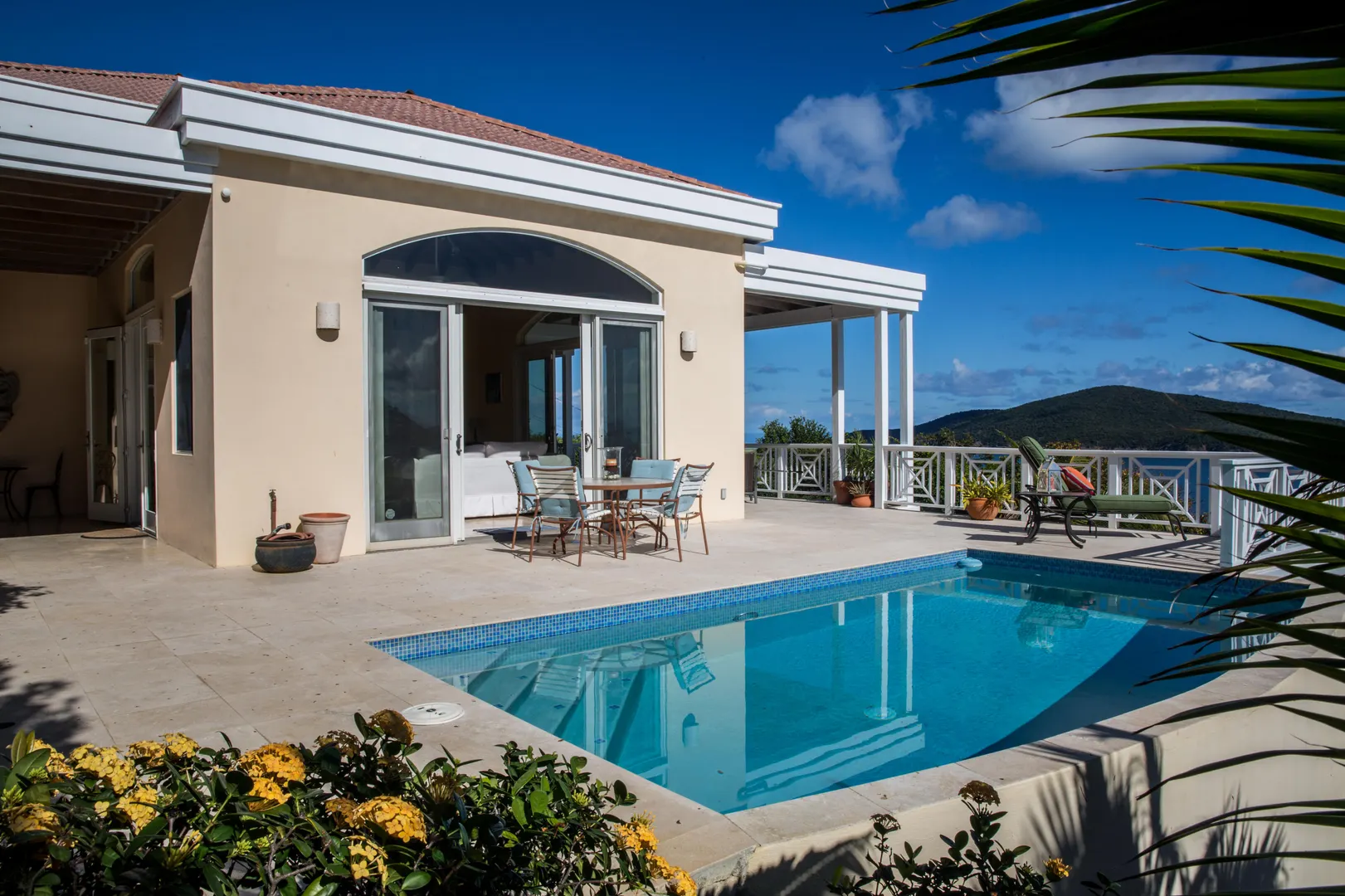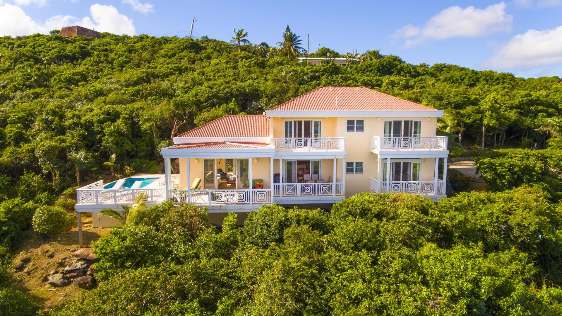 Seize the opportunity to buy this exceptionally valued island villa in premier Estate Peterborg. Motivated sellers have other ventures in mind and have reduced the price again on this custom-designed, airy 4 bedroom, 3.5 bath tropical sanctuary. This stunning island gem survived the two Cat 5 storms with only minimal/mostly cosmetic damage. See Documents for details. With no stairs at all from the privately gated, multi-car parking to the expansive living area and spacious covered gallery and sprawling poolside terrace, it offers a seamless indoor /outdoor floorplan for the best in island living and entertaining with stunning views of a dozen islands. A grand master suite is located on the main floor and 3 spacious bedrooms, 2 with ensuite baths and private decks are located upstairs.The villa has served alternately as a personal family retreat and has been operated successfully as a luxury vacation rental villa. Currently the home is generating great rental income housing relief work crews. See the Virtual tour of the villa including drone aerials under the Photo tab on the listing.