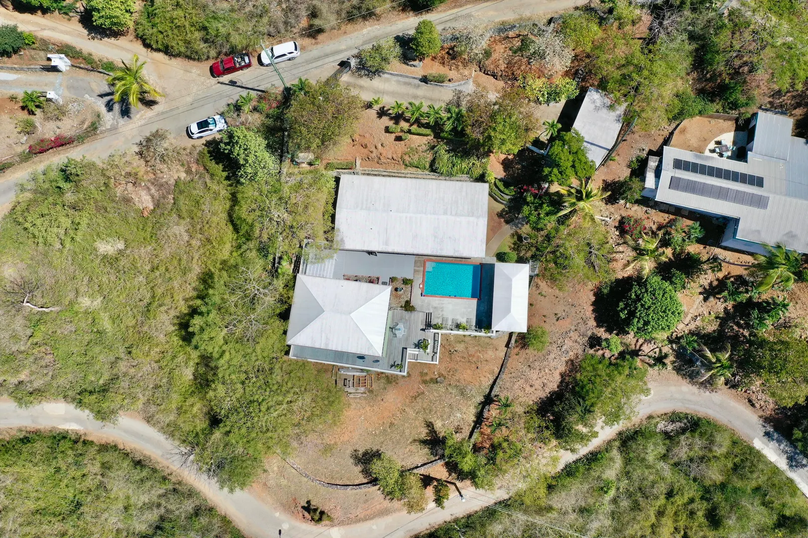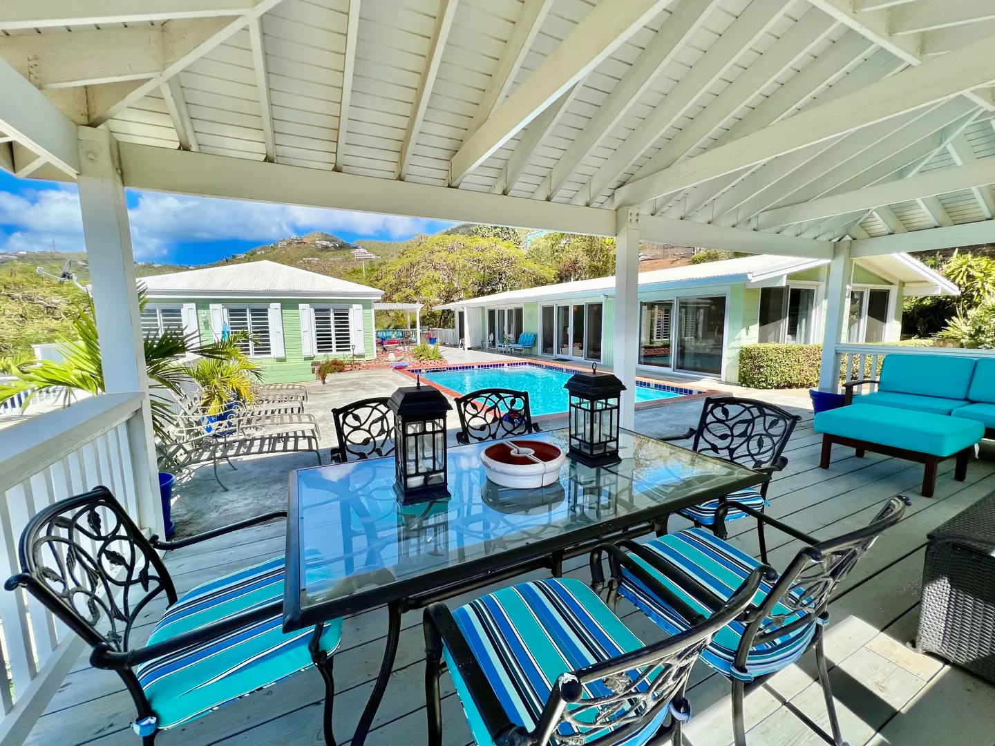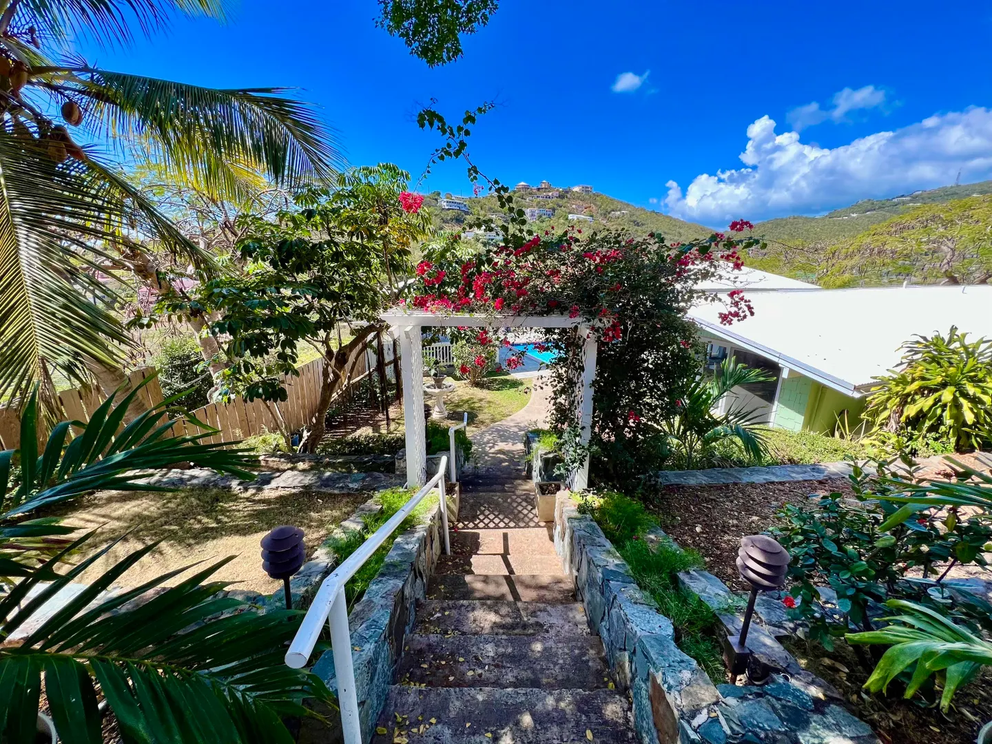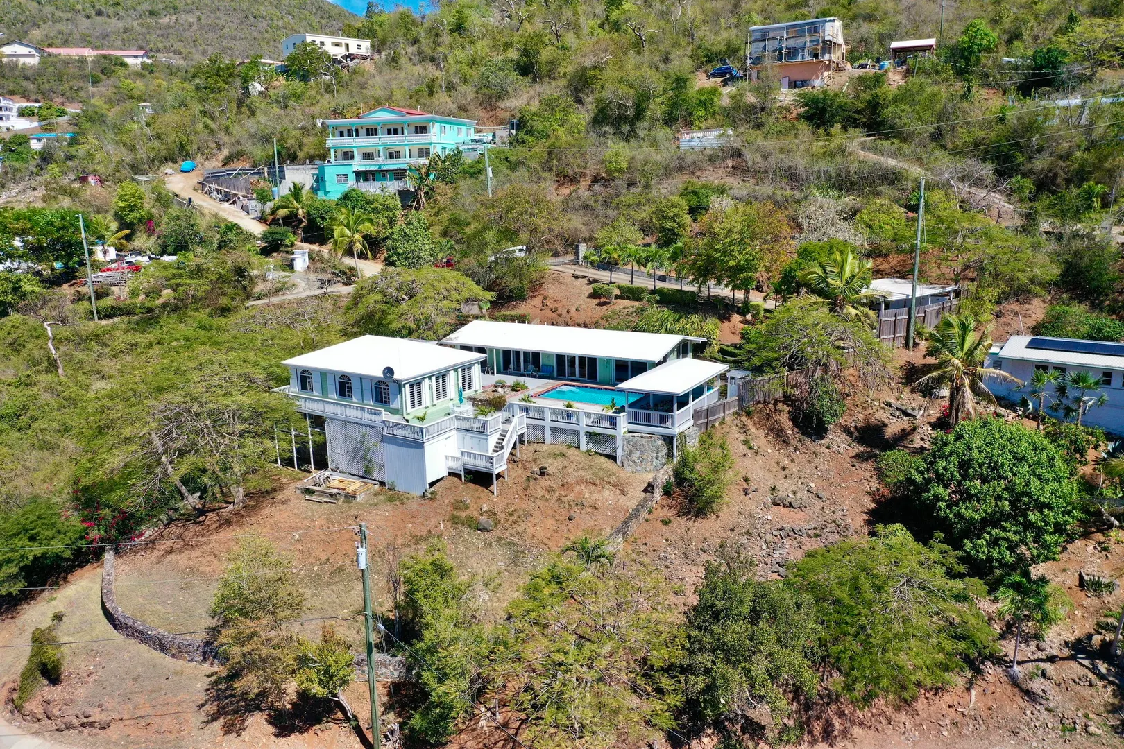 Beautiful, well maintained, gated, versatile property within walking distance to Bolongo Bay Resort. There are two houses, one on each side of a large pool, a main residence which was remodeled in 2015, open concept, new kitchen, fully air conditioned, travertine tile floors, impact glass, consisting of 1 bed 1 bath. A separate cottage on the other side of the pool with 3 beds, 2 baths and central AC. Tons of patio areas for entertaining. A large pool pavilion and outdoor shower, carport, generator and lovely stonework all around the grounds. The property works as a private residence with in-law suite, income producing rentals or any combo with fabulous home office space. This is a must see!