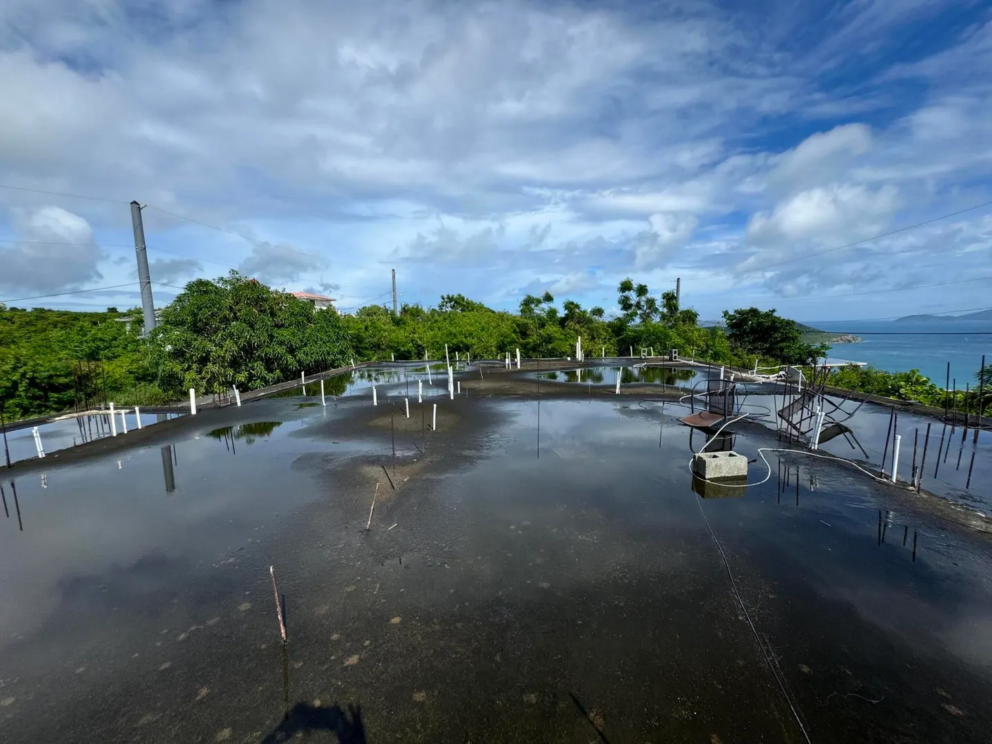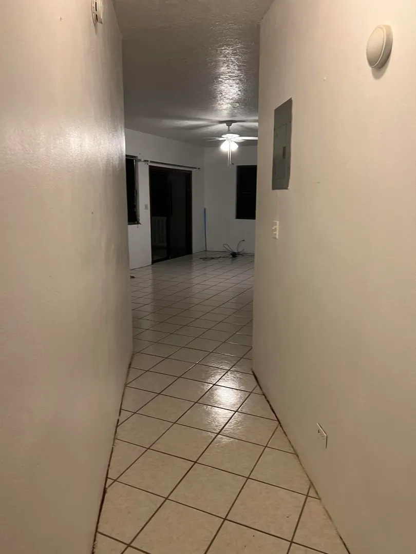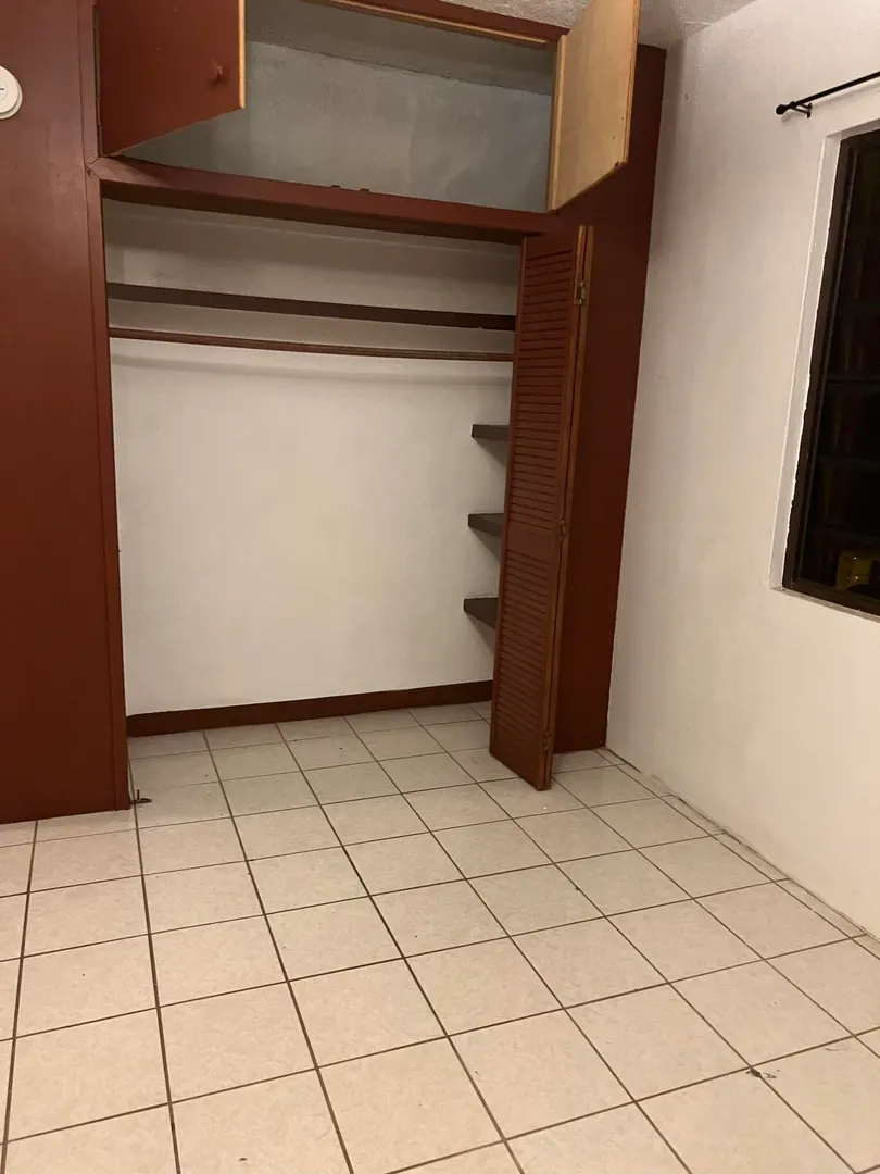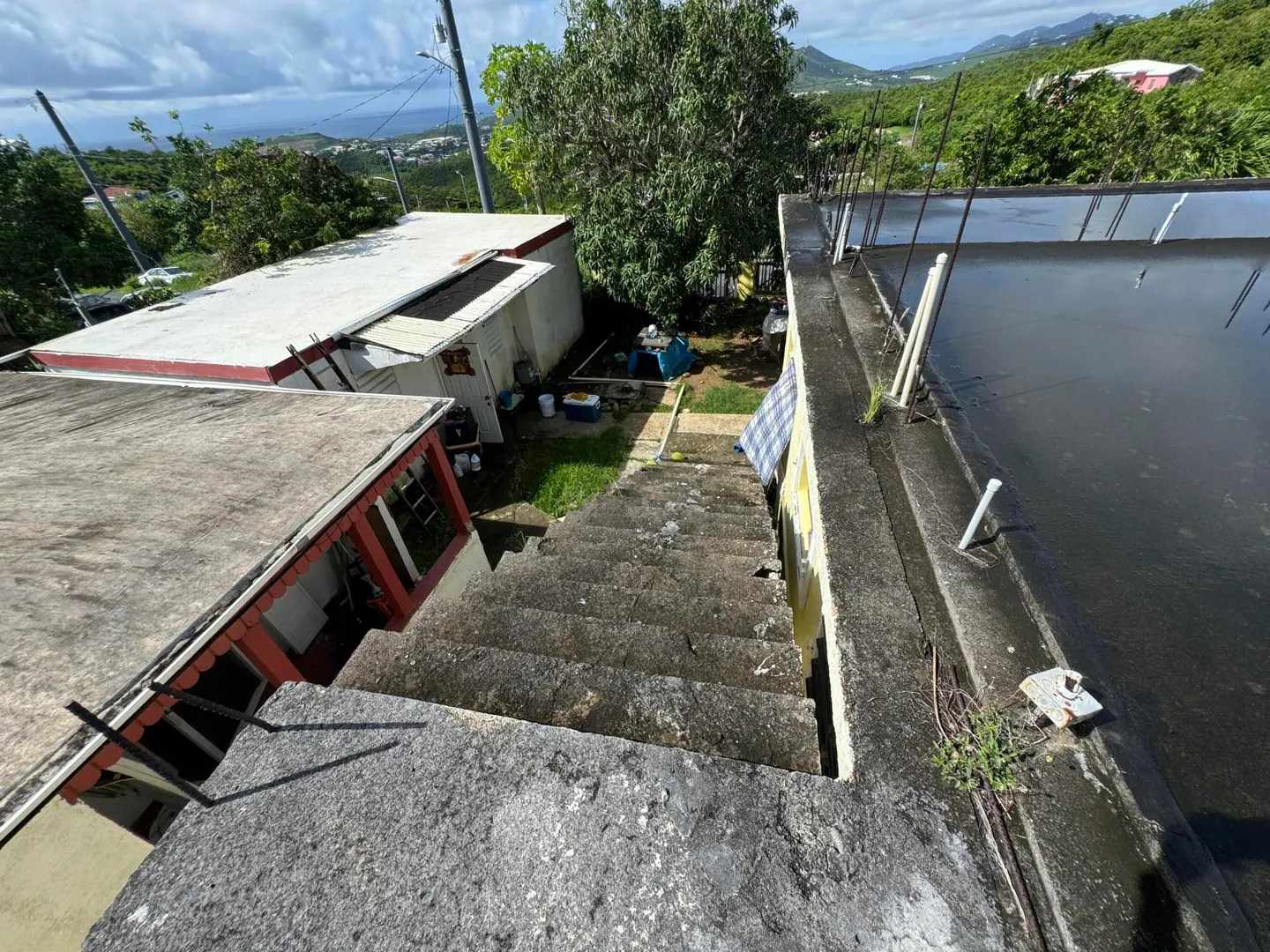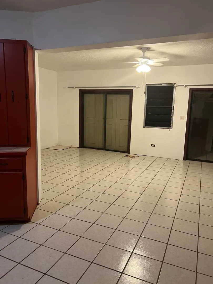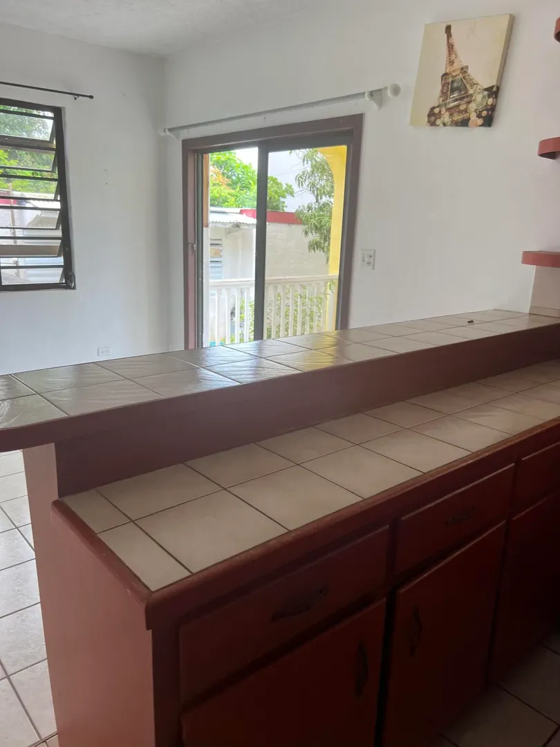 Here is an opportunity to own a three bedroom and two bathroom concrete home in a great neighborhood surrounded by beautiful views of St. John and the BVI and a flat yard. The home has been separated by a deadbolt door into two separate units, a two bedroom and one bath apartment and a studio apartment. In addition to those two units in the main house, there are two wooden structures on the property that can be repaired or torn down. There is a small one bedroom with a tenant and a vacant three bedroom. Both units are in need of repairs. There is also an unfinished upper floor. CASH OFFERS ONLY.
