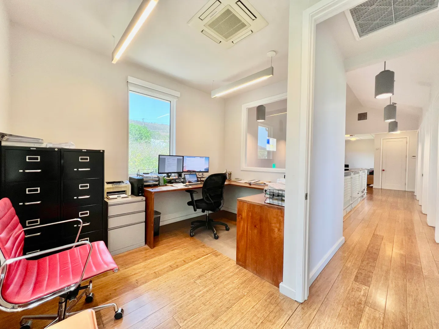 Professional building with an abundance of parking, located on the East End. This office building offers a large open working area and 4 offices. A backup generator, city water, a sewage treatment plant, and a grid-tied to PV 10KW solar panel system are also building amenities. This property has been granted a zoning use variance for Parcels Nos. 15 and 15B Remainder EstateSmith Bay, Nos. 1, 2 and 3 East End Quarter, St. Thomas, to allow for professional offices.