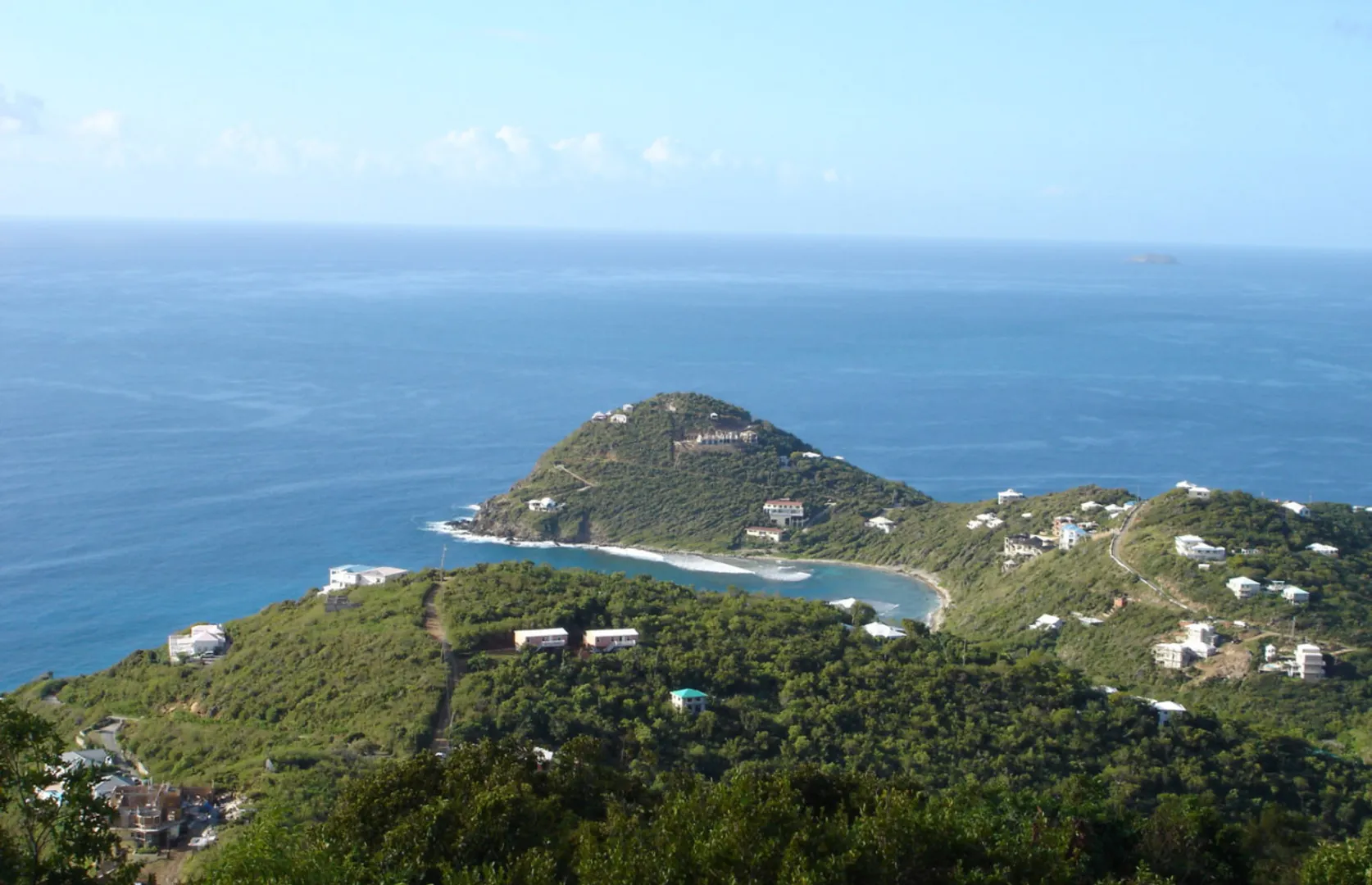 Terrific views high over Rendezvous Bay and south to St. Croix and west to St. Thomas. This large lot has big trees, a 500' elevation, gorgeous sunsets,cool breezes and easy access.