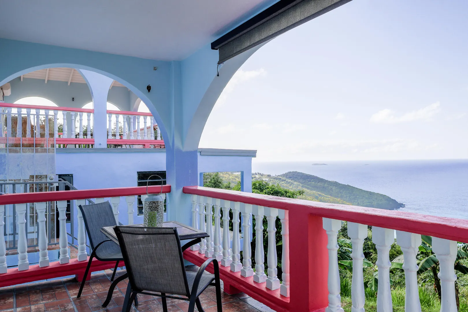 Perched above Santa Maria beach on the cool and tropical west end of St. Thomas, sits Mango Cove Villa. The perfect oasis to sit back and relax in total privacy. The views and colors of the ocean and lush green hillsides will mesmerize by day and the colors of the sunset will impress in the evenings. Gated at the end of a cul-de-sac, with plenty of flat parking and easy access to the home, this secluded home features a flexible floor plan that can include 5 bedrooms and 3 bathrooms under one roof. Alternatively the villa can be divided into a 3 bedroom 2 bathroom home with a 2 bedroom 1 bathroom rental.The current owners are generating on average $4k/month in short term rental income. Also below the home is an additional space that could be an "in-law suite," office, gym or workshop space, awaiting your finishing touches.