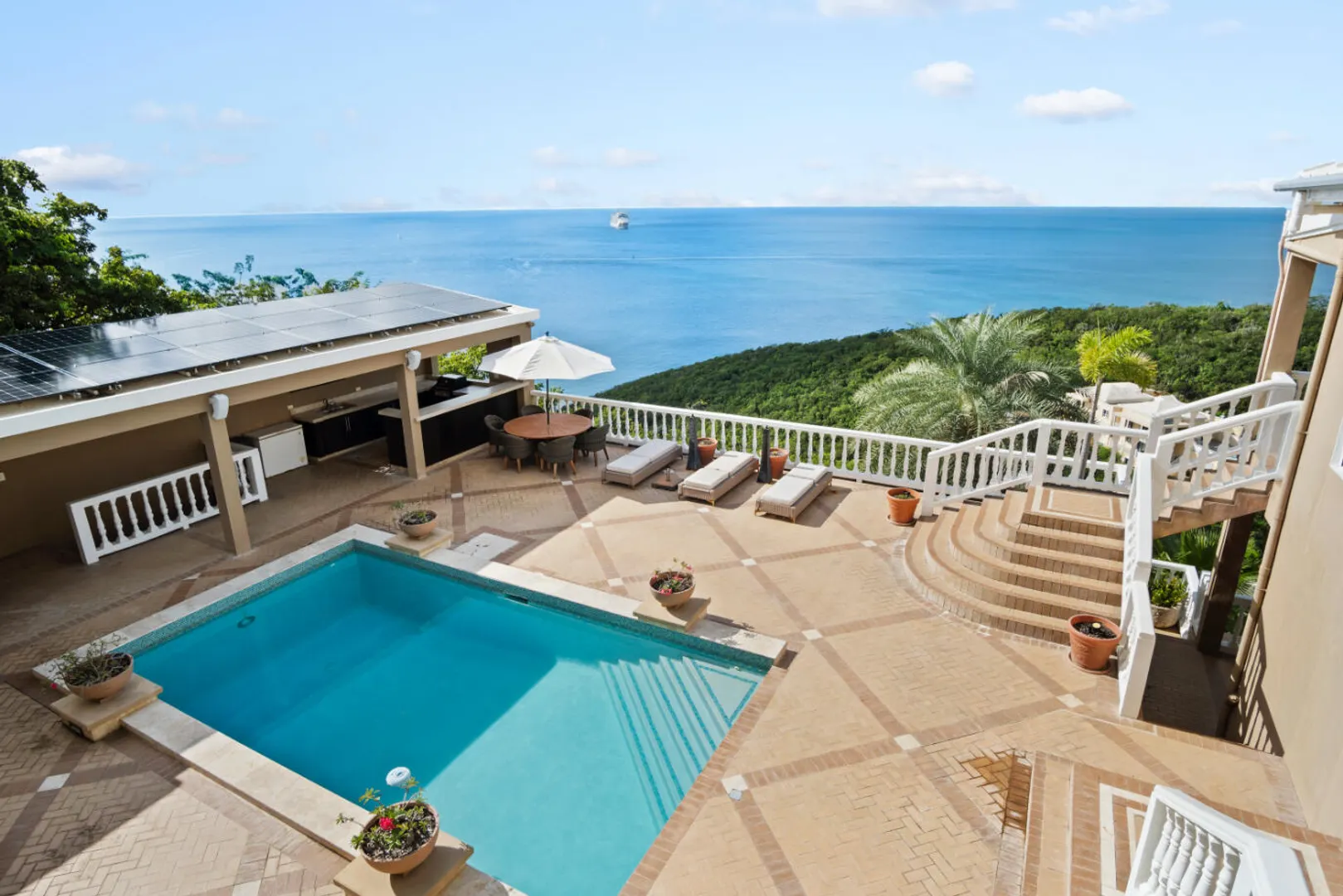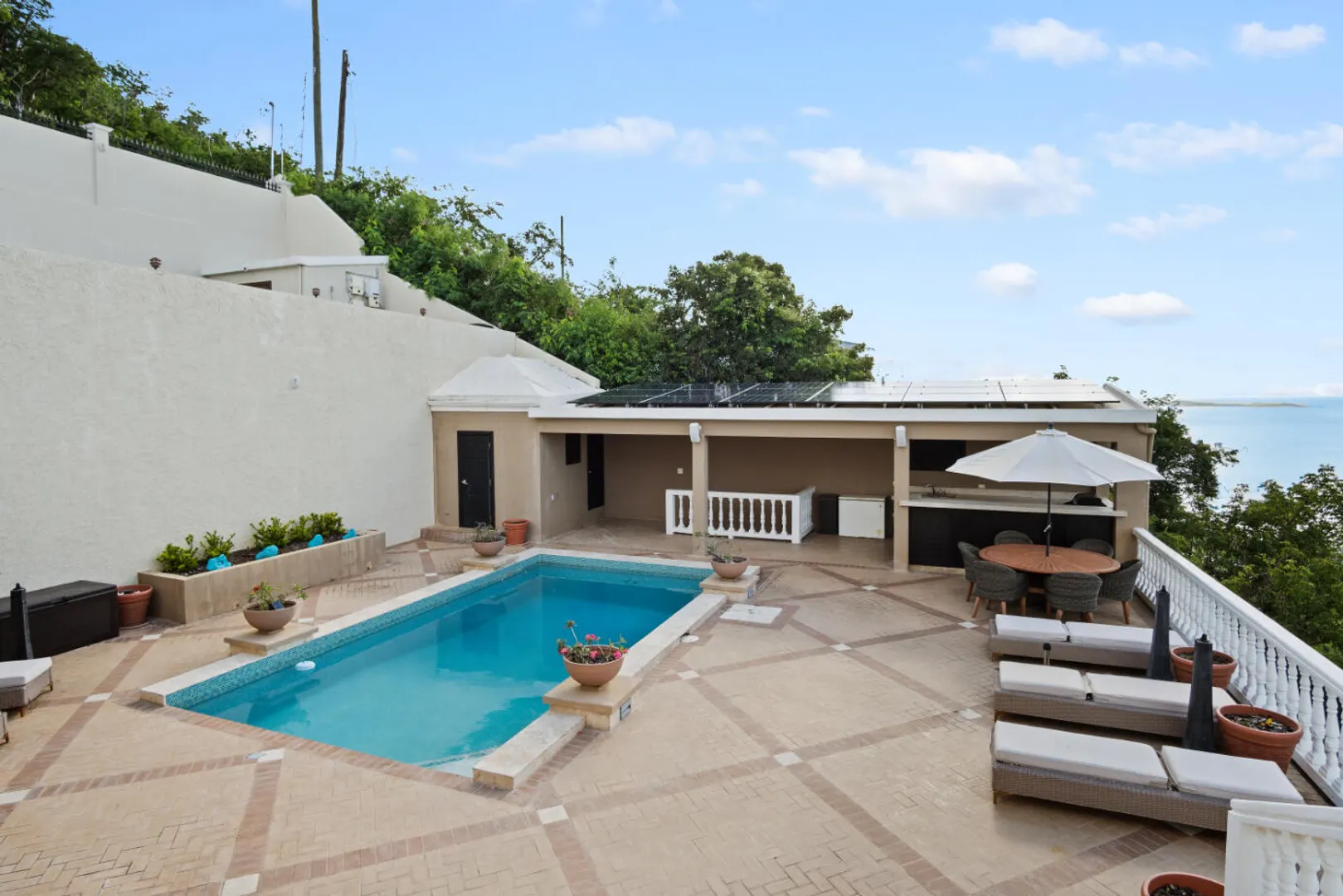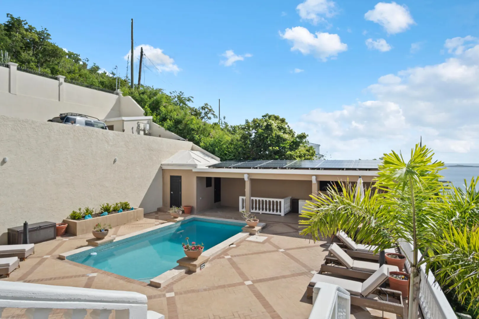 Beautiful three bedroom 3.5 bathroom main house with two rental units!!! Amazing location and views. 76 solar panels with 4 Tesla batteries, and a generator back up. Solid concrete with so many extras its hard to list them all. Pool is perfect for entertaining with outside . One bedroom apartment downstairs is elegant and there is another efficiency for short term rental or in laws if desired. Two beaches very close by along with restaurants!! Central location is convenient for downtown, Havensite, Redhook and TuTu. Plenty of parking. Comes furnished and ready to move in!! Caribbean living at its finest!!!