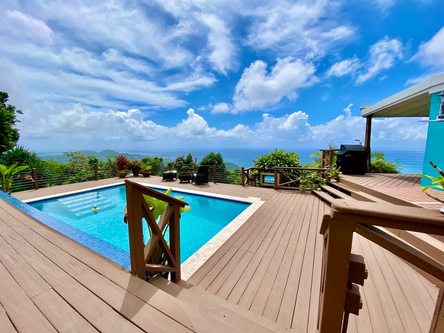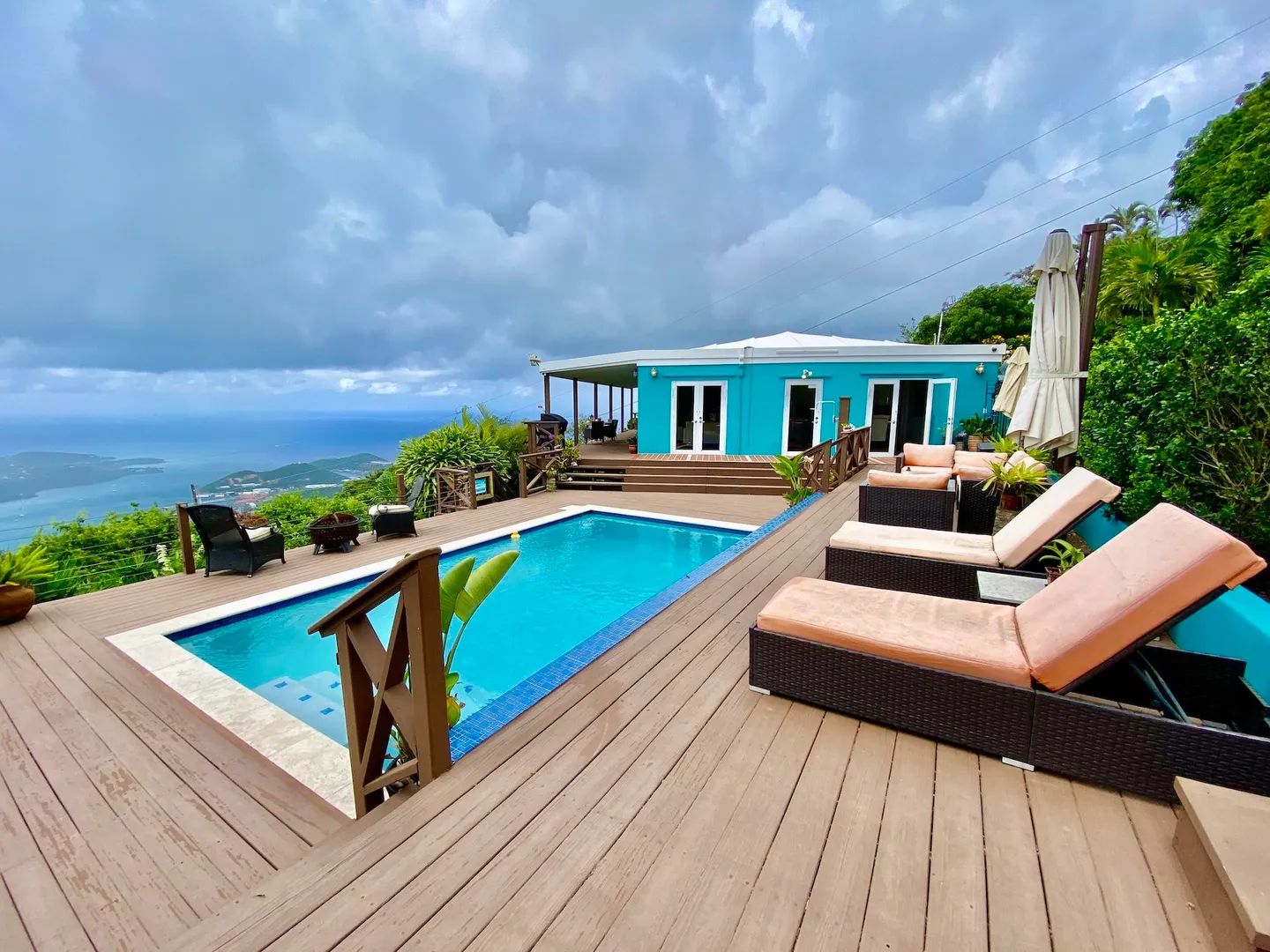 Remodeled 3 bed/2 bath house with gorgeous studio apartment that was used as a short term rental. Pool has a large deck for entertaining and an outdoor shower. The views span the harbor, Hassle and Water Island over to Culebra and PR. There is a brand new generator and great parking.