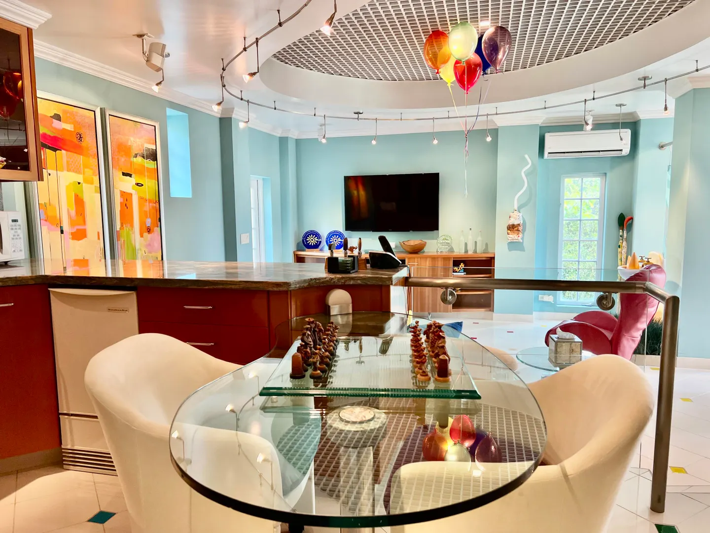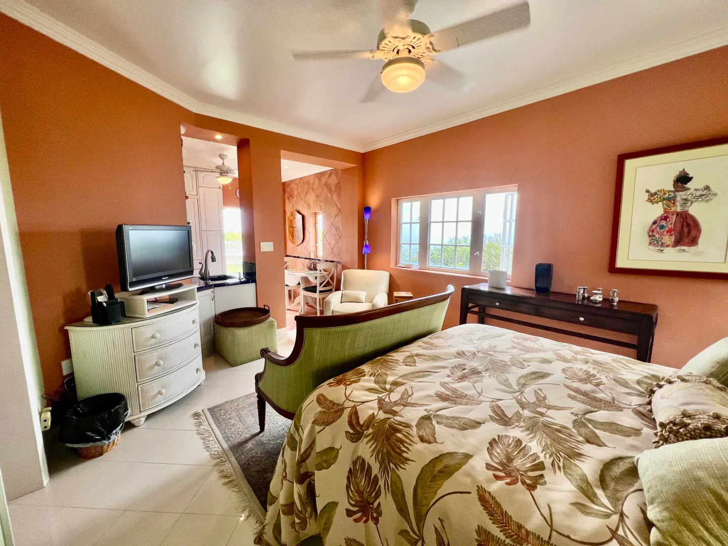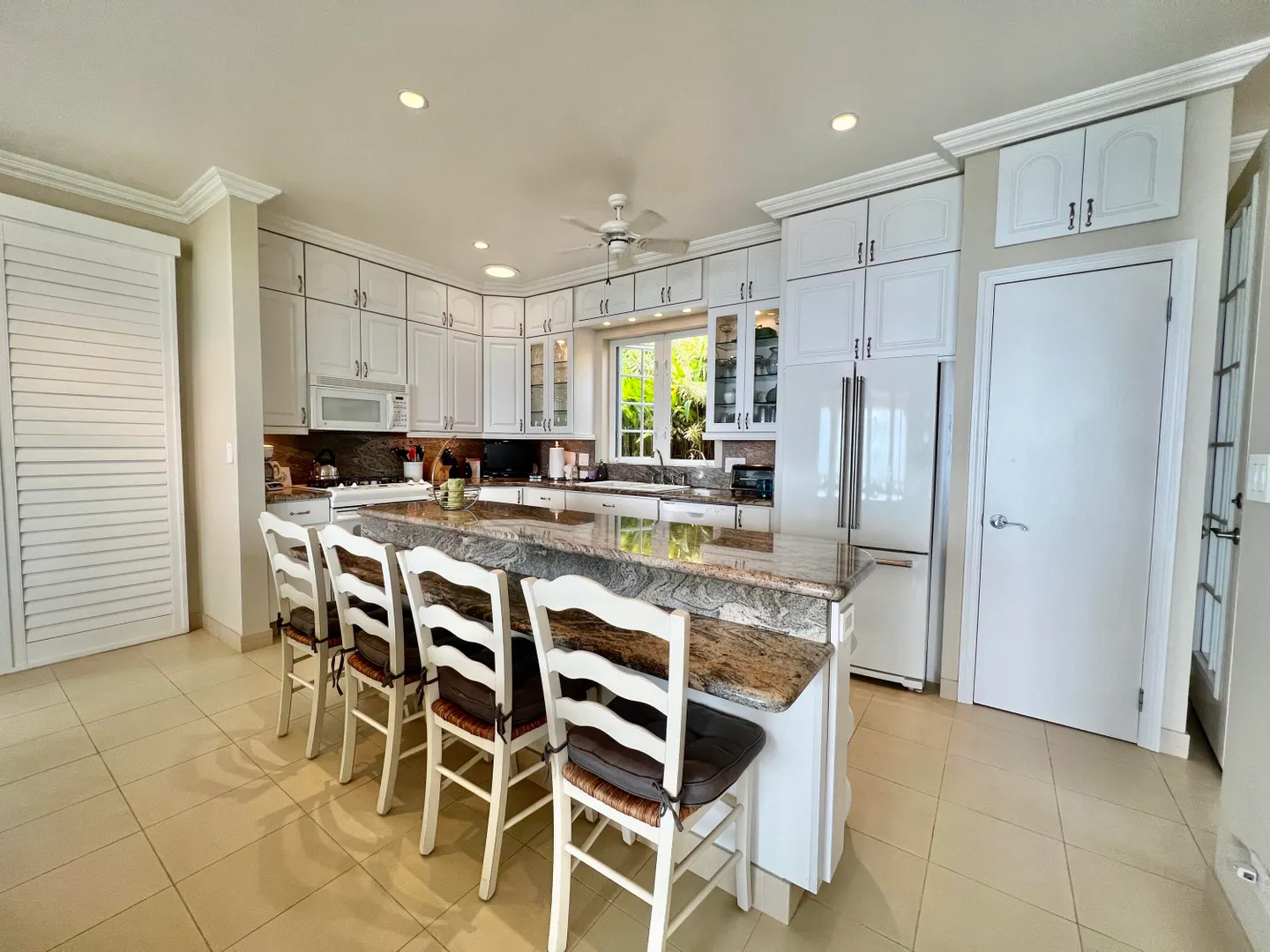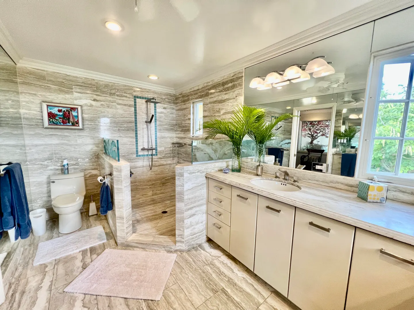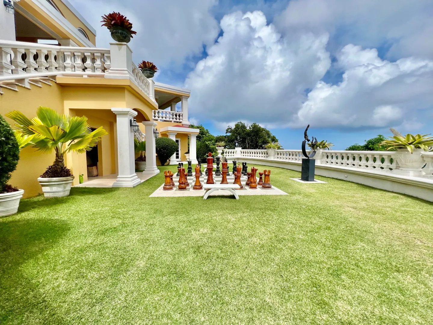 Called ''Trevista'' because of its incomparable (really!) 300 degree views , you can gaze from the master bedroom's expansive veranda out to Magens Bay and the islets off St. Thomas' northwest coast, all the way to the BVI, and even to the twinkling lights of Charlotte Amalie. Built on almost 2 acres in a cool, breezy mountaintop location, the 5BR main house features careful construction and unique finishes including hardwood flooring, custom cabinetry and imported tiles. The ''cottage'' is a full separate 2 BR residence with its own charm, views and parking. A full two car garage, wine cellar, flat grass yards, (with life size chess board!) and beautiful, immaculately maintained, mature gardens are just a few of the extraordinary features of this unique property. Furniture removed.