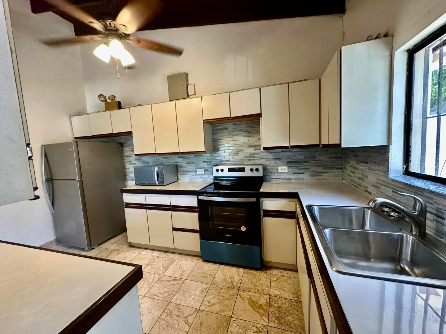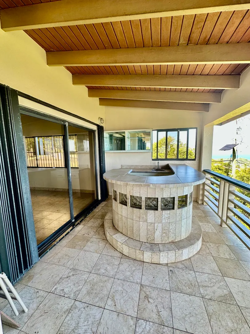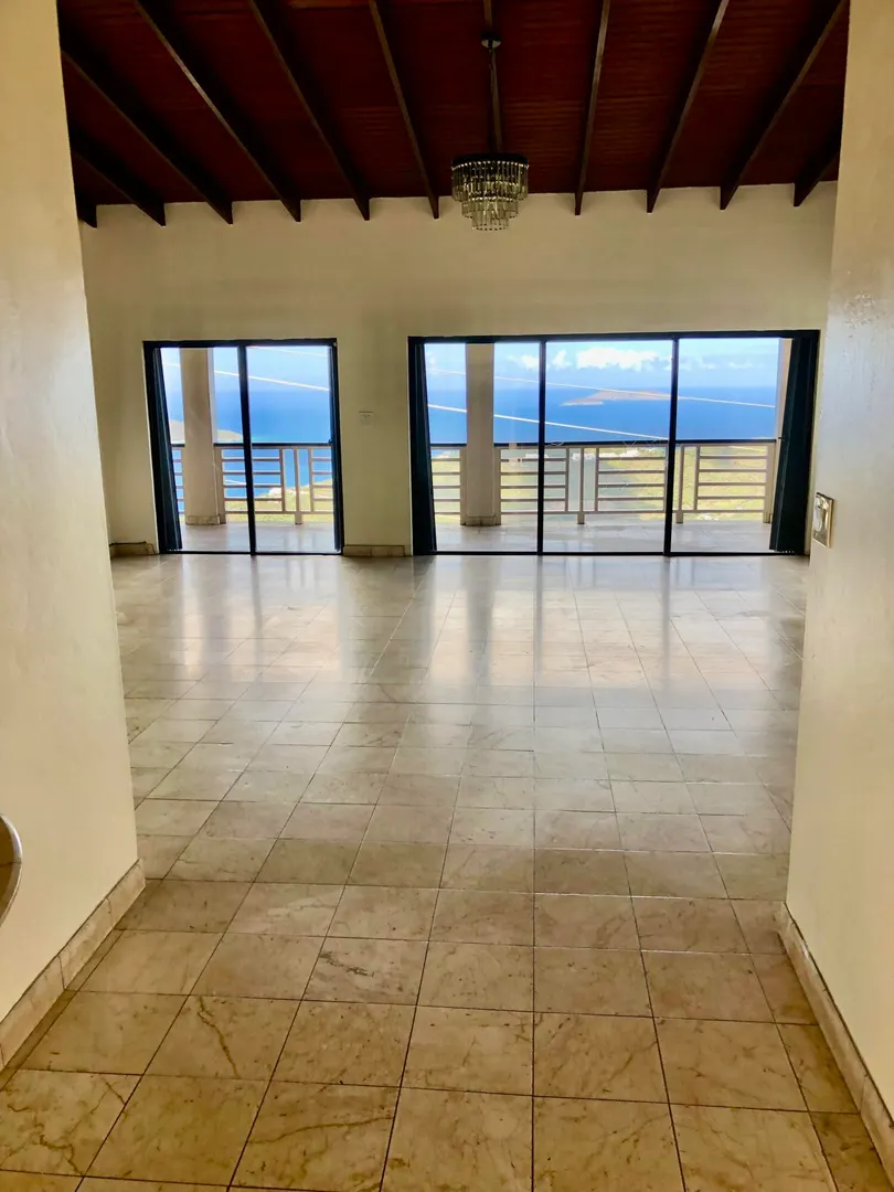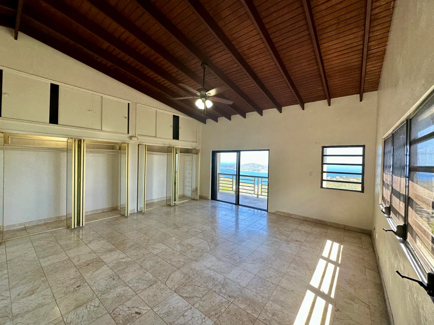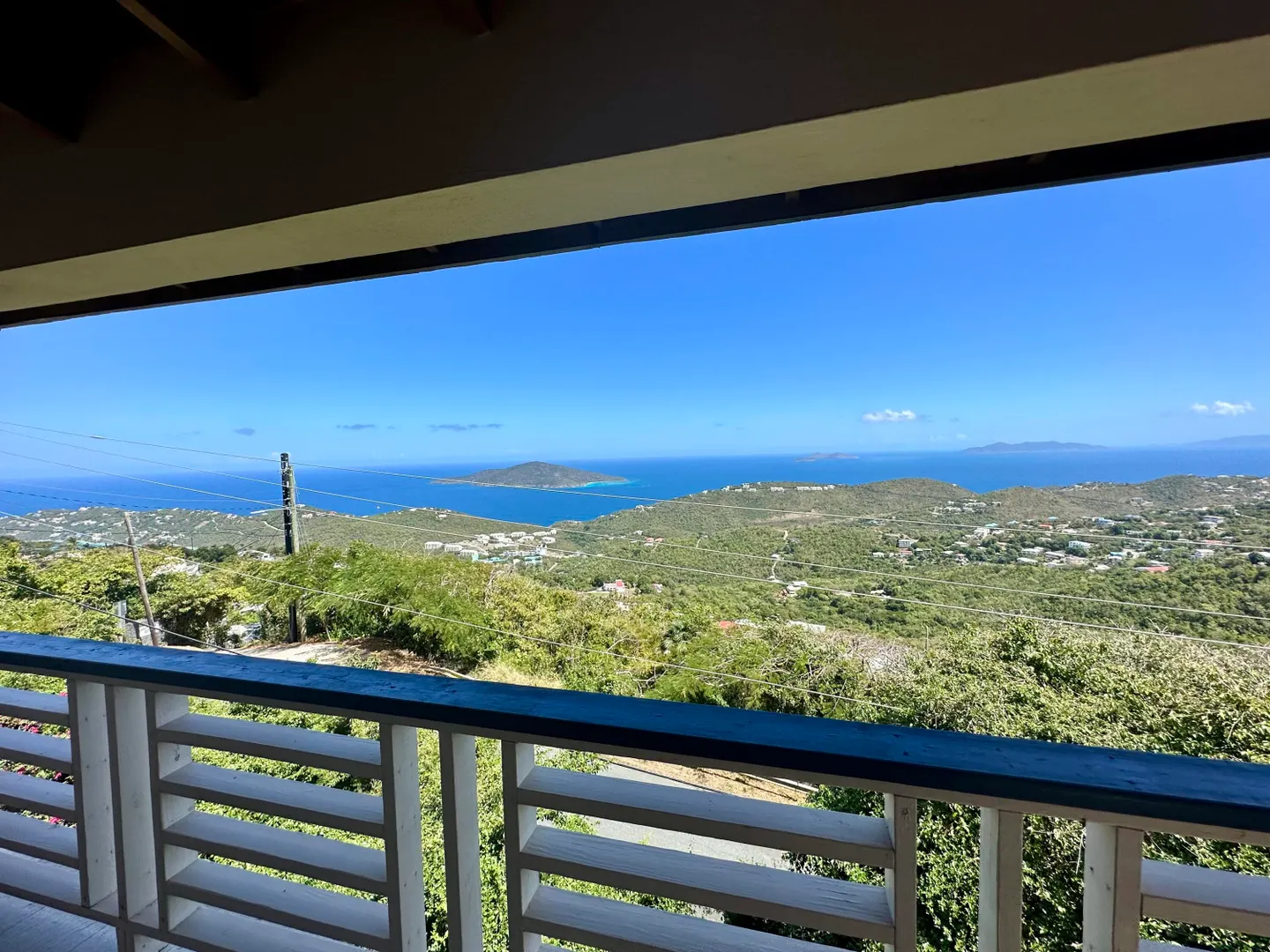 Pet friendly, 3 Bedroom / 2.5 Bathroom top floor apartment of house with expansive views of Hans Lollik Island. Large living room, nice size kitchen and dining room, office, laundry room and large patio with bar. Off street parking.