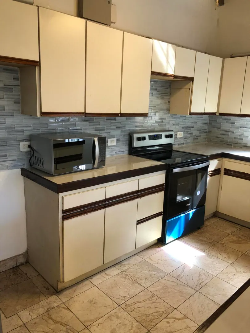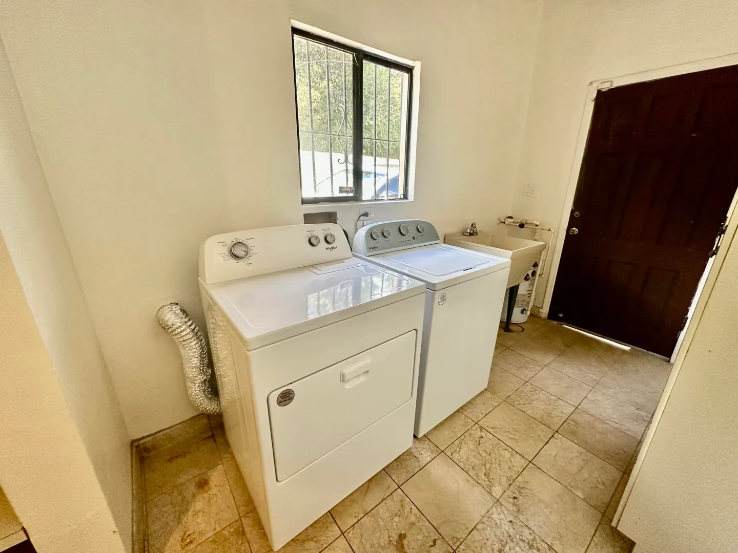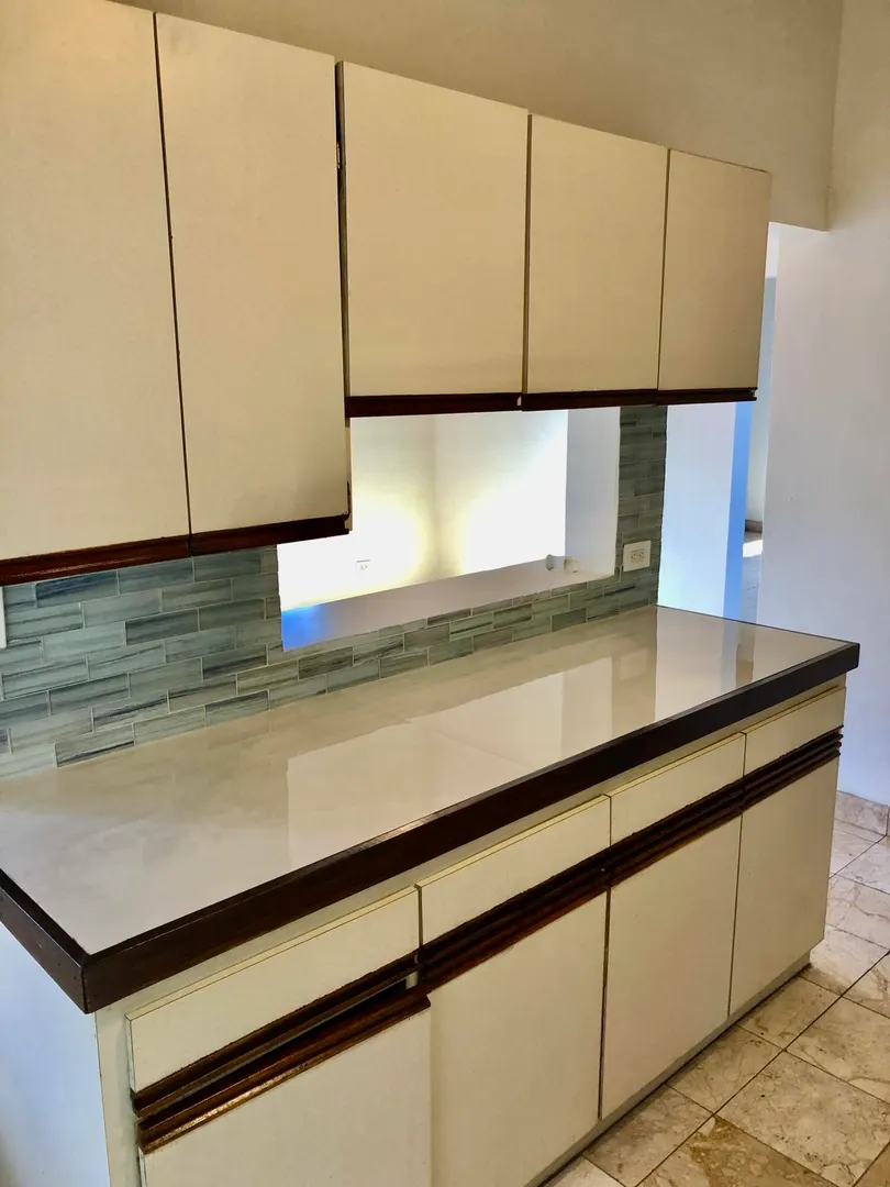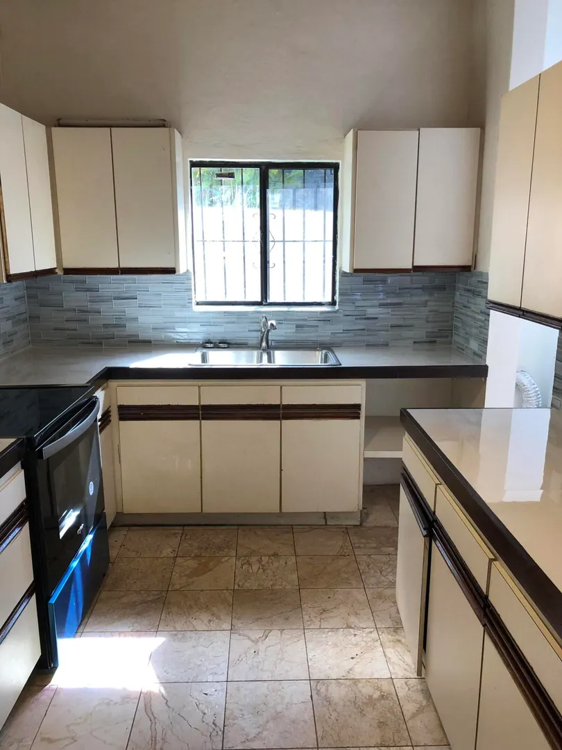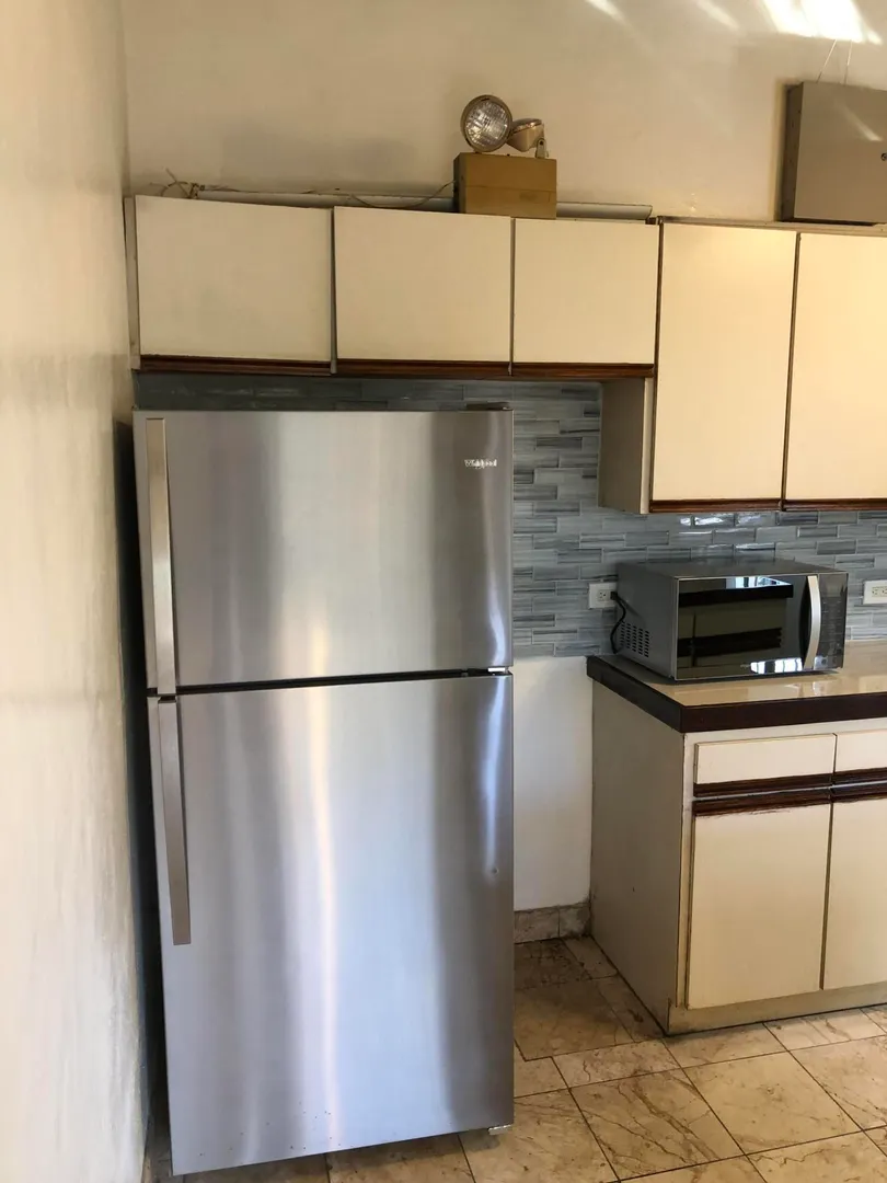 Pet friendly, 3 Bedroom / 2.5 Bathroom top floor apartment of house with expansive views of Hans Lollik Island. Large living room, nice size kitchen and dining room, office, laundry room and large patio with bar. Off street parking.