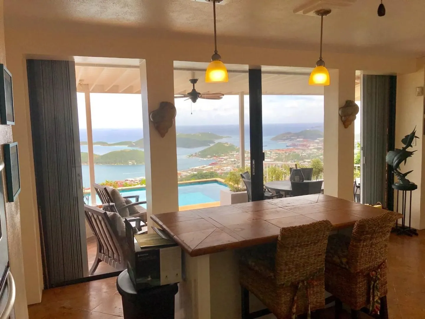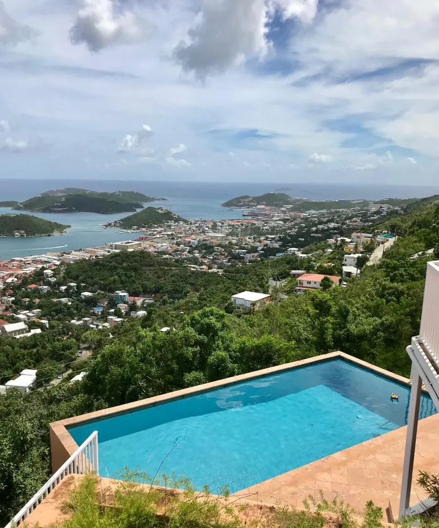 Enjoy lounging bythe pool & enjoyingspectacular (cosmopolitan)town, harbor,& sunset viewsfrom this 3 bedroomvilla (end of theroad) within one ofSt. Thomas' oldest,most private gatedcommunities. Currently operated as a short term villa rental with existing clientele, book of business.