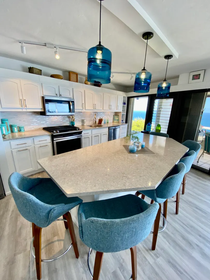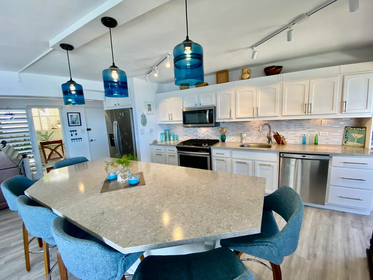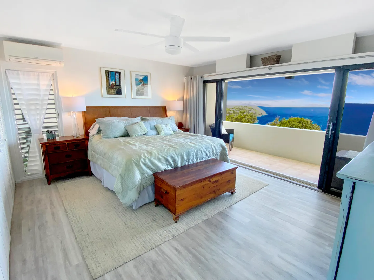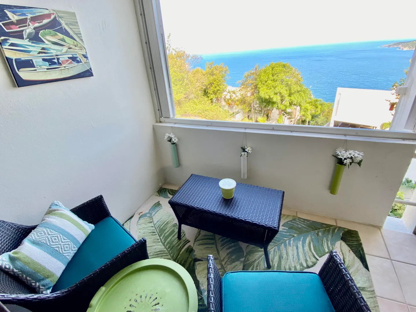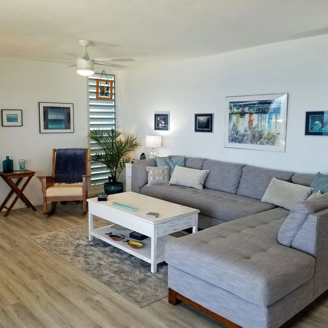 This two bedroom, two bath condominium has all the fine points for a perfect island retreat. With an encompassing view including all of the cays from St. Thomas to Tortola and west to Magens Bay, it offers spectacular sunrise and sunset vistas. Cooled by the prevailing tradewinds use of AC is truly optional. Fully remodeled in 2021 with calming coastal colors, it hits just the right aesthetic for an island home or part time residence. Walk in level and it's located right across from the Sanderling Pool. Mahogany Run is centrally located on St Thomas north shore, just a 5 minute drive to the renowned Magens Bay, the go to spot for paddling, swimming and runners or just enjoying the incredible beauty.