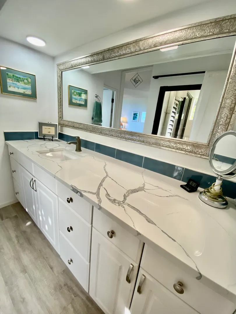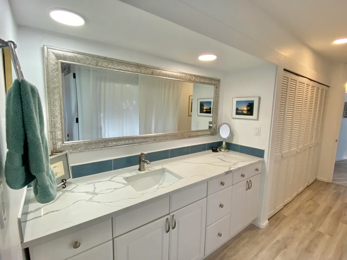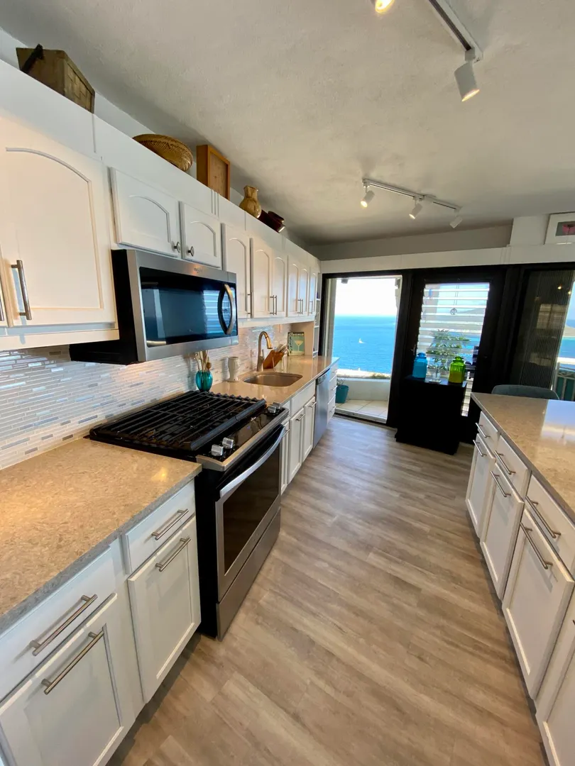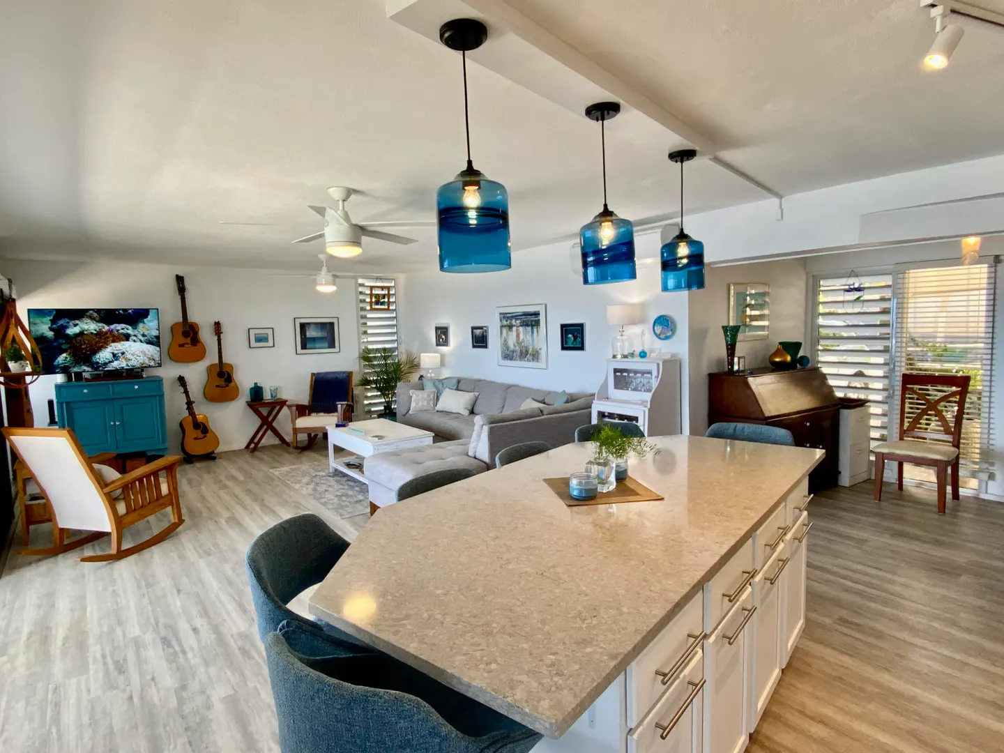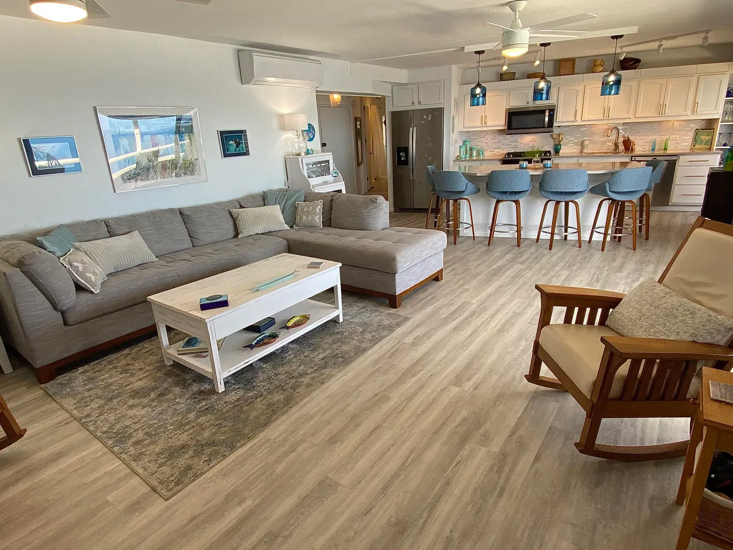 This two bedroom, two bath condominium has all the fine points for a perfect island retreat. With an encompassing view including all of the cays from St. Thomas to Tortola and west to Magens Bay, it offers spectacular sunrise and sunset vistas. Cooled by the prevailing tradewinds use of AC is truly optional. Fully remodeled in 2021 with calming coastal colors, it hits just the right aesthetic for an island home or part time residence. Walk in level and it's located right across from the Sanderling Pool. Mahogany Run is centrally located on St Thomas north shore, just a 5 minute drive to the renowned Magens Bay, the go to spot for paddling, swimming and runners or just enjoying the incredible beauty.