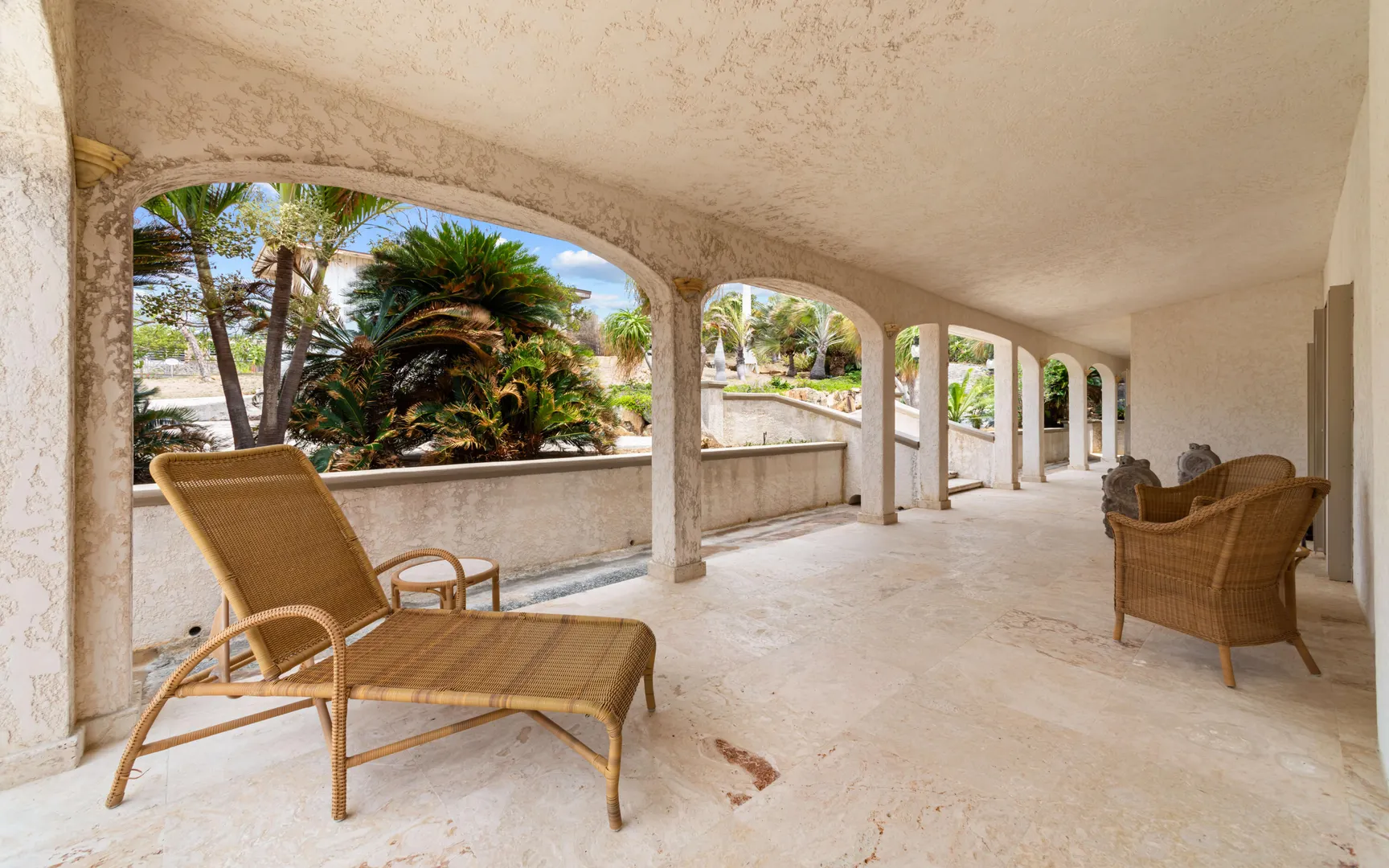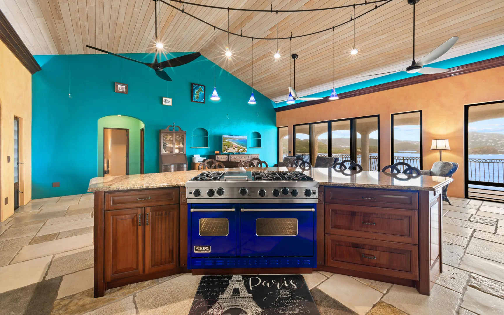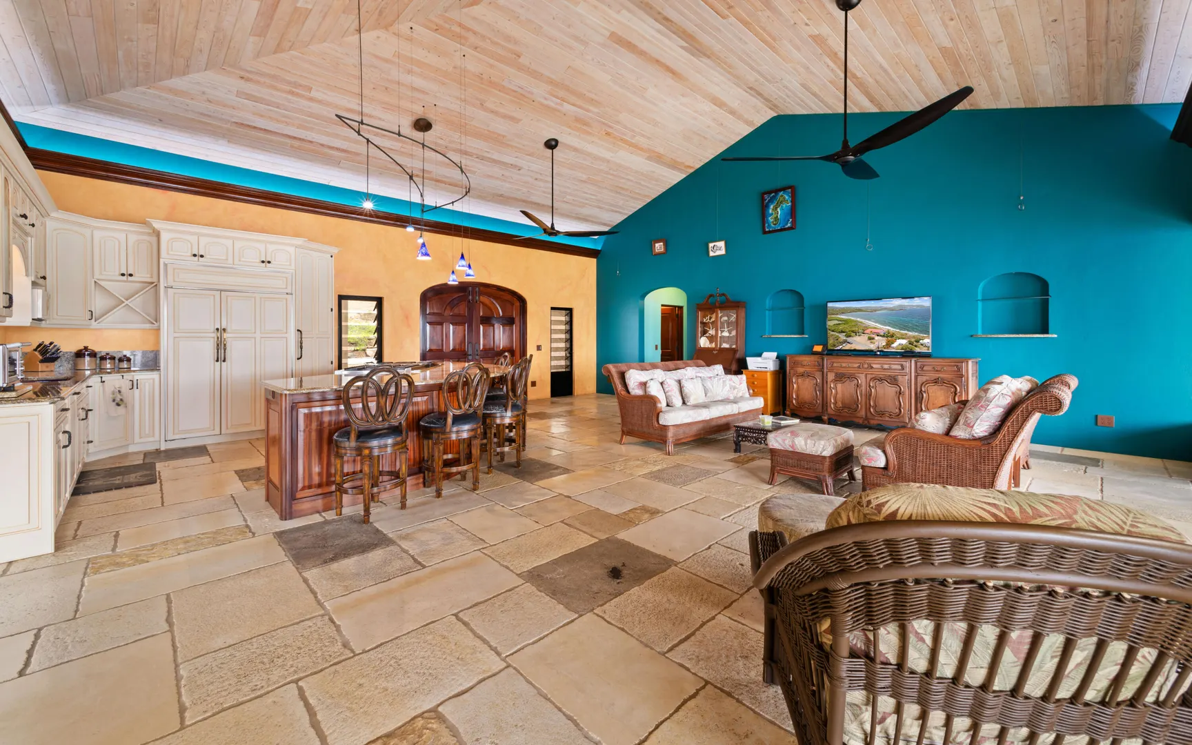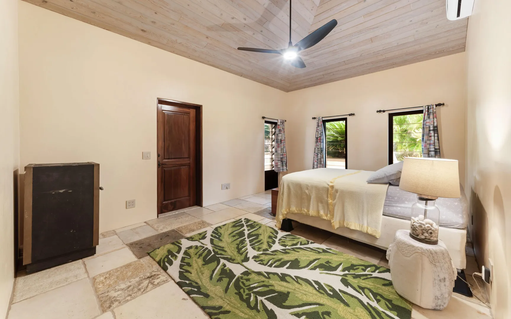 Meticulously engineered yet effortlessly livable, this Mediterranean-inspired villa at 29 Water Island was designed to embrace the Caribbean lifestyle while minimizing long-term maintenance. Solid concrete construction, an 8'' poured concrete and gunite roof, epoxy-coated rebar, and a coral stone plaster exterior provide enduring quality--allowing more time to enjoy island life and less time worrying about upkeep.Thoughtfully designed for comfort and independence, the home offers approximately 4,000 square feet of roof water collection, 35,000 gallons of cistern storage, solar panels, solar hot water, and a full battery backup system--supporting a relaxed, self-sufficient way of living.Inside, soaring pickled cypress ceilings, custom mahogany doors and cabinetry, and bronze-anodized windows and doors create a warm, timeless atmosphere that flows seamlessly to expansive covered coral stone decks, ideal for morning coffee, sunset dinners, and easy indoor-outdoor living.