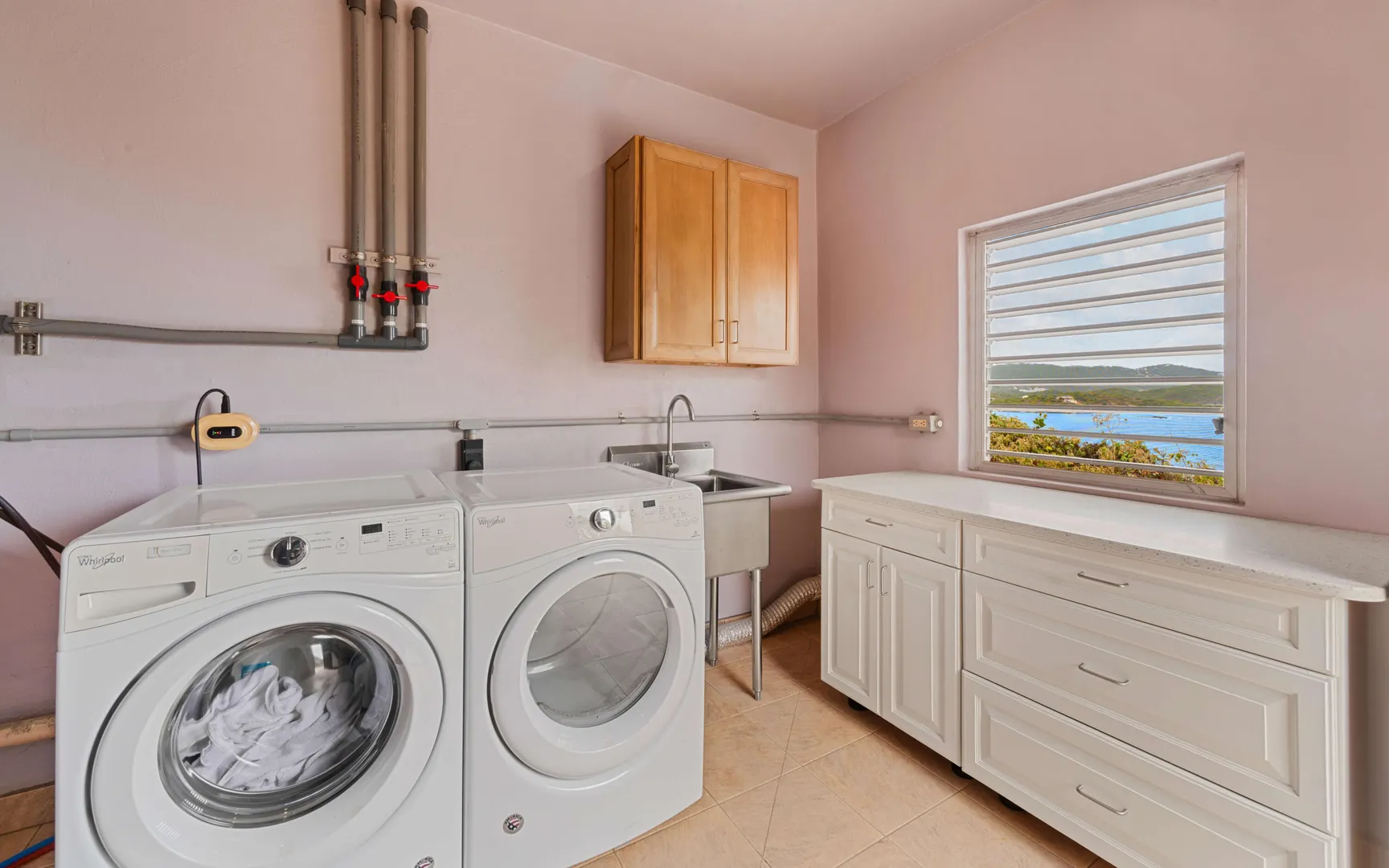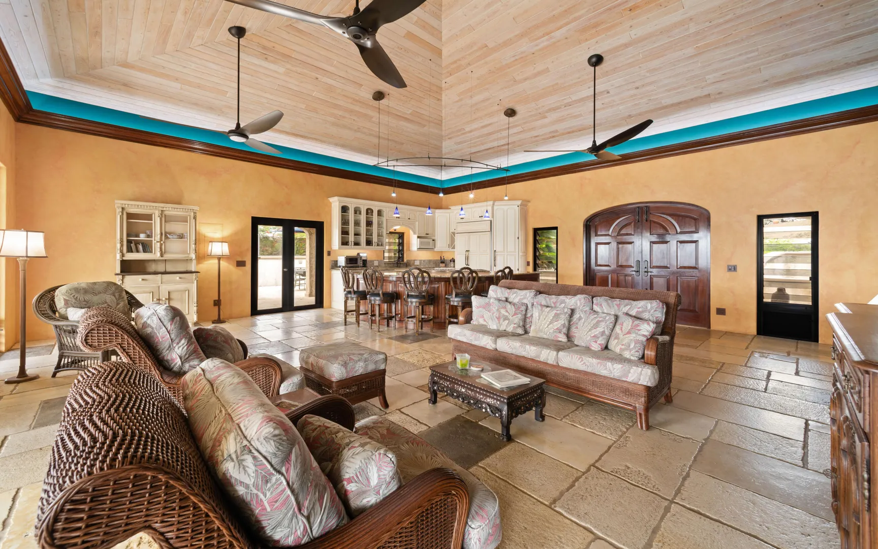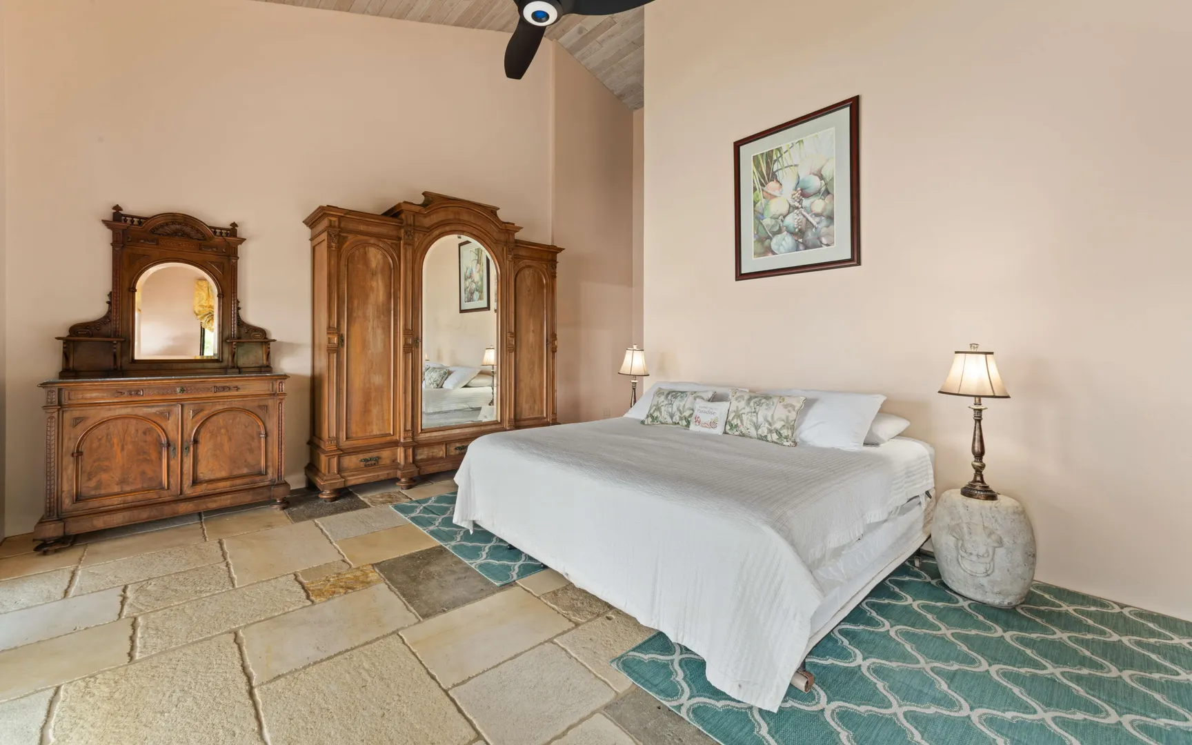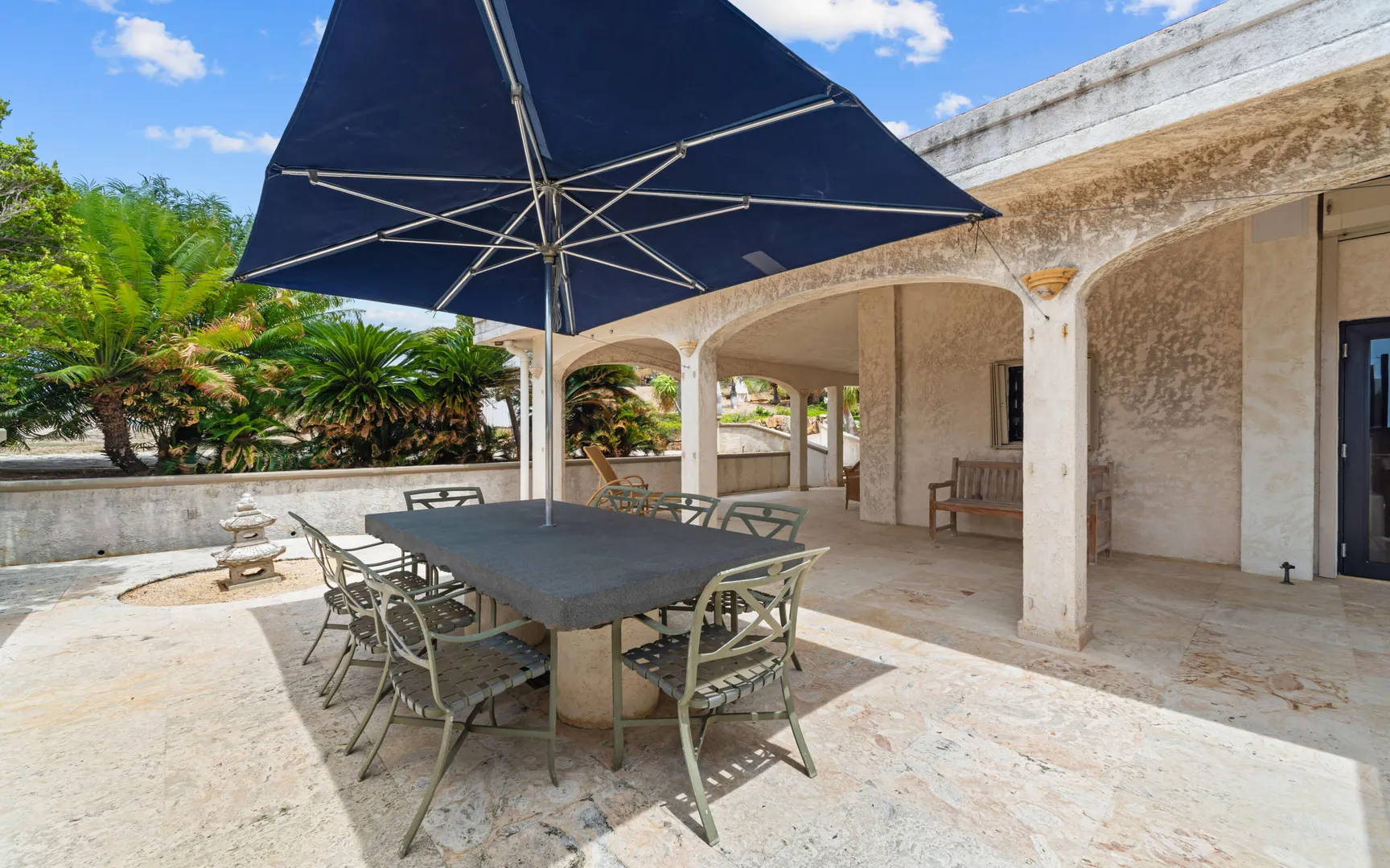 Meticulously engineered yet effortlessly livable, this Mediterranean-inspired villa at 29 Water Island was designed to embrace the Caribbean lifestyle while minimizing long-term maintenance. Solid concrete construction, an 8'' poured concrete and gunite roof, epoxy-coated rebar, and a coral stone plaster exterior provide enduring quality--allowing more time to enjoy island life and less time worrying about upkeep.Thoughtfully designed for comfort and independence, the home offers approximately 4,000 square feet of roof water collection, 35,000 gallons of cistern storage, solar panels, solar hot water, and a full battery backup system--supporting a relaxed, self-sufficient way of living.Inside, soaring pickled cypress ceilings, custom mahogany doors and cabinetry, and bronze-anodized windows and doors create a warm, timeless atmosphere that flows seamlessly to expansive covered coral stone decks, ideal for morning coffee, sunset dinners, and easy indoor-outdoor living.