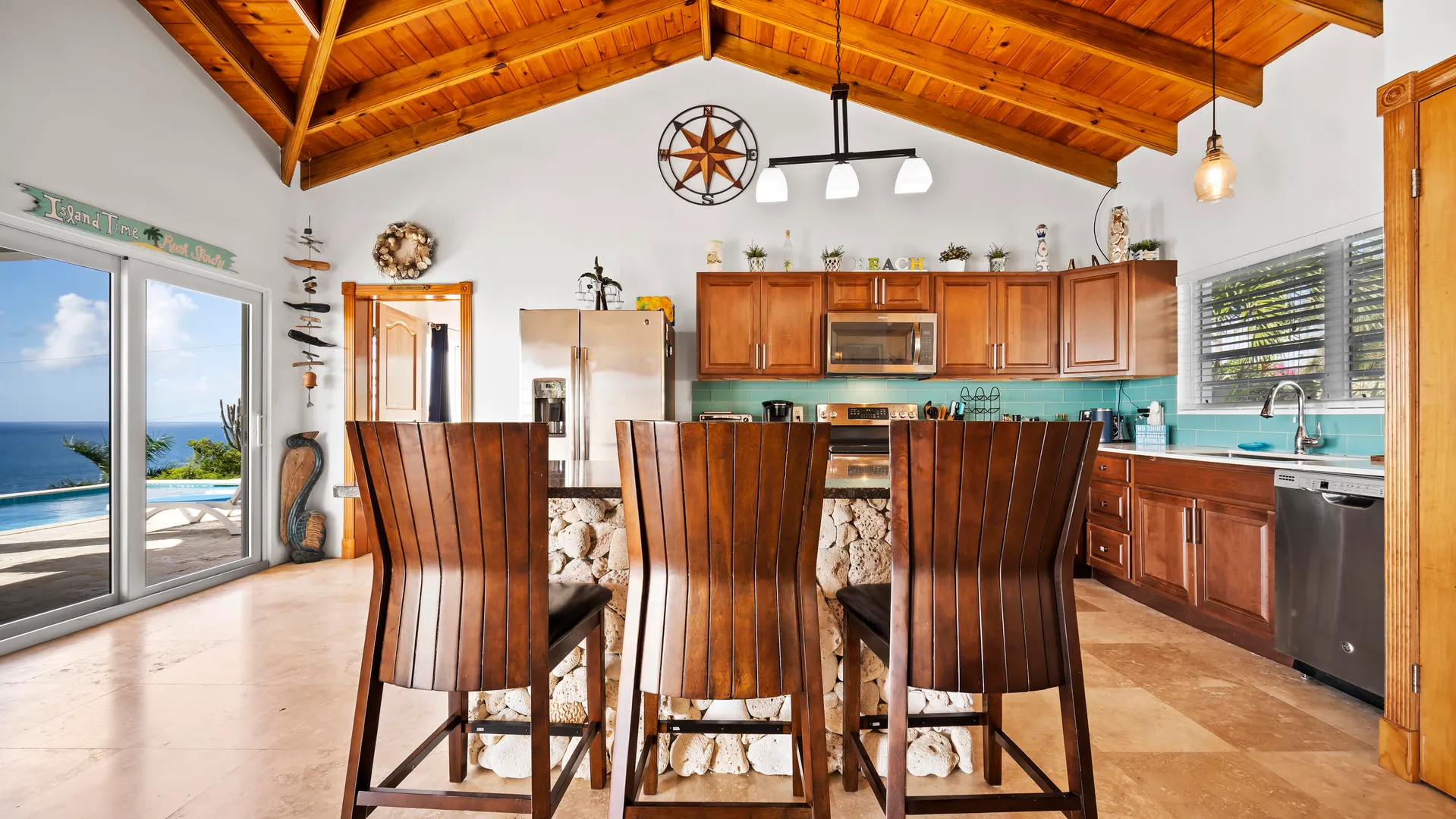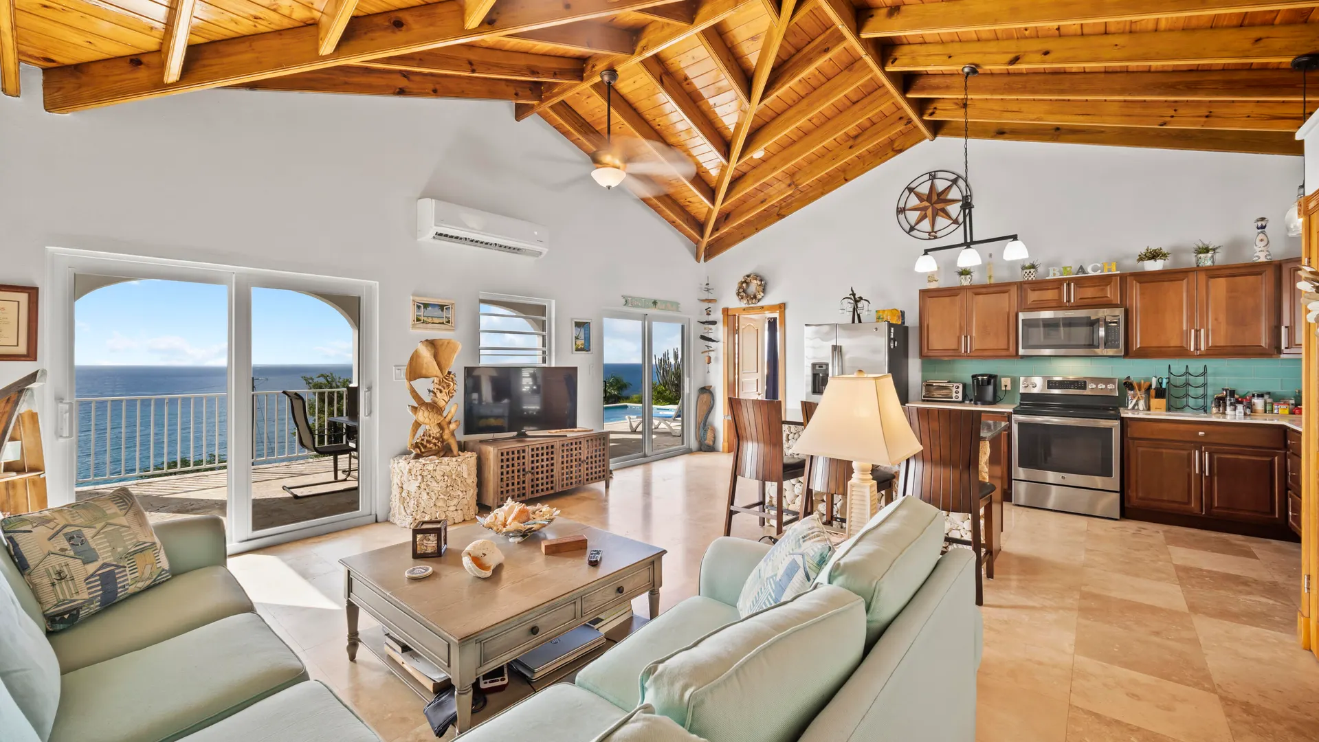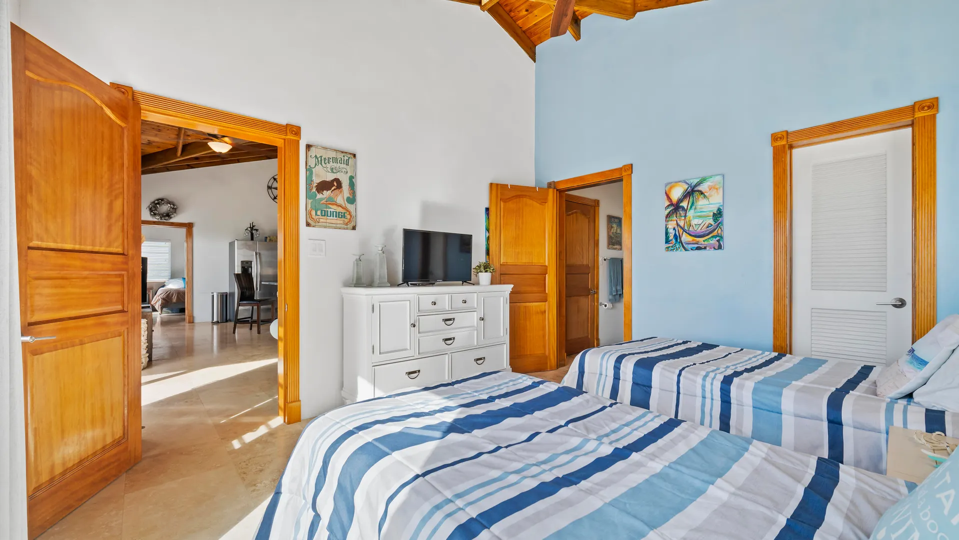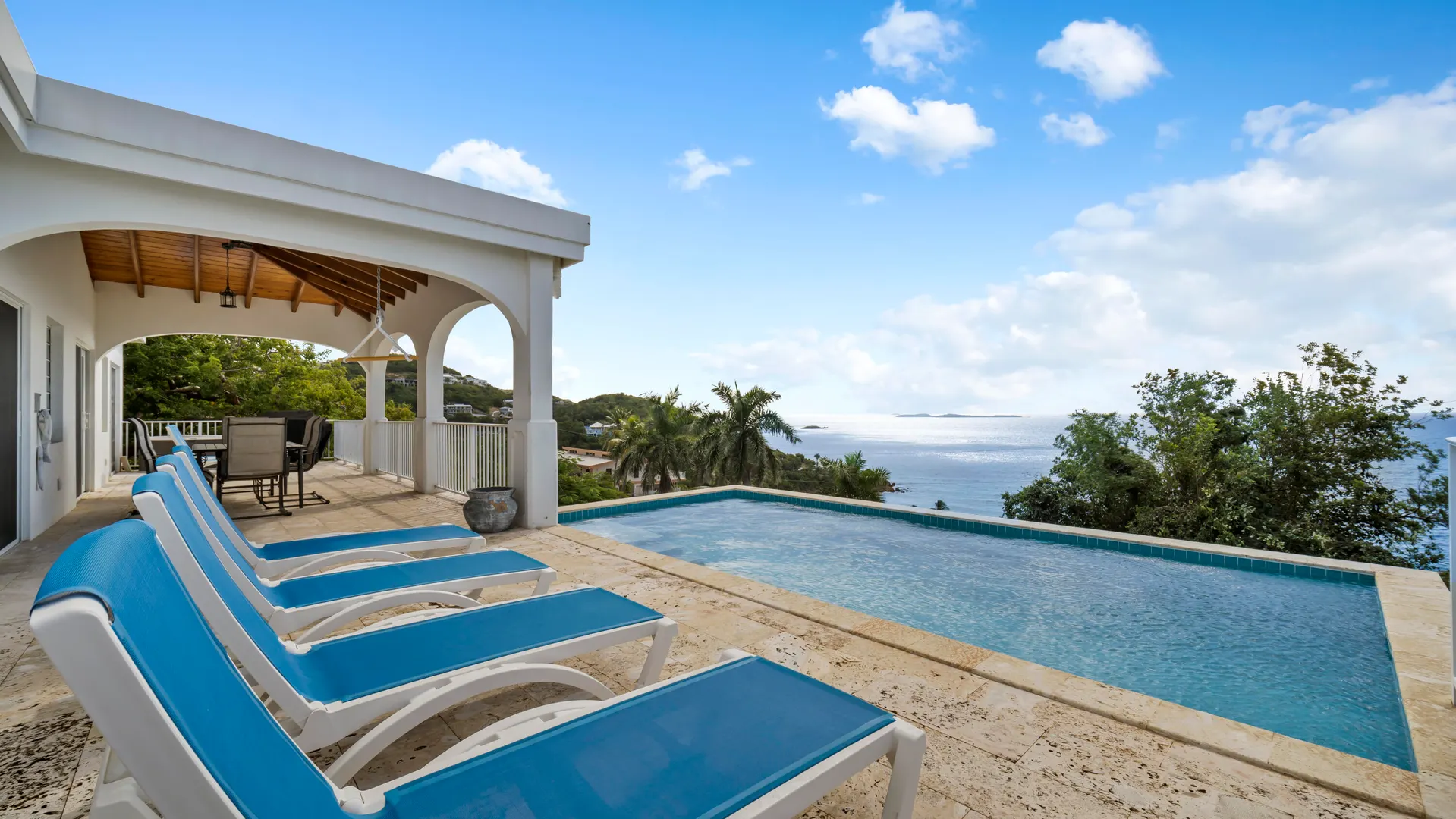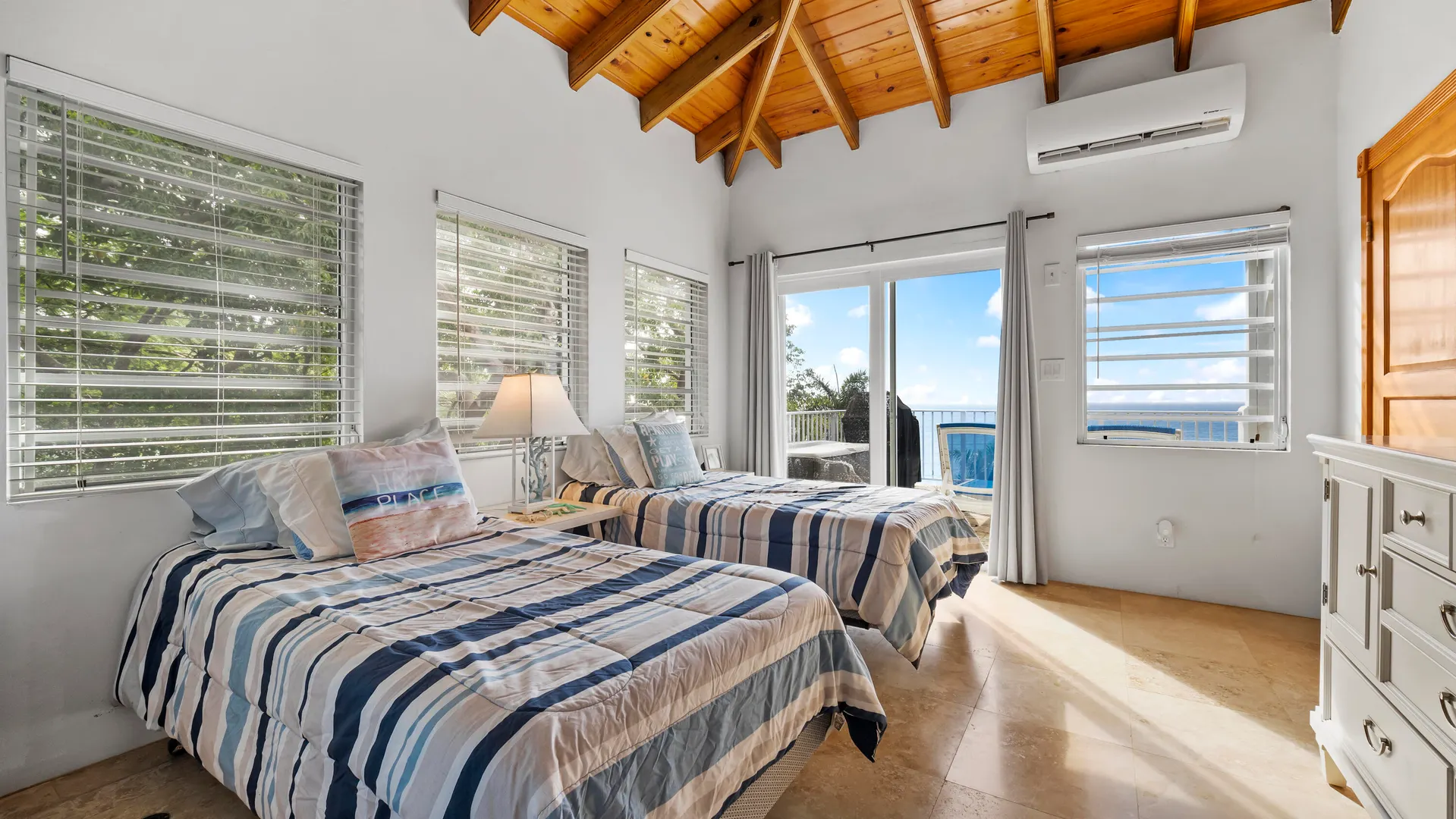This light, bright Bakkeroe delight with views overlooking Morning Star Beach & extending out to the vast Caribbean Sea offers island appeal indoors and outdoors. 2 charming bedrooms & bathrooms on the main floor with a 3rd Bedroom & great room with exercise area below. Turn the lower level into a comfortable 1 Bedroom/1 Bathroom unit with the addition of a kitchen. Solid construction, clean finishes & tasteful furnishings on the inside & cool tropical breezes & a beautiful refreshing pool & deck on the outside. A short walk to the Westin Resort with its restaurants, beach & amenities. The appeal of this property is magnetic.