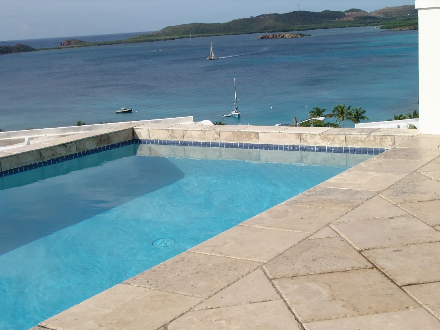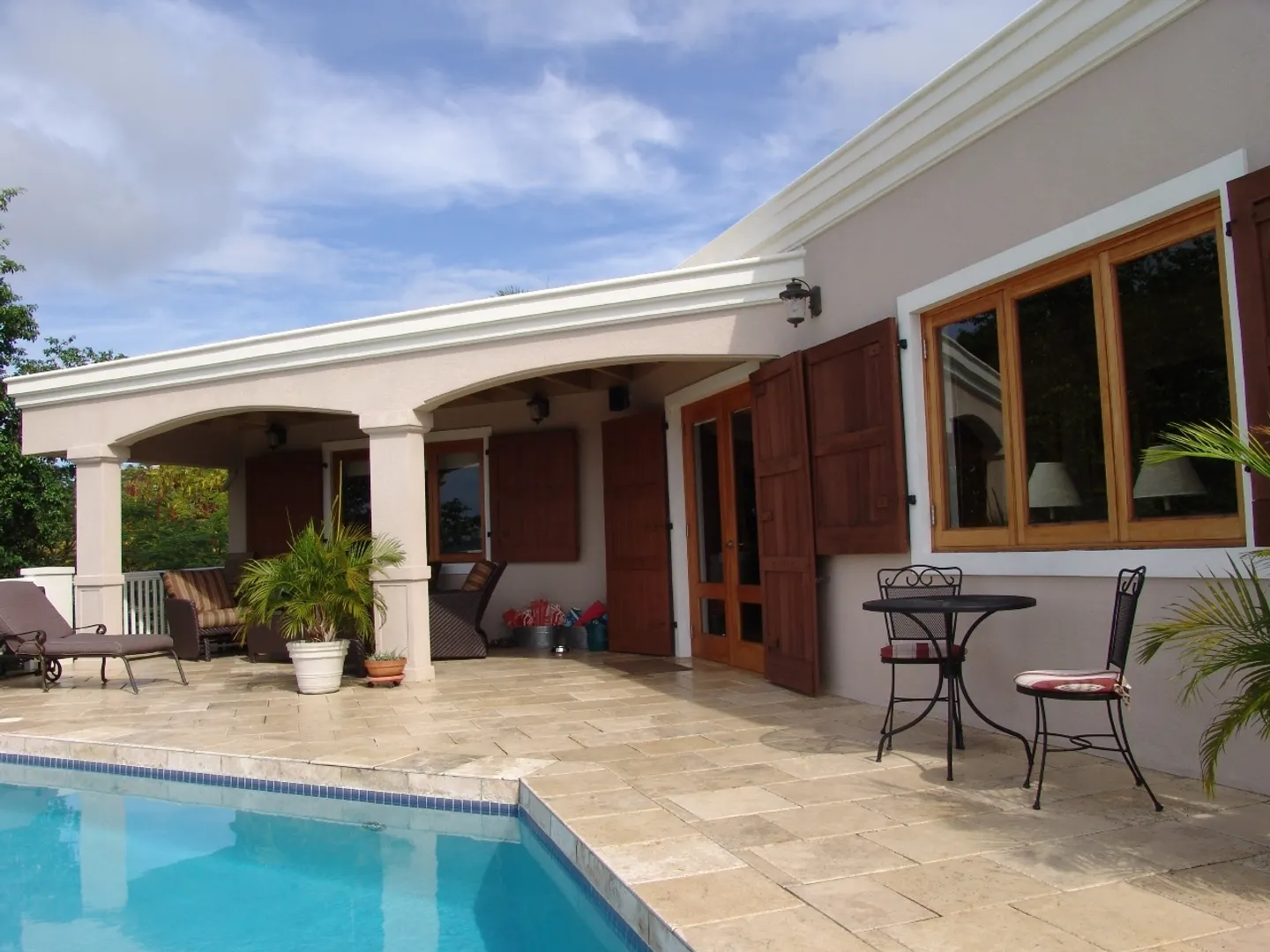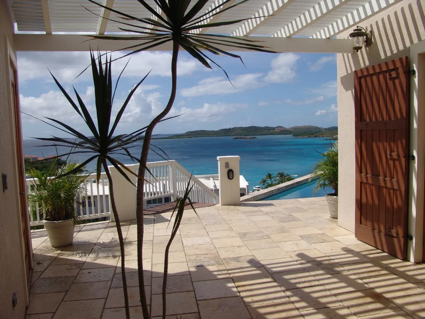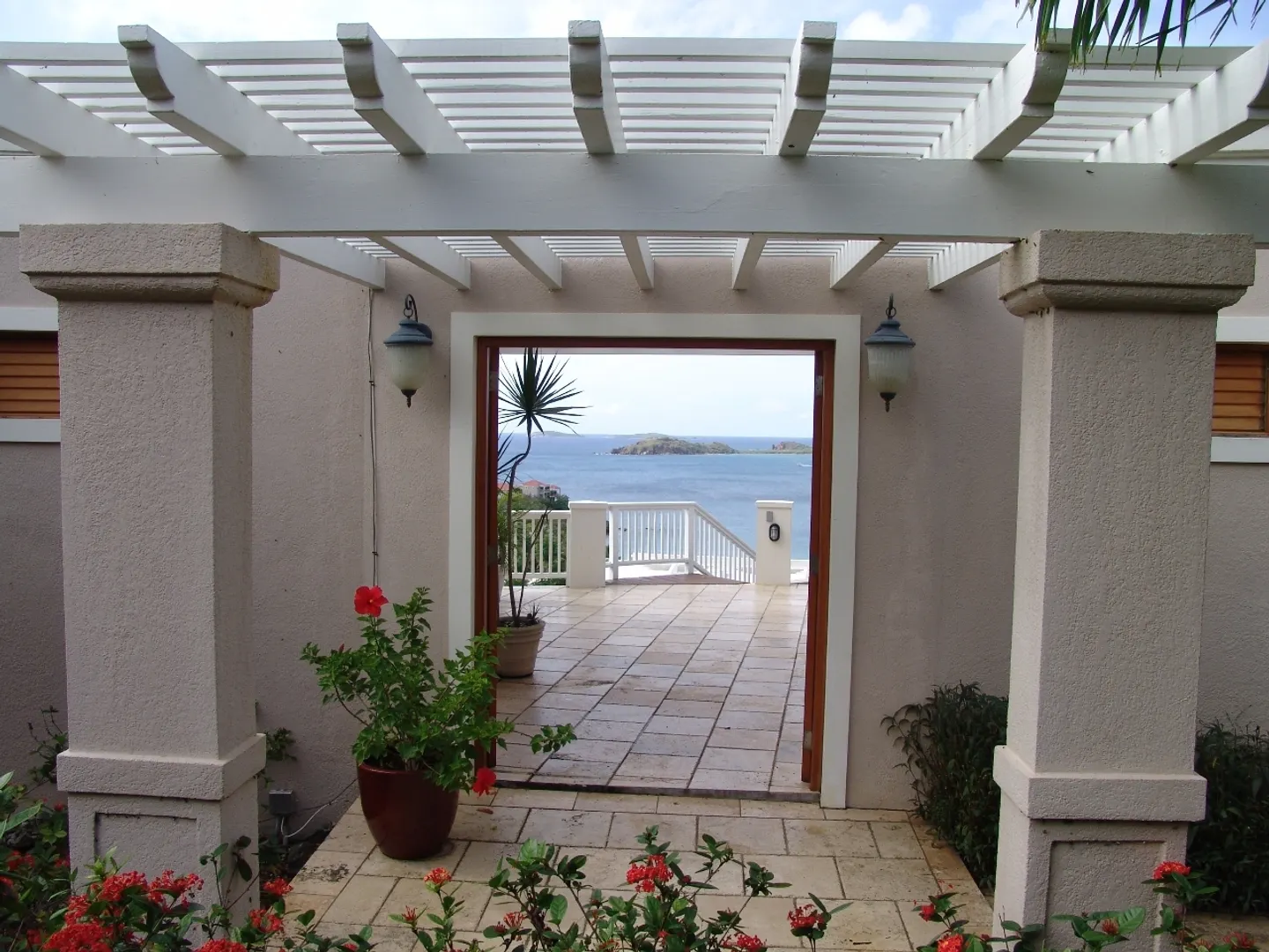 Set above Secret Harbour, this beautiful three bedroom home has all that you could want. Location, views, swimming pool, gourmet kitchen, custom cabinetry, travertine throughout, lush professional landscaping, gated drive with ample parking and more!! Truly a home for the discriminating. Built by JPK Development in 2007, the attention to detail is remarkable. Vauled ceilings and custom windows andcustom windows shades are just a few of the extras. The kitchen boasts a Wolf 6 burner gas stove, Trash compactor, GE Profile convection oven, microwave and refrigerator. Propane Gaurdian generator (17 KW) and on demand propane hot water heaters help with the WAPA bills. There is a satellite for Dish Network and a satellite receiver for Broadband Internet. Four interior and two exterior speakers for easy listening! All in a setting that is truly a Caribbean Paradise.