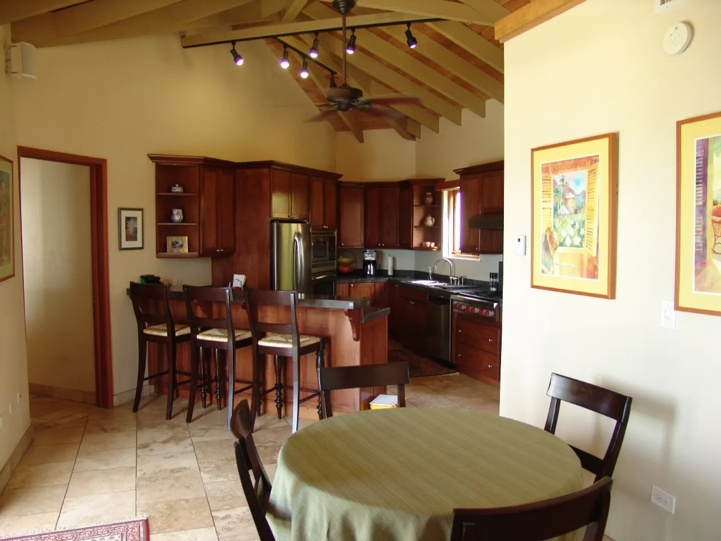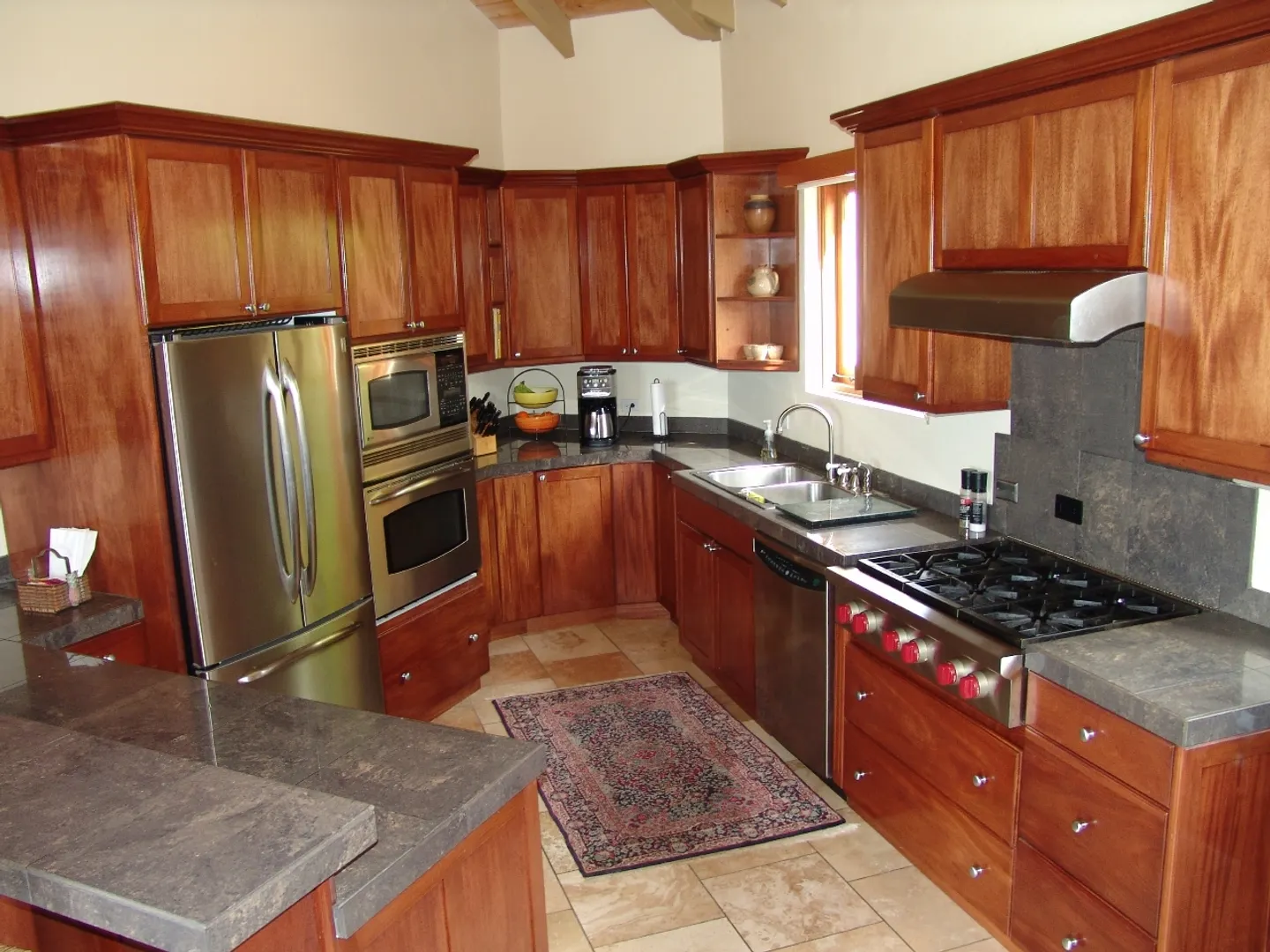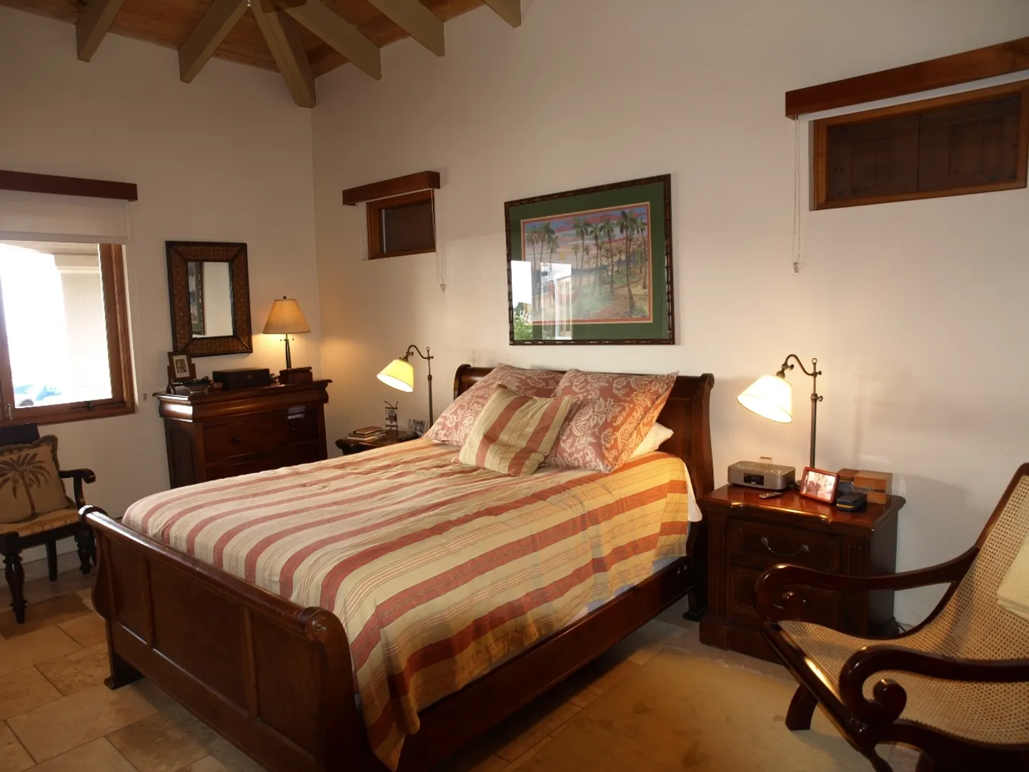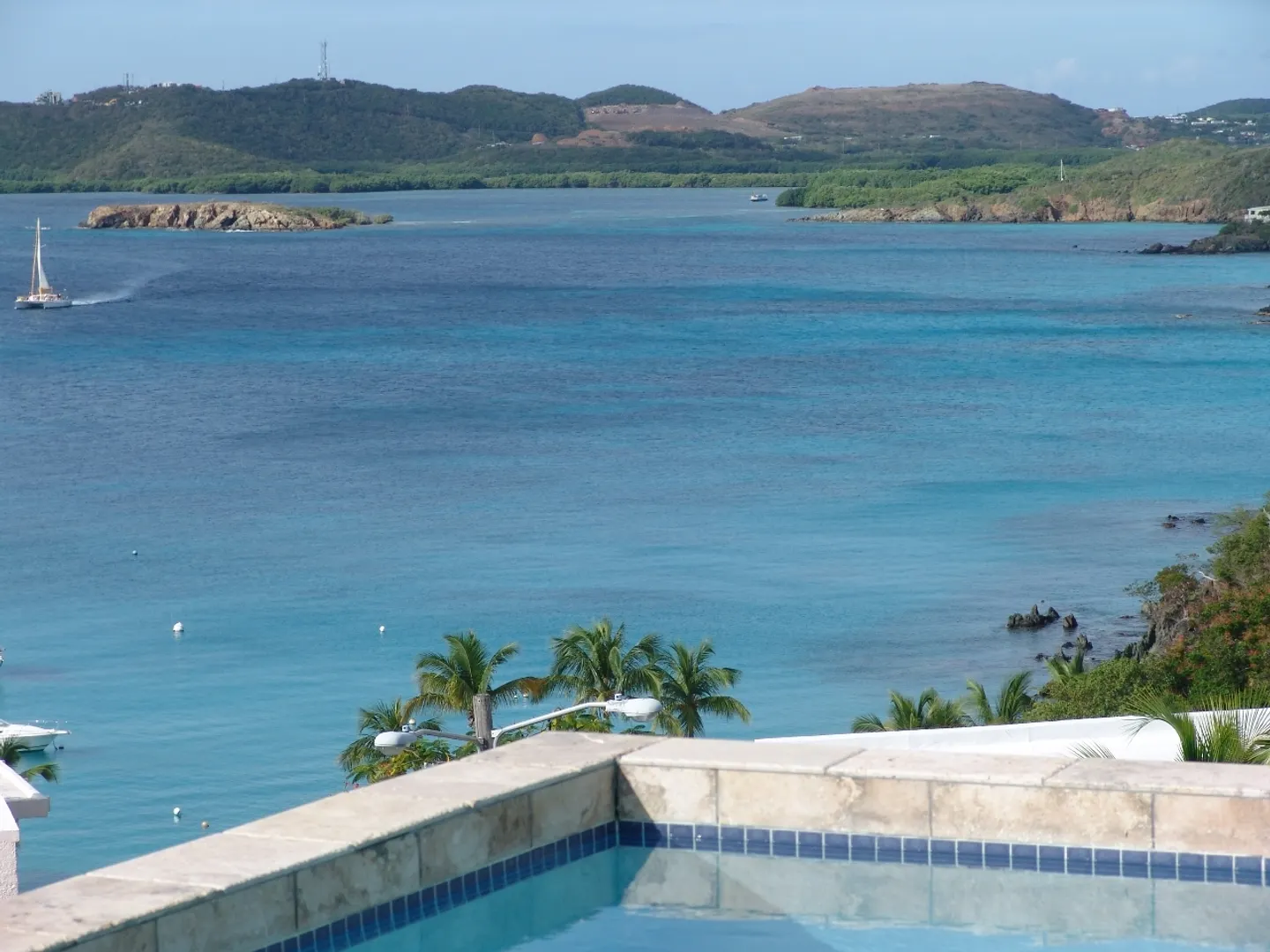 Set above Secret Harbour, this beautiful three bedroom home has all that you could want. Location, views, swimming pool, gourmet kitchen, custom cabinetry, travertine throughout, lush professional landscaping, gated drive with ample parking and more!! Truly a home for the discriminating. Built by JPK Development in 2007, the attention to detail is remarkable. Vauled ceilings and custom windows andcustom windows shades are just a few of the extras. The kitchen boasts a Wolf 6 burner gas stove, Trash compactor, GE Profile convection oven, microwave and refrigerator. Propane Gaurdian generator (17 KW) and on demand propane hot water heaters help with the WAPA bills. There is a satellite for Dish Network and a satellite receiver for Broadband Internet. Four interior and two exterior speakers for easy listening! All in a setting that is truly a Caribbean Paradise.
