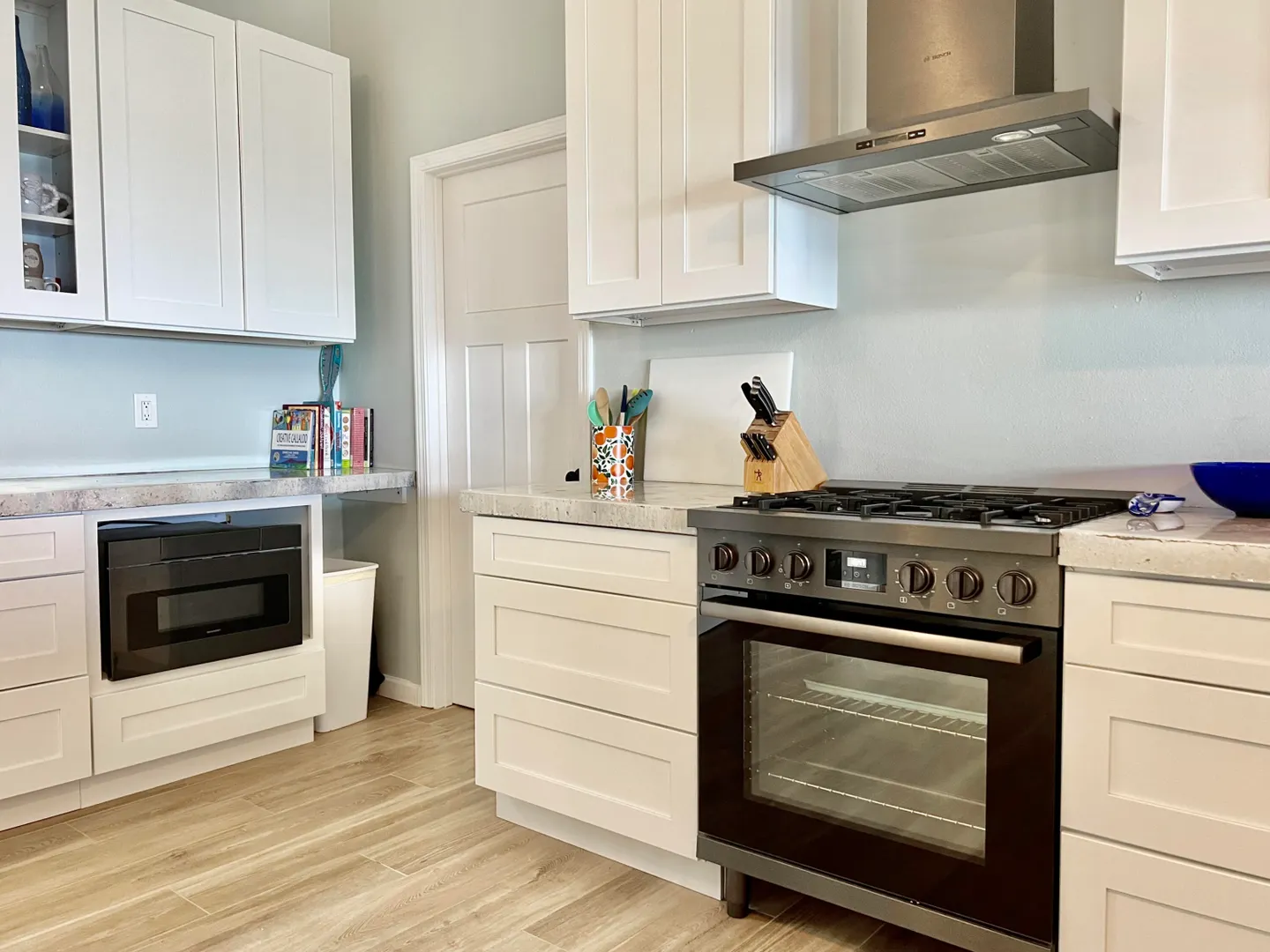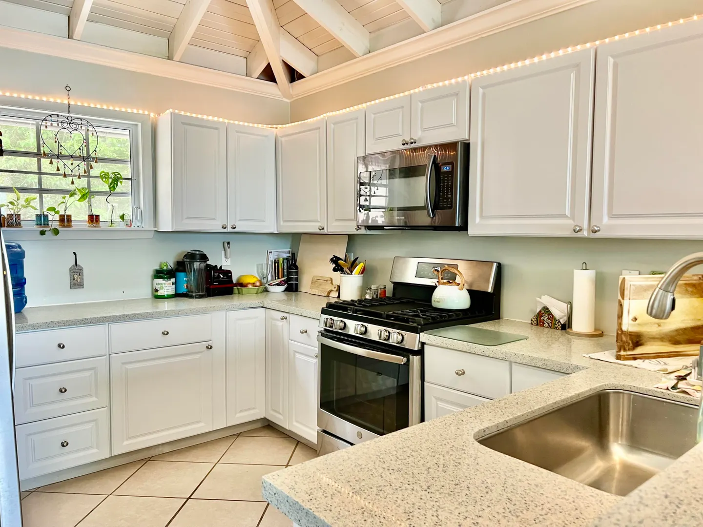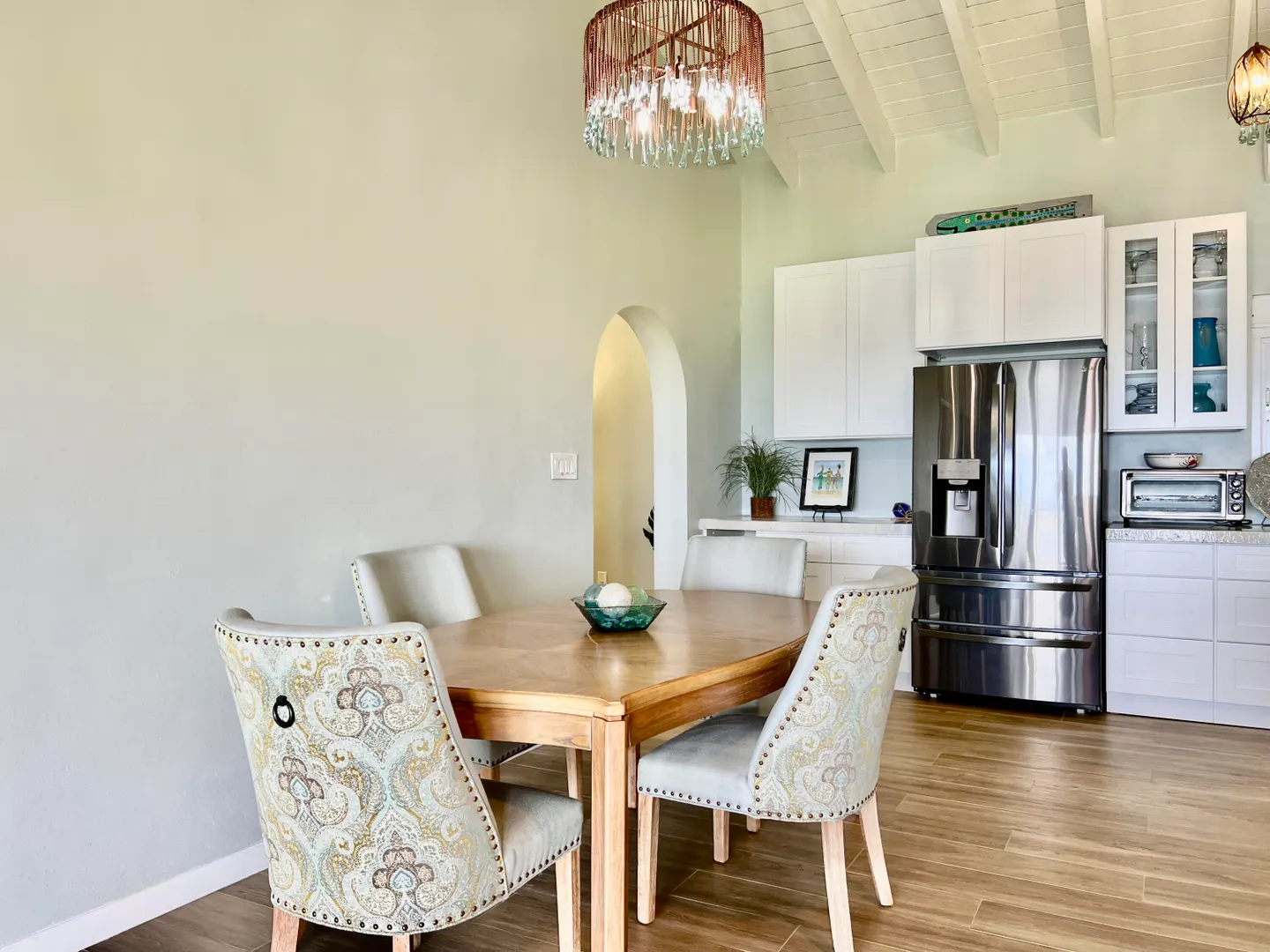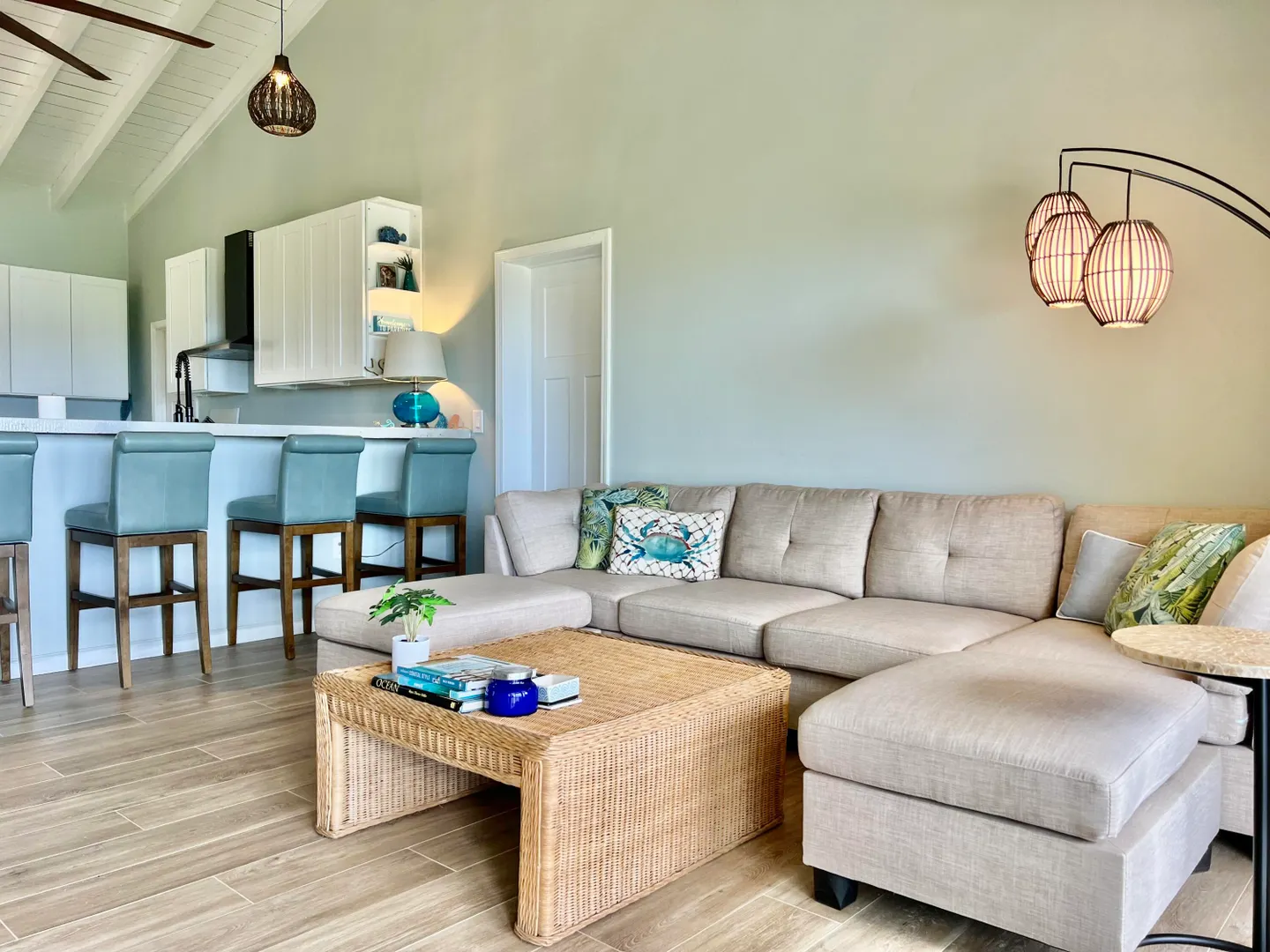 This remarkable property offers a seamless blend of modernity, privacy, and natural splendor. The two-story, newly constructed main house features two bedrooms and two bathrooms on the upper level, and an extraordinary four car garage on the lower level with a bonus unfinished room to make your own. A separate stand-alone one bedroom one bathroom cottage expands the value of this unique island retreat. The heart of the main home lies in the oversized kitchen, complete with upgraded stainless-steel appliances and custom concrete countertops adorned with seaglass inserts. Gather around the 10-foot bar on its leather swivel bar stools. The spacious bedrooms provide private refuges, while the custom-tiled shower in the master bathroom and the bathtub in the guest room offer moments of