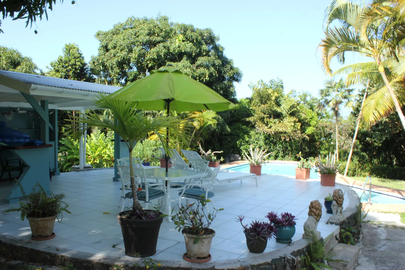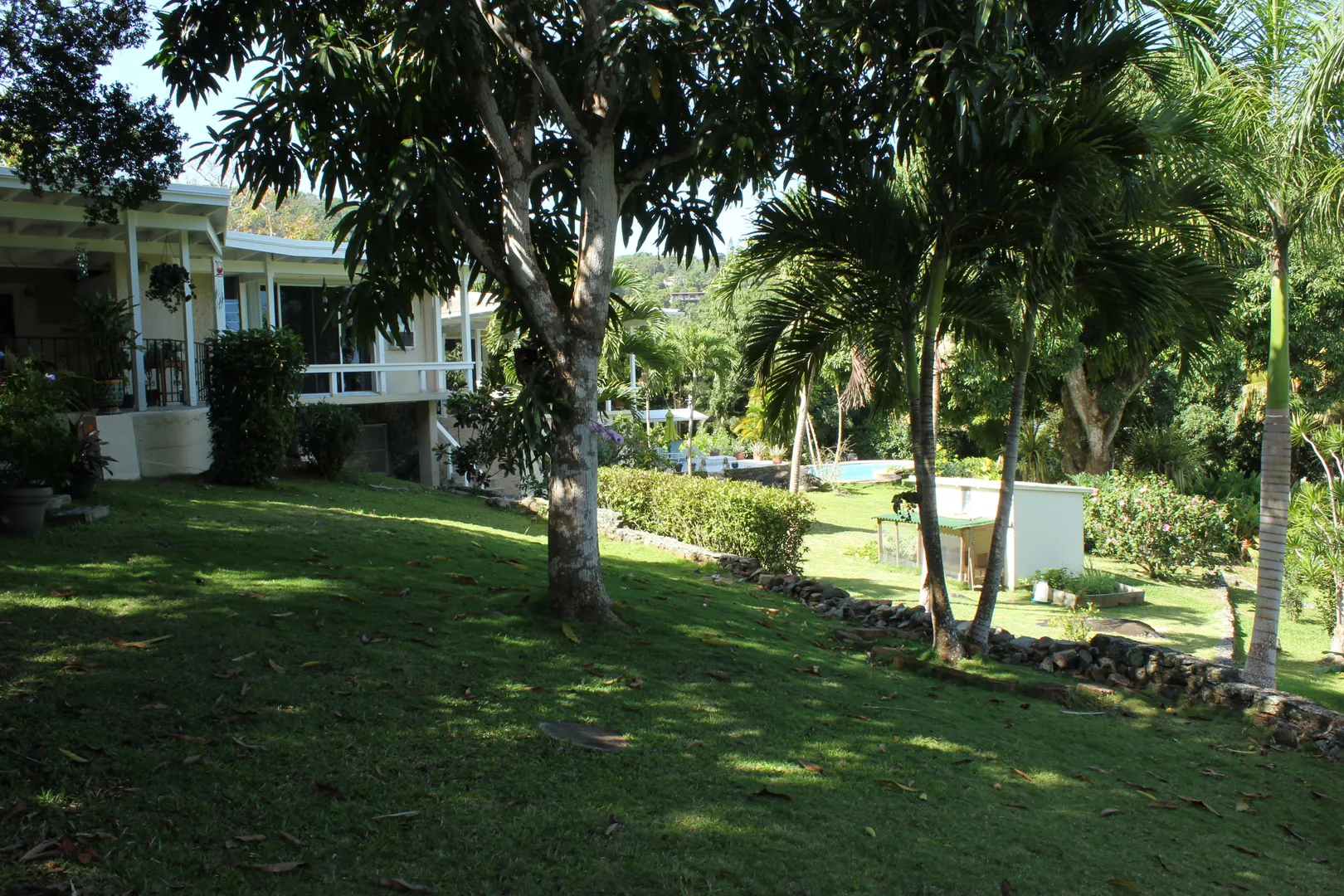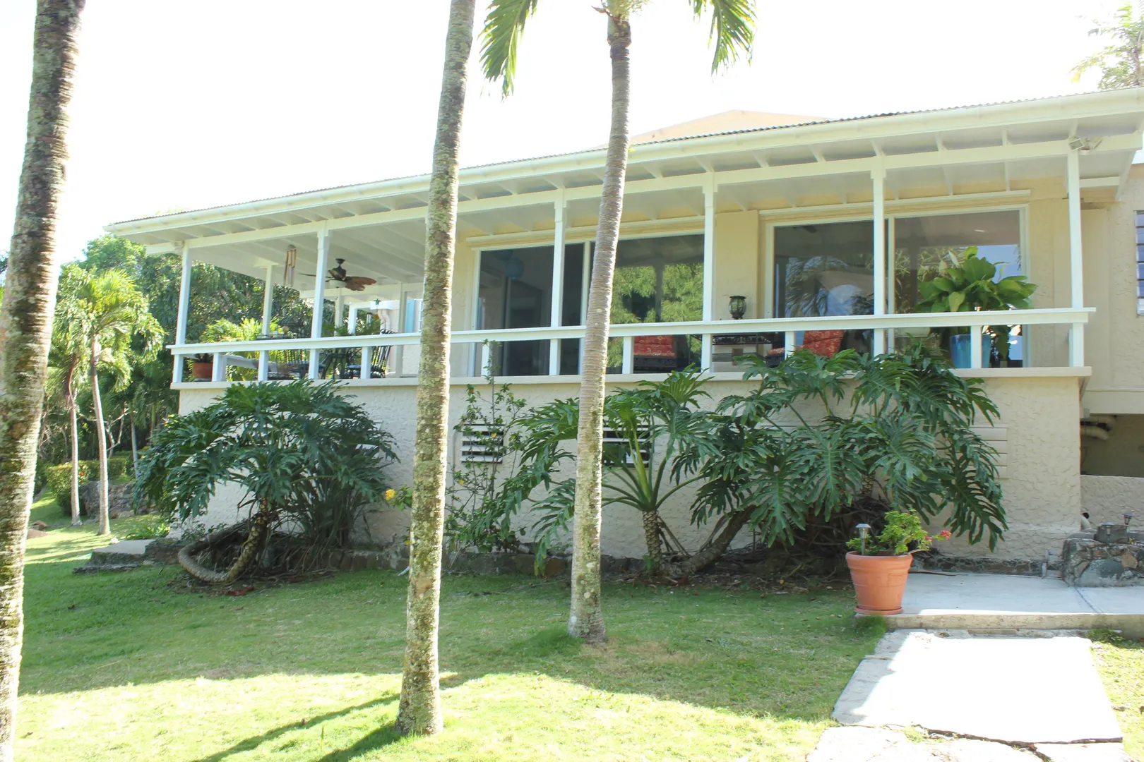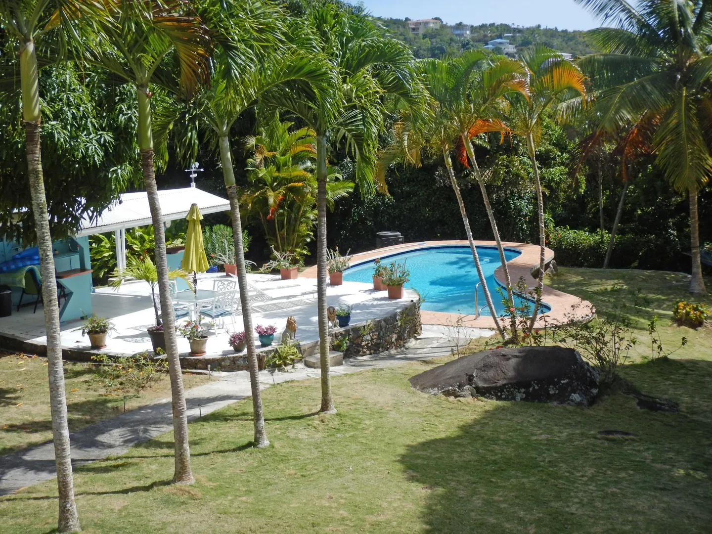 Lovingly and meticulously detailed, upgraded and renovated over the past year, this property is like no other on St. Thomas. Imagine over two acres of rolling lawns, massive Mahogany trees, fruit trees and flowering plants surrounding the masonry home with over 3,359 sf interior including 4 bedrooms, 5.5 baths, office, great room, den, living room, second outdoor kitchen and huge pool. Details include an electric gate at entrance, fully fenced, circular driveway, car port and 20kw generator w/ auto transfer switch, brand new custom glamorous kitchen with top of the line GE appliances in 'slate', upgraded baths, new split air conditioning, new flooring, upgraded electrical and painted inside and out. You will be charmed by the blue bit walls meandering throughout the property,and the trees were all trimmed to reveal amazing northwest water views that are stunning. Bring your pets, horses, kids and baskets to collect your mangoes, avocados, oranges and limes IMPROVEMENTS 10K Solar Array on roof with net metering New custom kitchen with solid wood cabinets by Patrick Corcoran cabinet maker Synthetic Quartz Counters Replaced every electrical switch and outlet in house Appliances are new GE Profile in new slate color; including double ovens with glass cooktop, dishwasher and two refrigerators with a third refrigerator and dishwasher and bar frig in summer kitchen on patio. LED lights on top of kitchen cabinets Pool refinished with Diamond Brite pool pump new UV- Dual water filters New flooring 3 new split a/c units a/c i every bedroom and office Entire house painted interior and exterior since 2015 New ceiling fans 4 stage RO water filtration in kitchen 20,000 gallon cistern under pool patio to service filling of pool Move in condition ALL furnishings and art work convey AT FULL LISTING PRICE See list of trees and plants under documents tab