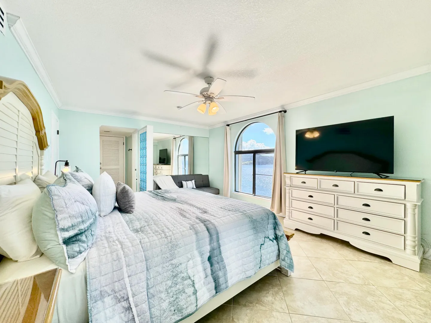 Experience elevated island living in this 2-bed, 2-bath top-floor condo at Sea Cliff. Revel in sweeping ocean views from every room. Take advantage of amenities including 3 pools, tennis courts, and pet-friendly living (with approval). The open kitchen connects to 2 breezy balconies, and the spacious living area offers room to relax or work. Walk to Mims Seafood Bistro, Bolongo Beach, and Iggies Beach Bar & Restaurant. Perfect for full-time living or vacation rental income. Enjoy peaceful coastal charm with quick access to Red Hook and Havensight. Discover comfort and convenience in this serene seaside escape.