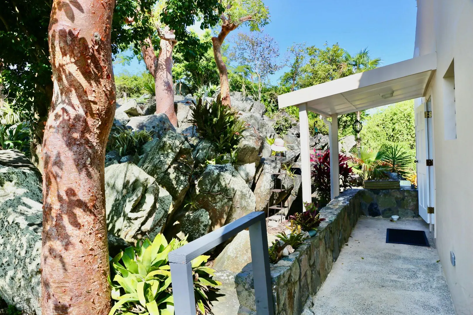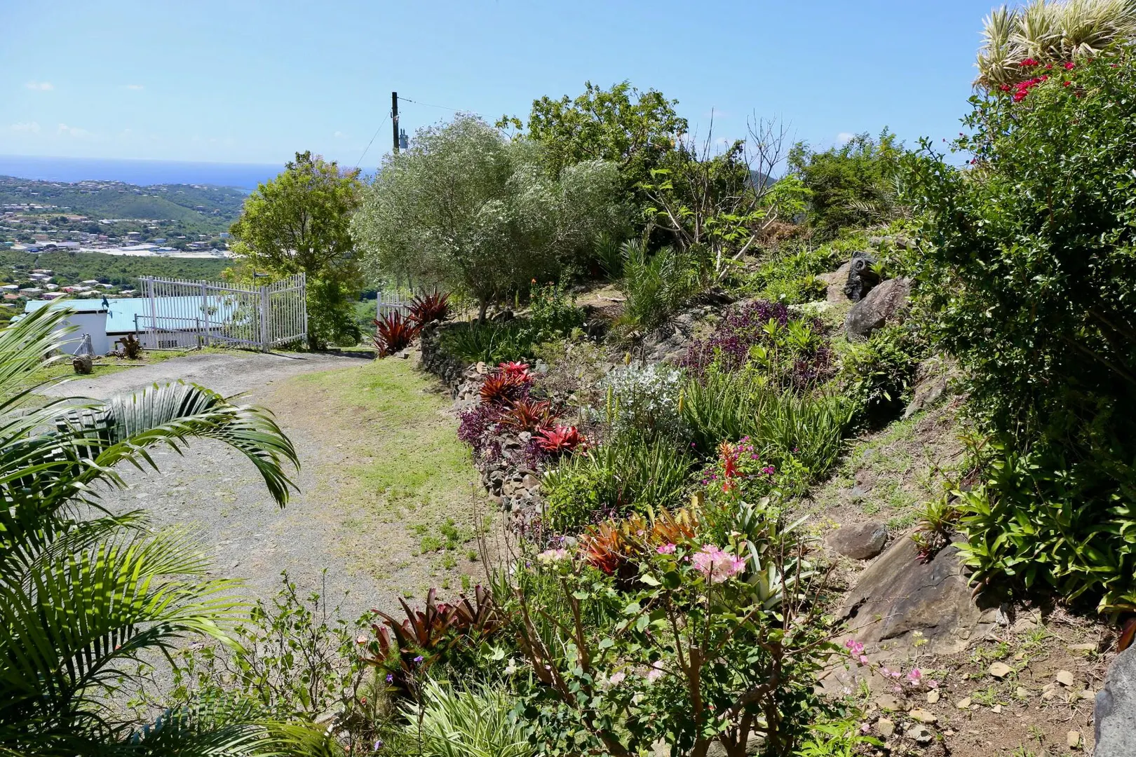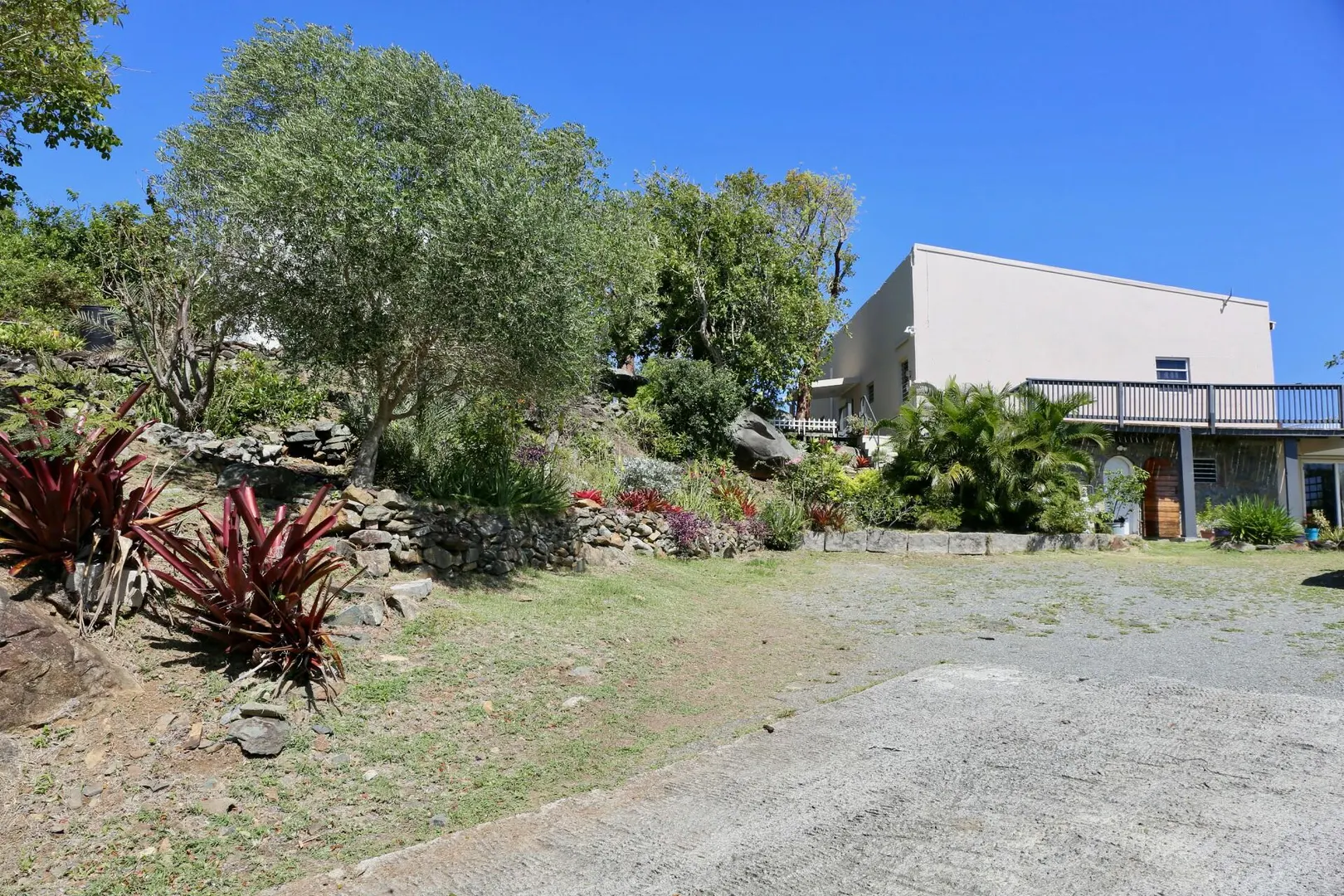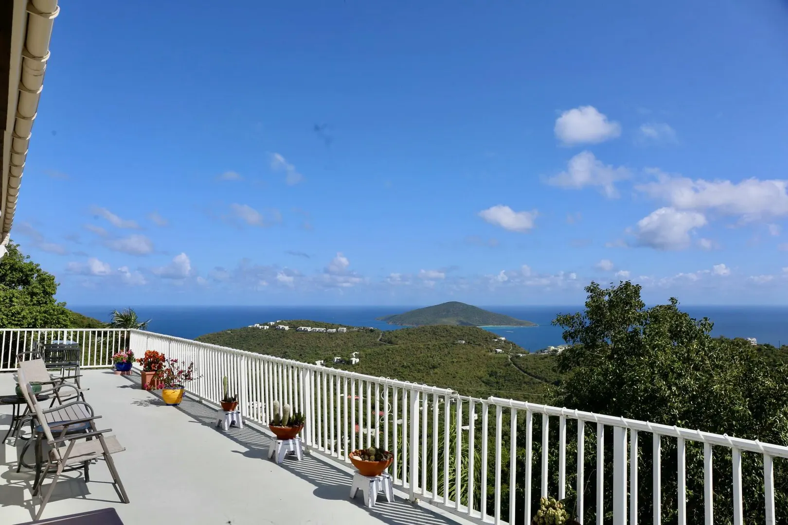 The views are endless. Hans Lollik to the left, BVI, St. John and you can see St. Croix on a clear day. A wrap around balcony for taking in the island chain. This terrific property has an open floor plan, 3 bedrooms, 2 baths in the main house, a 1 bed 1 bath apartment downstairs and separate laundry room/storage/work area with unfinished plumbed full bathroom. The large, flat parking area can accommodate plenty of vehicles . Solar panels with net metering keeps the Wapa bills low and there is battery back up. There are 2 attic spaces for extra storage. Gorgeous gardens set among the boulders make this property very unique. Lots of fruit trees throughout the property. The home offers easy, comfortable living with wonderful breezes.