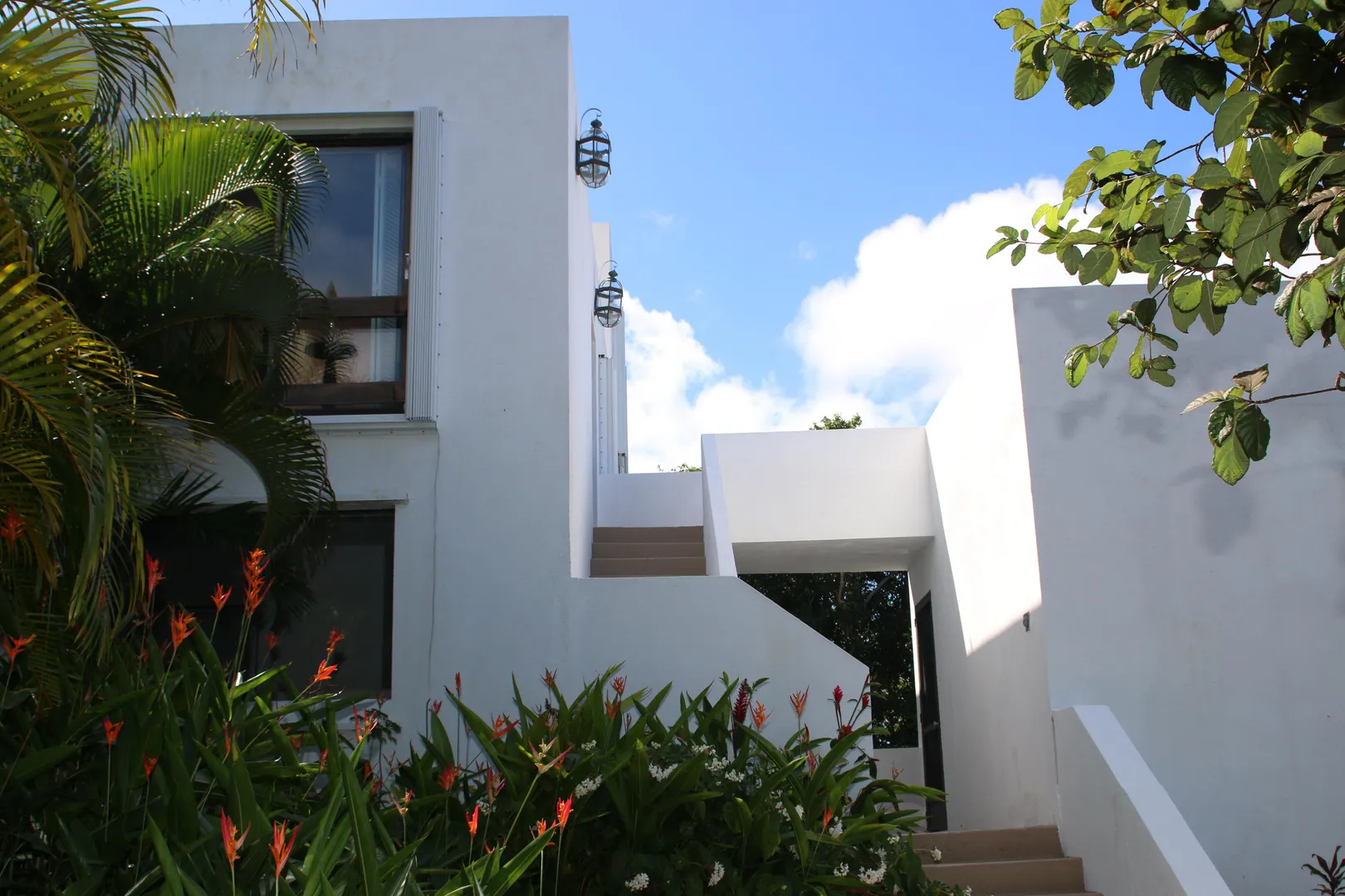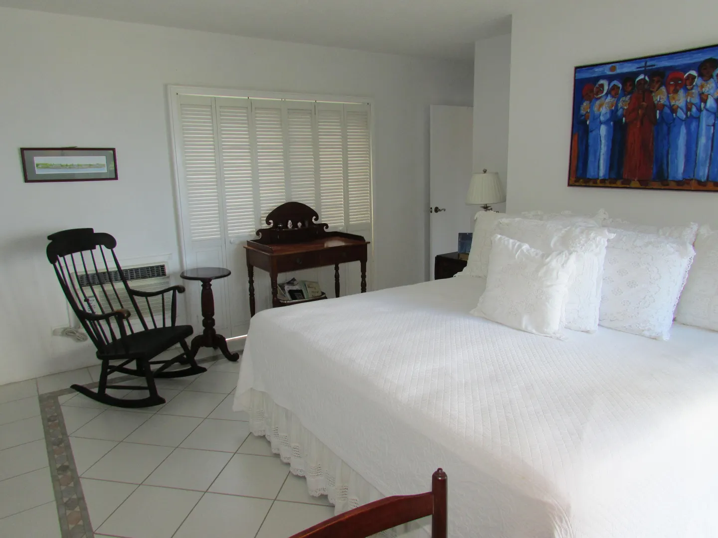 WHY THIS HOME? Panoramic Atlantic views, seamless indoor-outdoor living space, a lovely courtyard surrounded by lush tropical foliage, an apartment for guests or for rental income, located in a quiet neighborhood, privacy, good parking and close to the island's only golf course!
