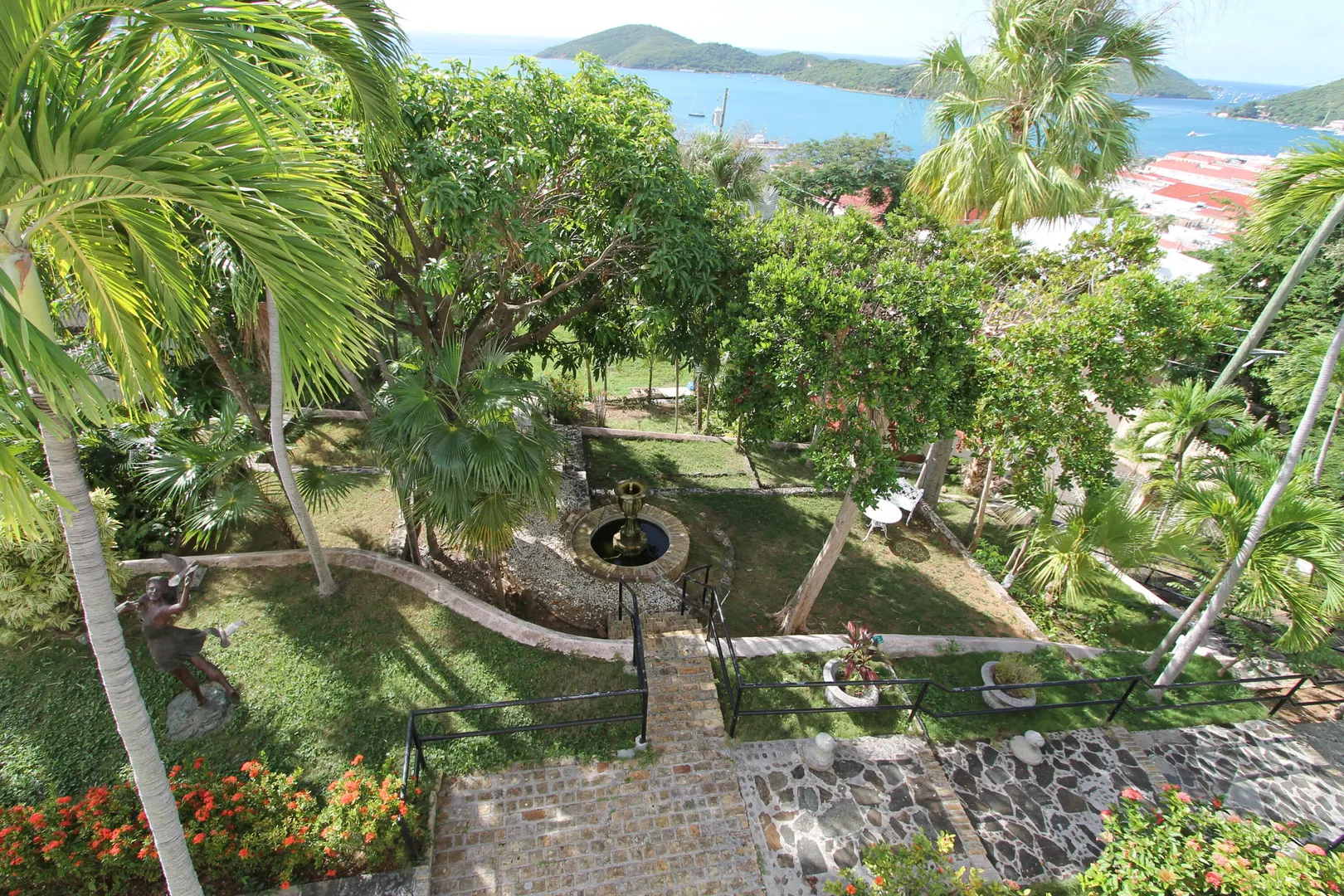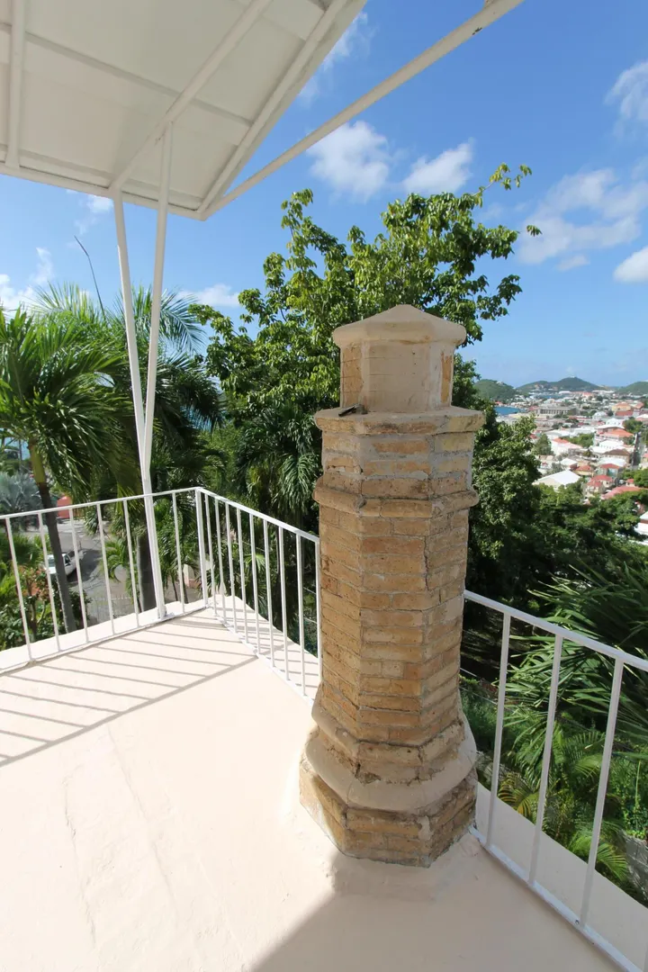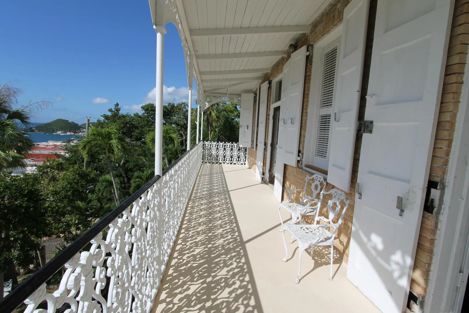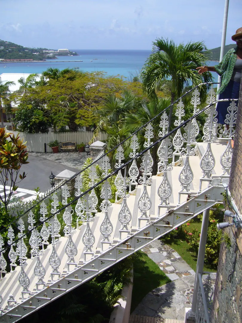 Located in the Opportunity Zone. Built in 1860 by Scottish engineer Robert Notman for his wife Mary and daughter Jane. Notman helped build the West Indian Company Dock and was the Superintendent for the Royal English Steamship Packet Company. Villa Notman is one of sixteen existing houses the island built of yellow ballast brick which was used to stabilize ships traveling from Europe to the West Indies in combination with handsome native stone, augite andesite. The house has an exceptional cast iron double balcony imported from New Orleans. The house also has a fragrance garden with Bay Rum trees, Plumeria, used in making perfume.Villa Notman was also known as the Mark St. Thomas a favorite guest house restaurant and bar. Includes 41 Dronningen