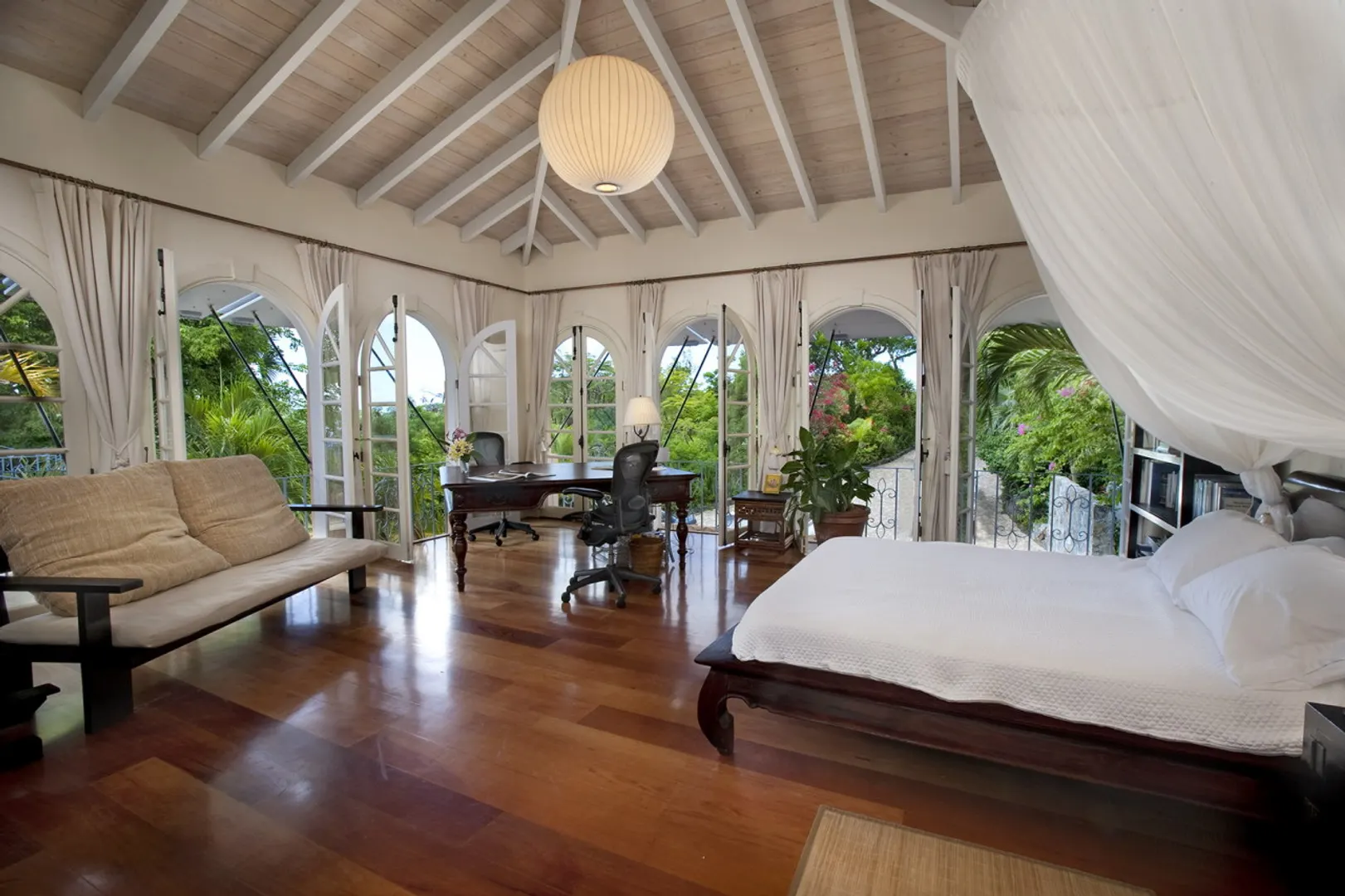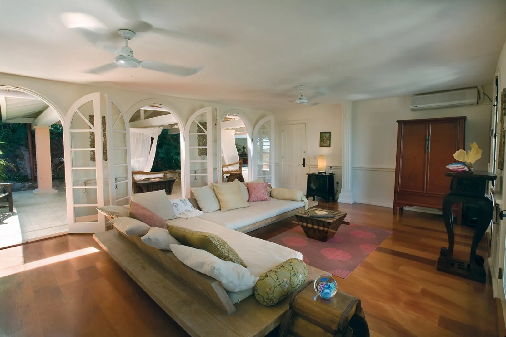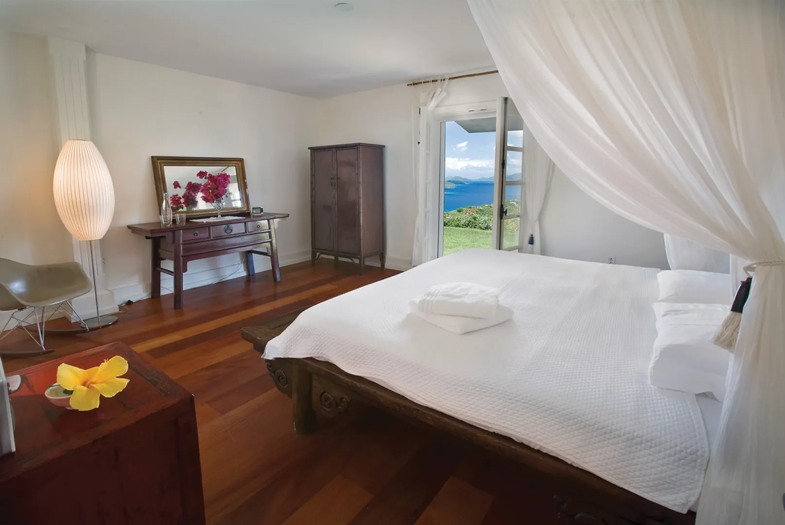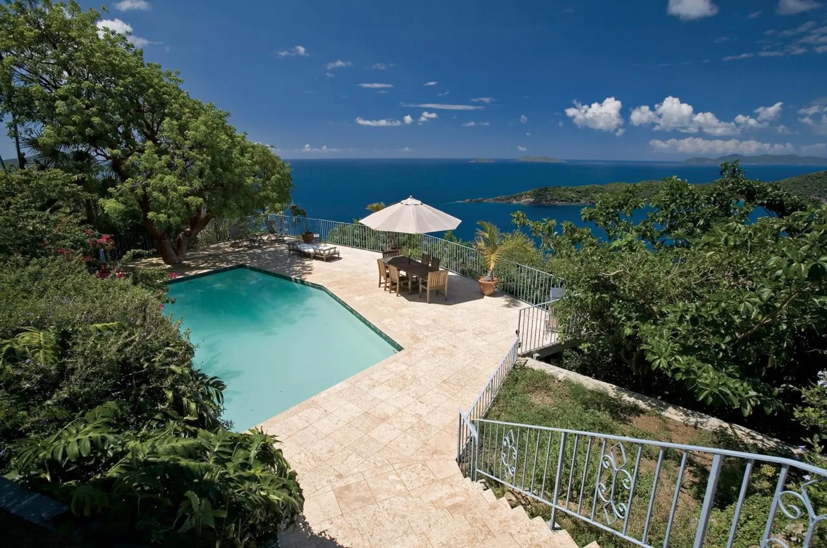 Approach the 3-acre estate named 'Indochine' & enter an oasis of tranquility. With Oriental antiques & modern teak pieces set on mahogany floors, this home is like no other on St. Thomas. Spacious ultra comfortable living areas & bedrooms are zen-like in their elegant simplicity. Outside a pool, meditation pavilion & hiking trail enjoy stunning ocean views. Price reduced from $4.9 million.Fenced, with electronic security gate Caretakers apartment 4 air conditioned bedrooms, 4 baths. Custom organic mattresses Master suite with bamboo lined alfresco shower Air conditioned living room Cable TV & wireless high speed internet throughout Central courtyard garden loggia with antique Balinese daybeds & flowing net drapes. Mahogany & coral stone floors. Gourmet kitchen with commercial refrigerator/freezer, 8-burner Vulcan range with double ovens & griddle top Pool 14 x 34 x 8 deep Pathway to Meditation Pavilion 20 kW Automatic propane generator with 250 gallon fuel tank Roof of Spanish tile imported from Europe (new 2005) with copper gutters Home completely renovated and furnished in 2005