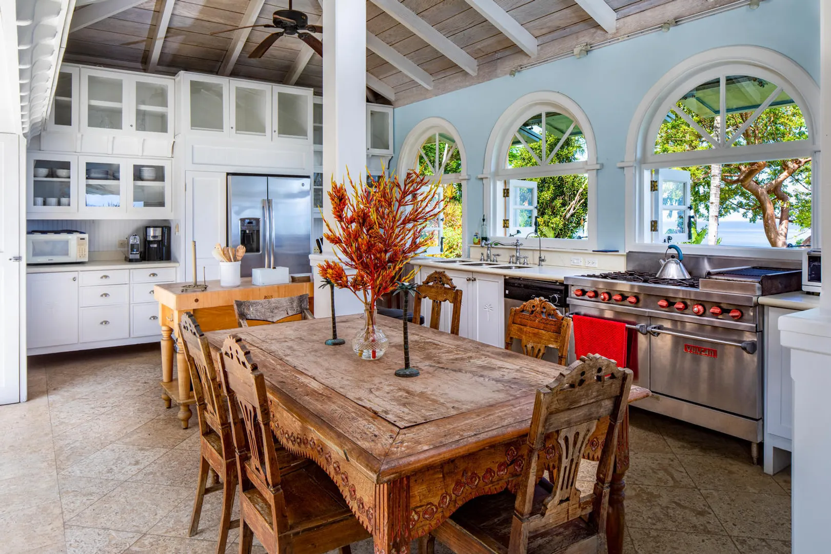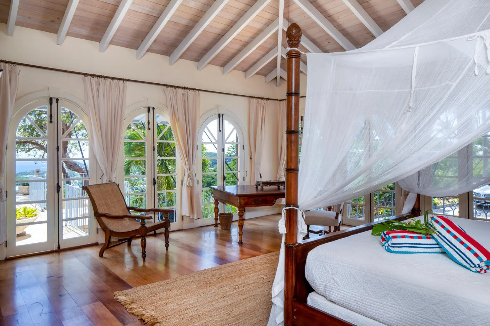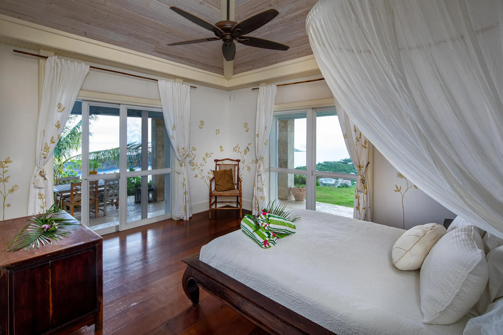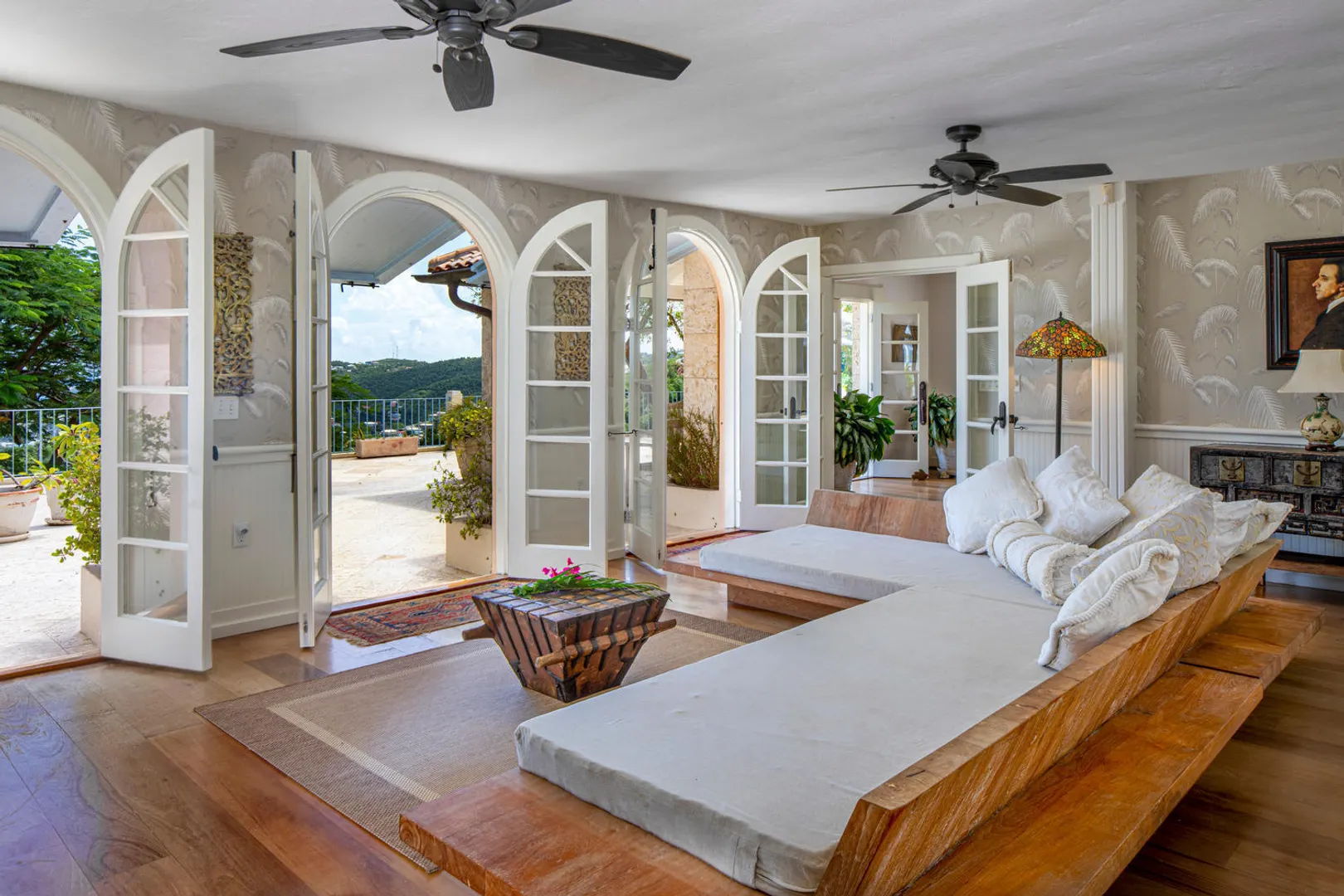 The PERFECT villa rental home - vacation here when you can - enjoy terrific rental income when you're gone. Stately and charming with celestial views and spacious indoor-outdoor flow - INDOCHINE, a 3-acre estate, is the ideal Caribbean get-away for weddings, family holidays, business retreats - or spoil yourself and make it your family home. Perched high overlooking the US & British Virgin Islands, Indochine features four en-suite bedrooms and a separate bedroom/living room suite below - all with stunning down-island views, as well as an expansive pool deck and meditation pavilion. A small studio provides a perfect dwelling for a caretaker, or use it as additional guest space. Minutes from world famous Magens Bay. Years of 6-figure rental history. Generator/AC/Gated