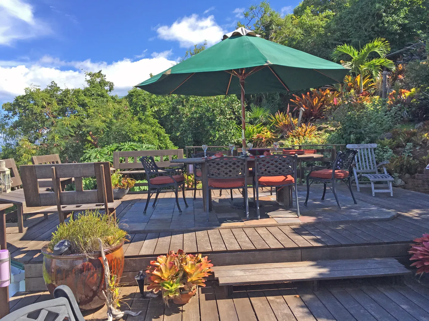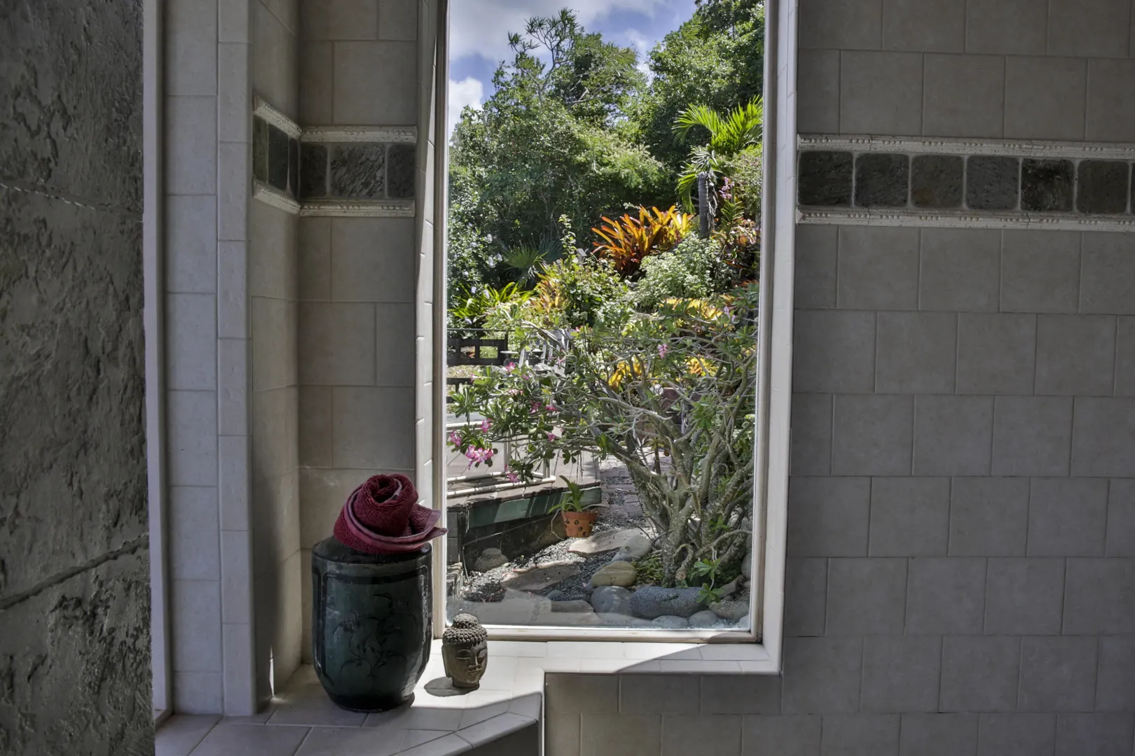 Set admidst tropical gardens on this lush 1.21 acre site, this beautiful residence offers a 270 degree ocean view and a serene and calming environ. On the main floor, 2 ensuite bedrooms are located at opposite ends of of an expansive great room which features cypress celiings,a chef designed kitchen and throughout, custom mahogany cabinetry, windows and doors. A spacious third ensuite bedroom withwalk in closet is located on the lower level serving as room for guests, a home office space or could easily be converted to a studio. Another feature is the large garage and workshop. The property is beautifully landscaped with walking paths throughout and with the panoramic ocean view, the hardwood deck offers a wonderful place to watch the moon rise and enjoy dinner with friends.