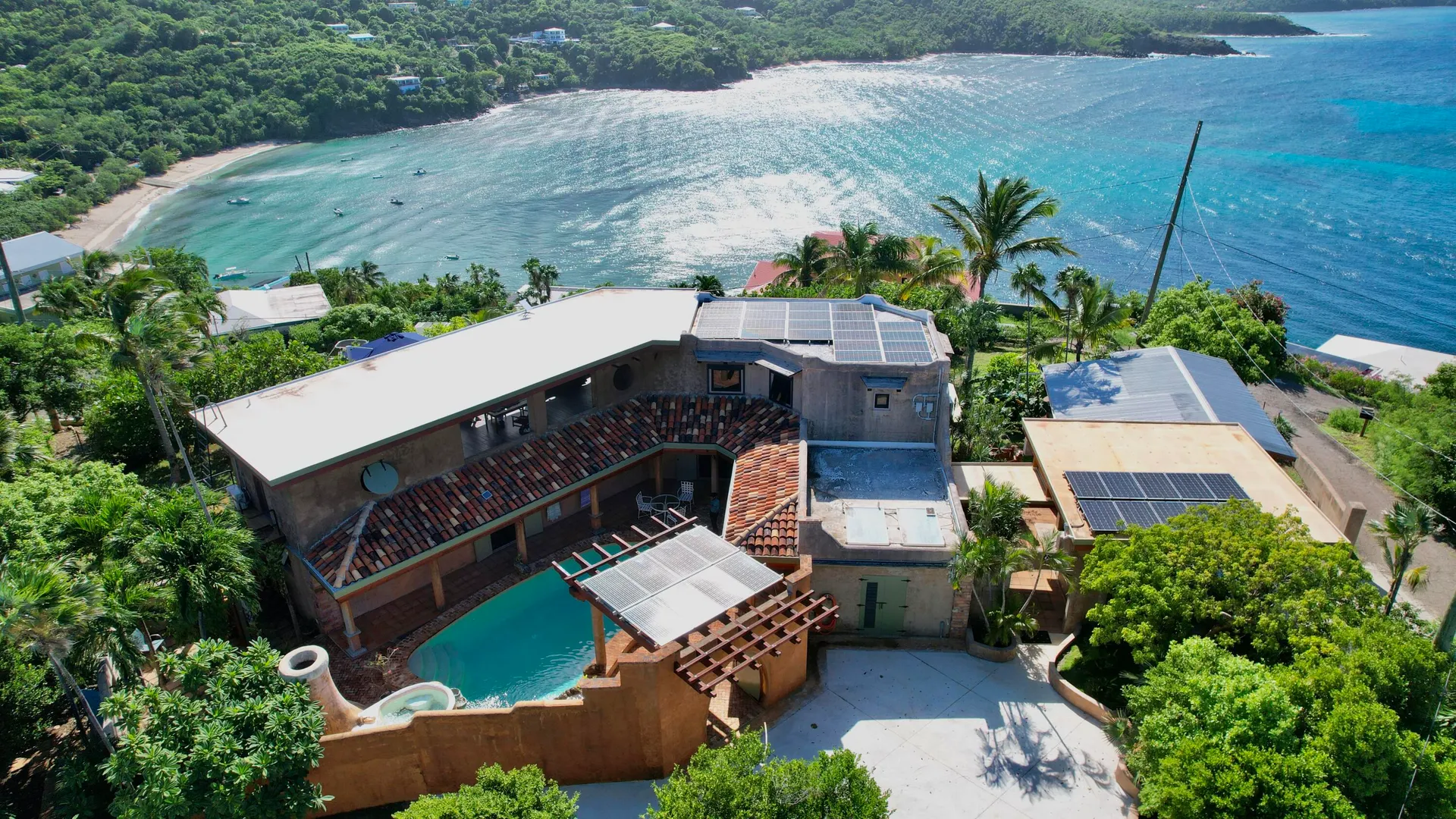 HULL BAY!!! Live where everyone else wants to!! This solid concrete home has it all!!! Walking distance to the beach, surf break, boat ramp and two restaurants. Easy lock down storm shutters. Amazing views of Hull Bay surf AND Magans Bay! Solar net metering with automatic battery back up (13KW).Car port and paved parking for 6+ cars. Two large accessory buildings for storage, workshop, studio or offices. Separate rental potential undergoing upgrade. Large unique swimming pool in courtyard with recent salt system installed. Large fenced yard with 13 types of fruit trees and the list goes on!!! Owners built this to stand up to anything and you can feel that when you enter the house!!! One of a kind!! This is what Caribbean living is all about. Truly a treasure