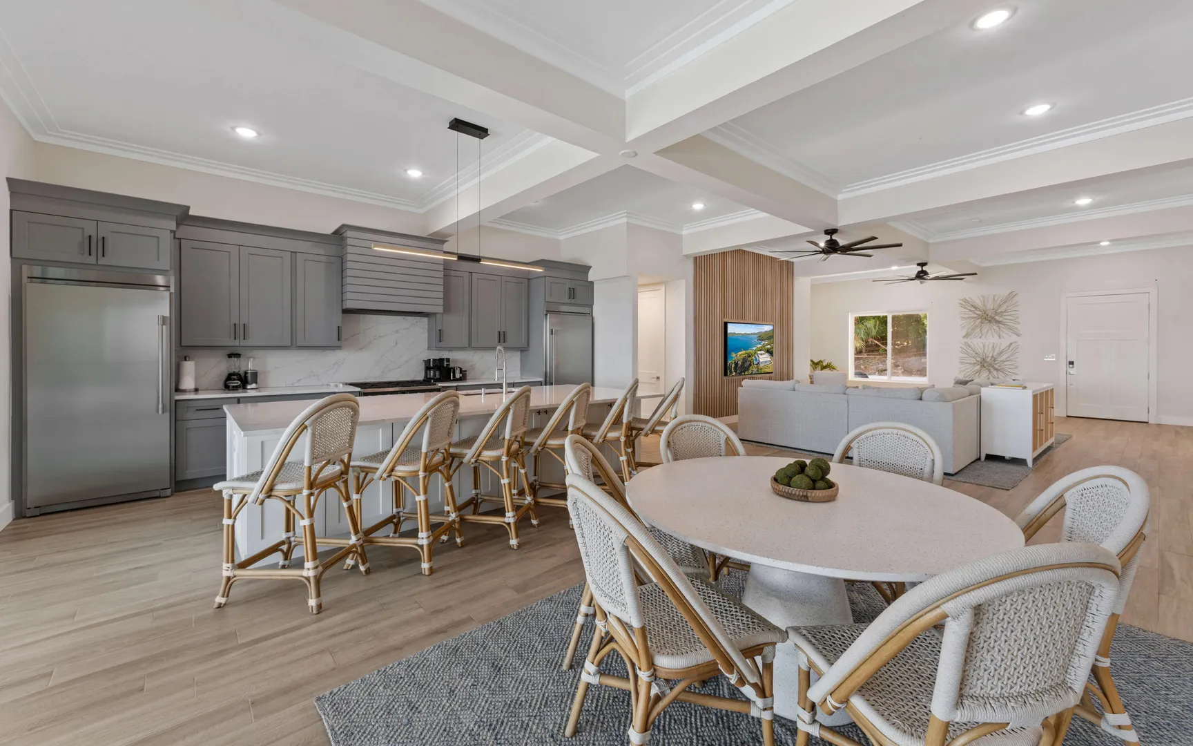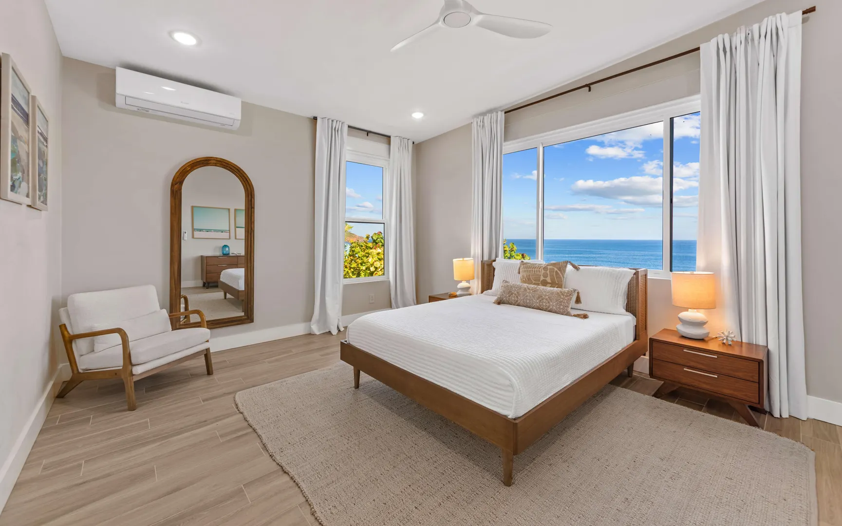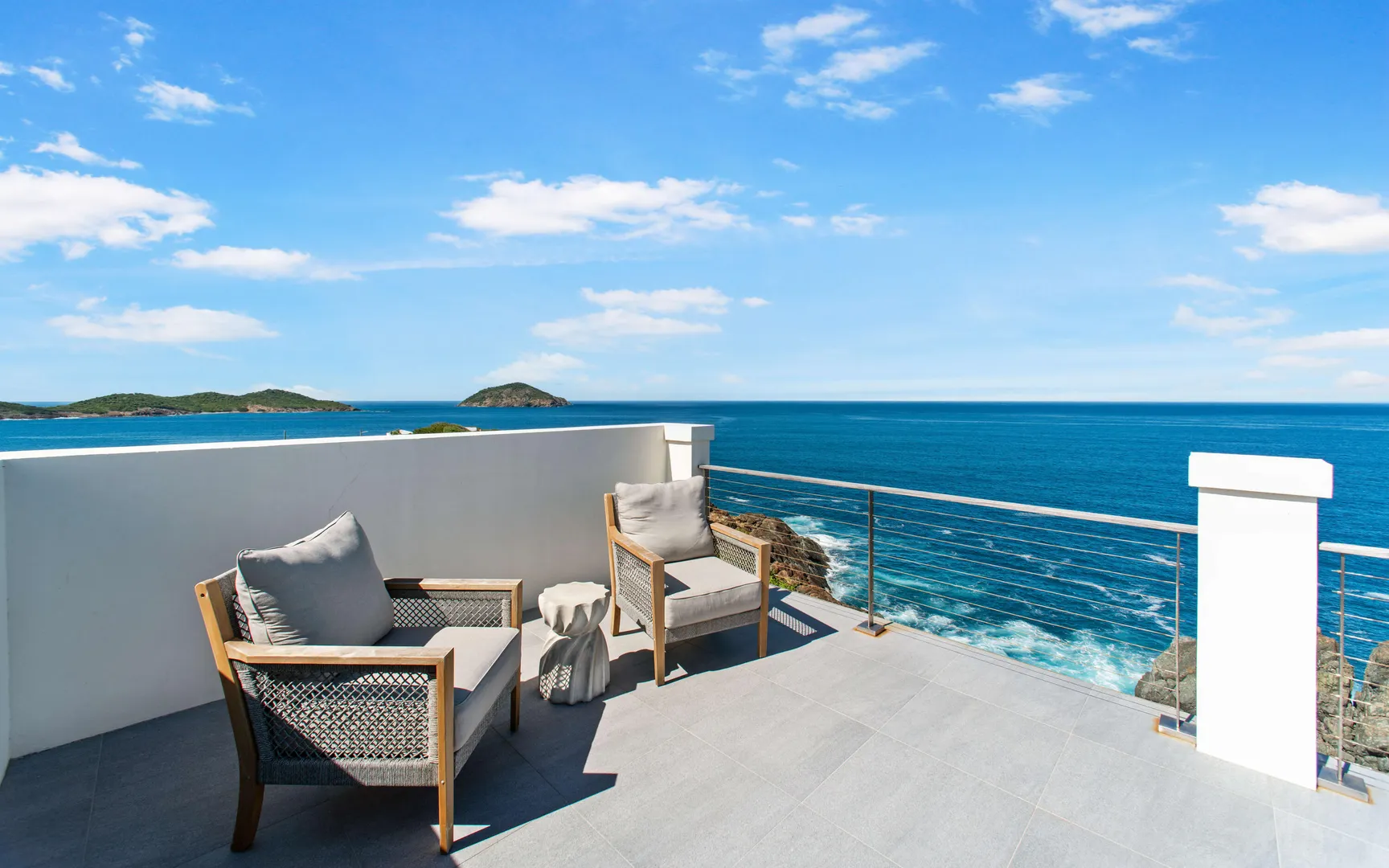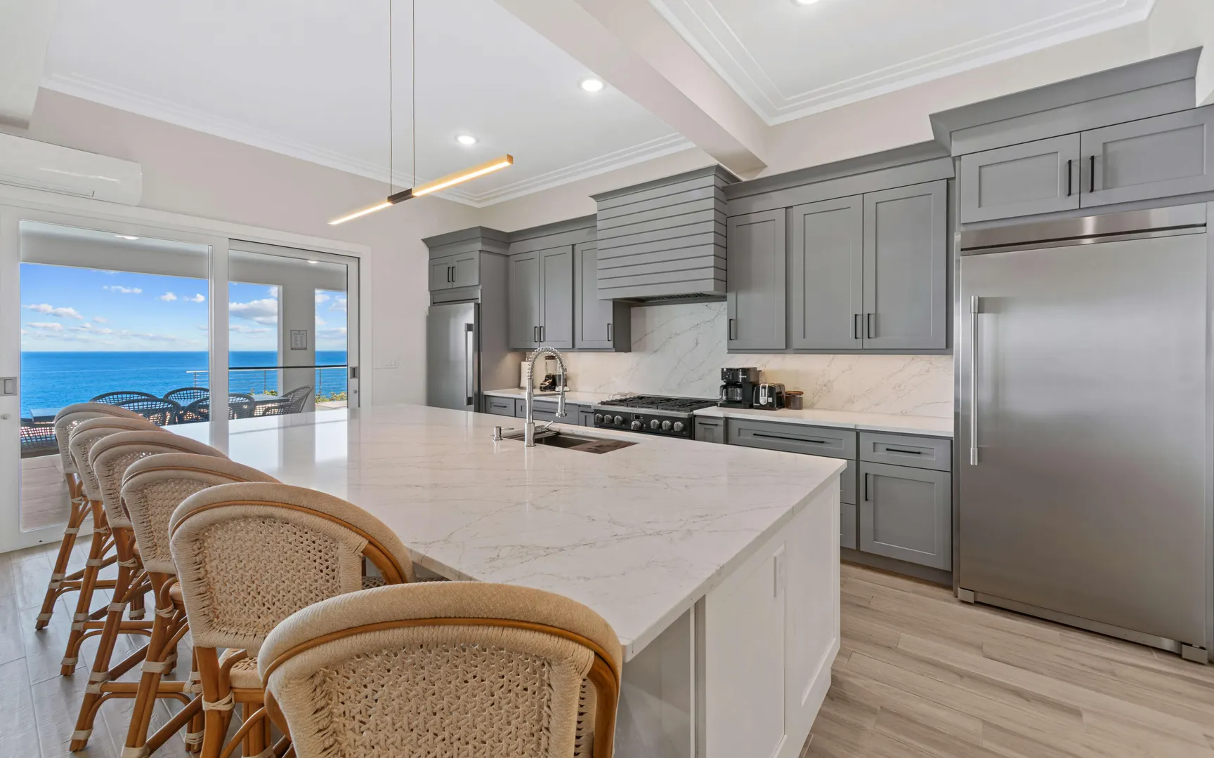 Stunning waterfront home on St. Thomas with panoramic ocean views and over 6,000 square feet of indoor-outdoor living. The main house offers 4 beds and 4.5 baths with more than 3,200 square feet inside. A separate 2-bed, 1-bath unit downstairs adds great flexibility for guests or long-term use. Built of all concrete with a concrete roof, full shutters, and a gated driveway, the home offers strength, privacy, and low-maintenance living. The great room and kitchen open to an unforgettable pool deck, with another private deck off the upper primary with exceptional views. Modern finishes, a backup generator, and the scale of new construction, without the long timelines or today's build costs, make this a standout waterfront property.