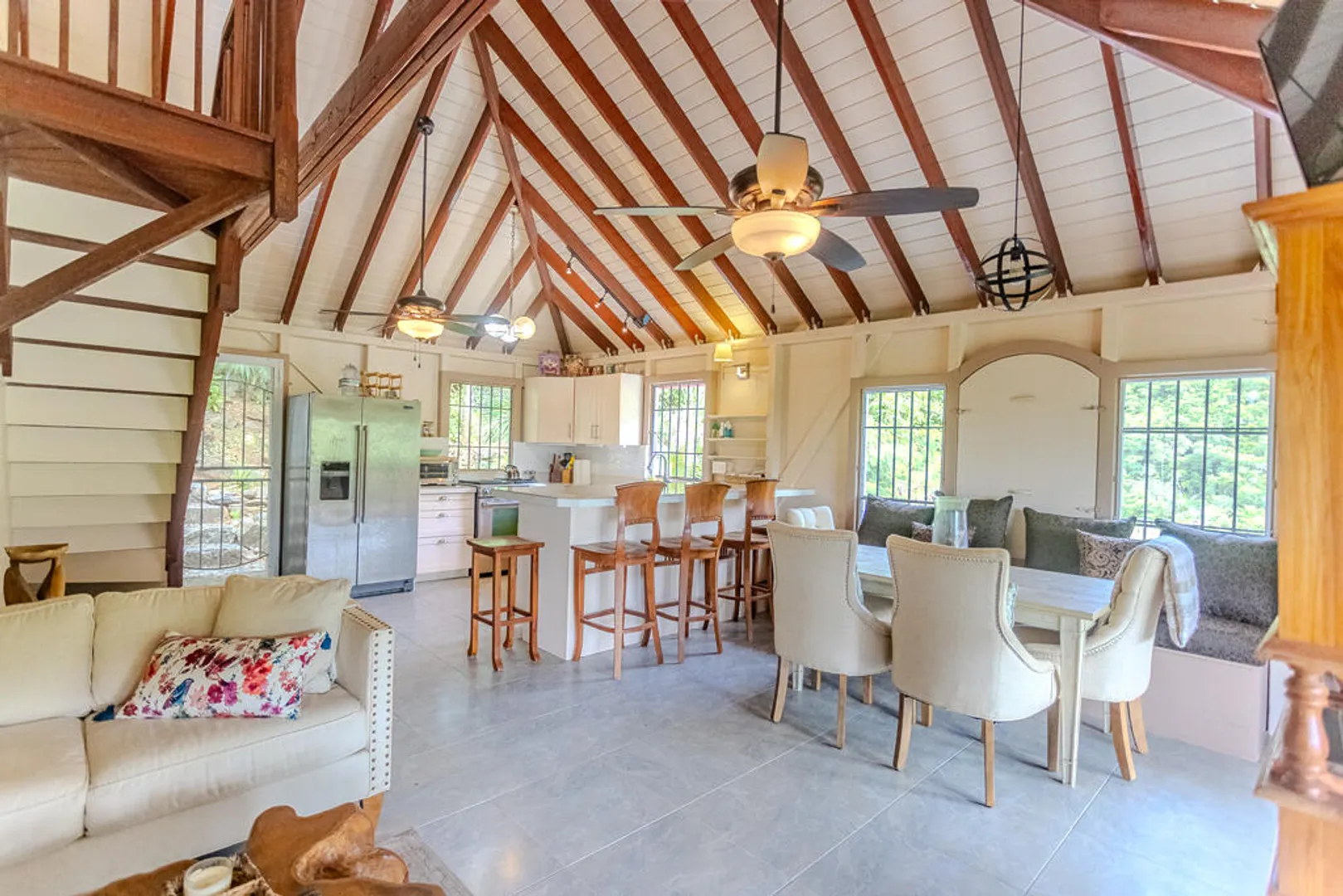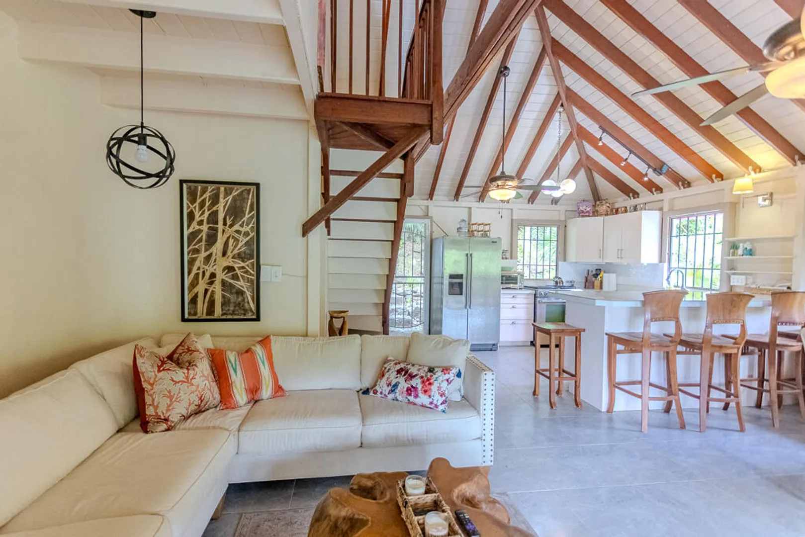 A true island retreat near the shoreline, this Tabor and Harmony property delivers charm, privacy, and flexible living. The main house offers two bedrooms with bright, coastal finishes and relaxed outdoor spaces. Below, a one-bedroom apartment with its own entrance adds income potential or comfort for visiting family. The large lot is wrapped in mature tropical landscaping, offering quiet seclusion just a short walk from the beach. A wonderful blend of character, location, and ease.
