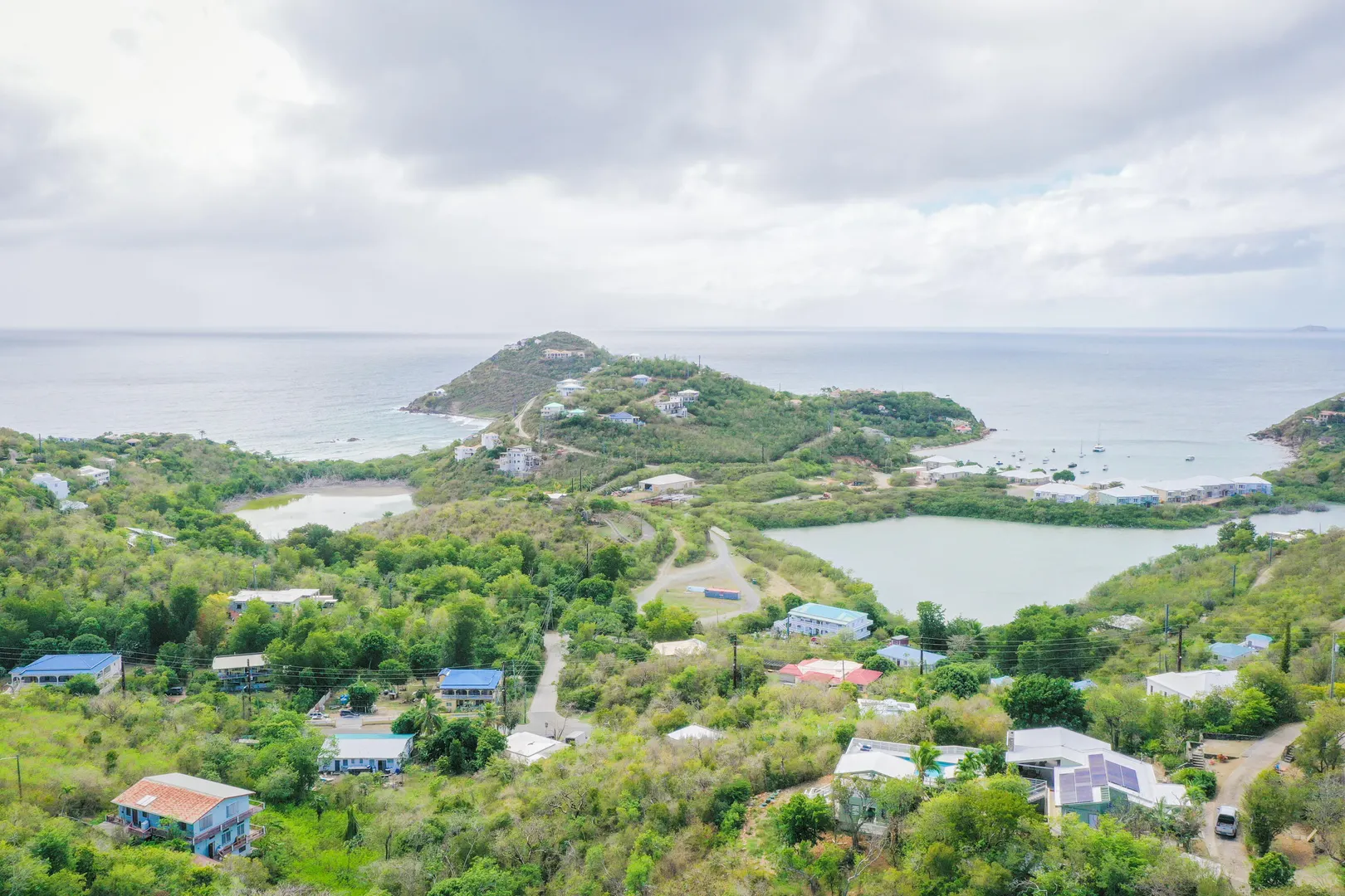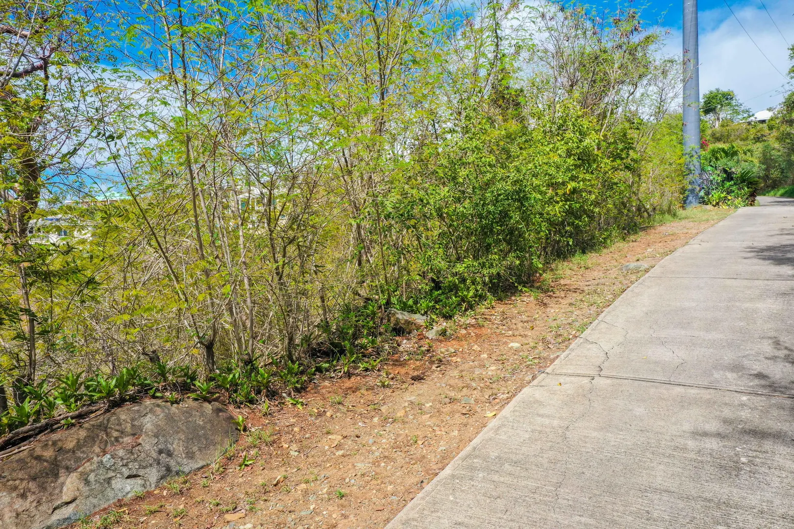 Attractive downhill build in established Estate Chocolate Hole with sunset sky views. Lovely views of Chocolate Hole and beyond from this oversized building site with a downhill slope. Paved roads and deeded beach rights to Chocolate Hole and Hart Bay.
