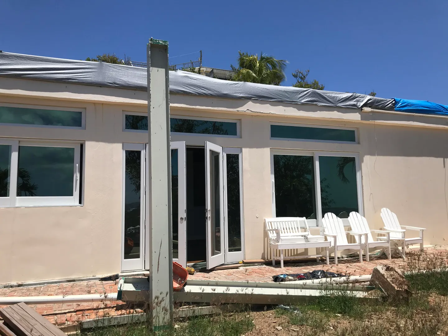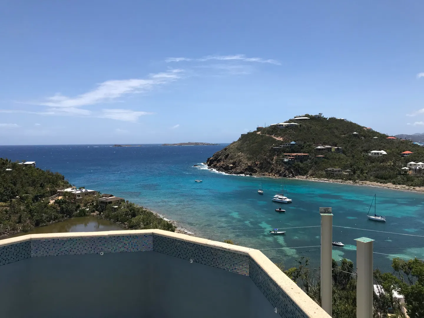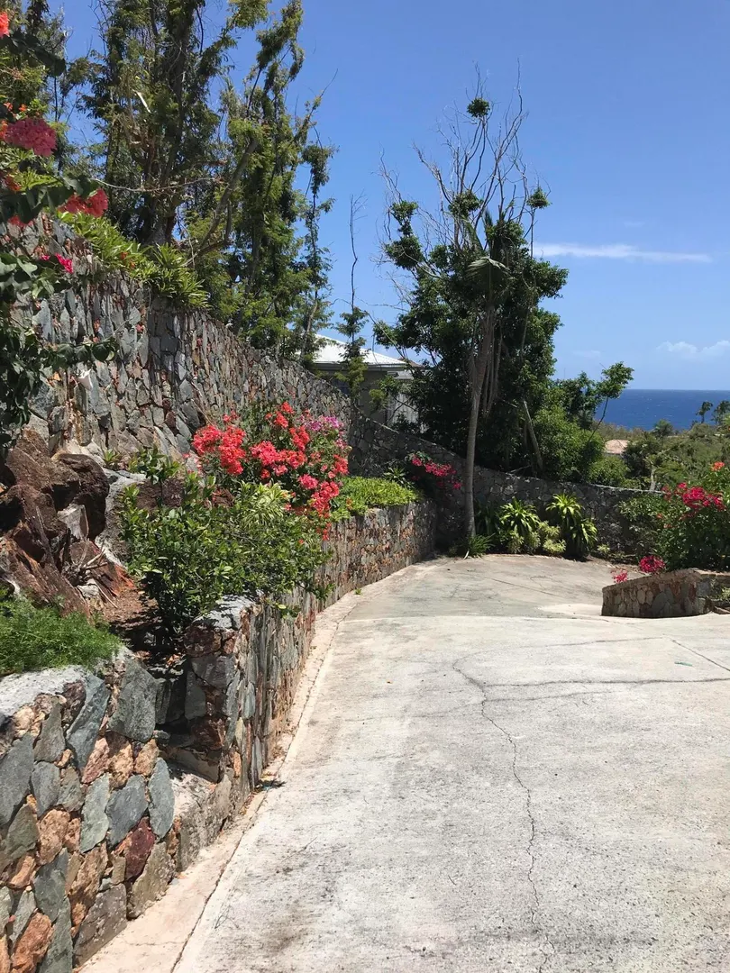 Breathtaking sunset views over Chocolate Hole harbor, beyond to St. Thomas and south to St. Croix. This storm damaged site offers a lot of infrastructure for a new owner to take over and rebuild at this gorgeous site. Located just one lot above the water and walking distance to the Chocolate Hole beach/boat access. Preliminary site plans available in documents tab. Significant investment has been made to clean, clear and preserve integrity of the site. Note encroachments as noted on the survey.Improvements In place: Masonry walls of lower level which was the floor plan for one bedroom apartment and spacious office with bath and sleeping space; Pool (resurfaced 2016); paved driveway with parking and turn around for multiple cars, stone driveway retaining walls, stone staircases, aerobic septic system (new 2015), two cisterns (recently cleaned and sealed). One bedroom apartment was completely redone in 2017 with new electrical, plumbing flooring and interiors--most of the interior was compromised after the storm with water damage. New PGT sliders and windows are in place. Buyer to split stamp tax equally with Seller.