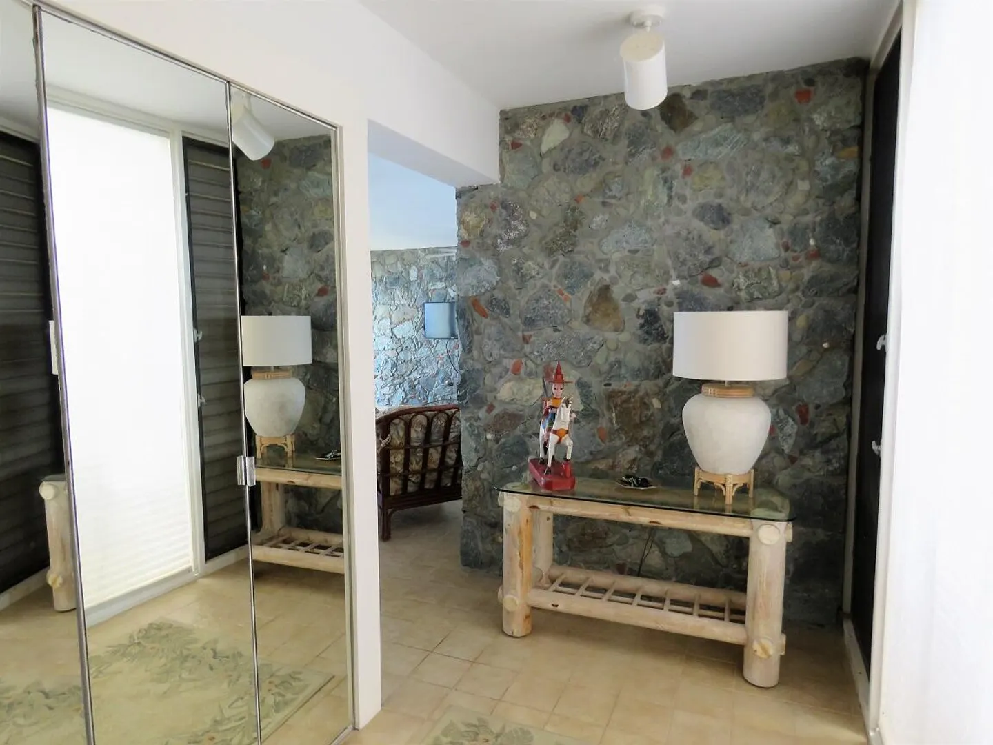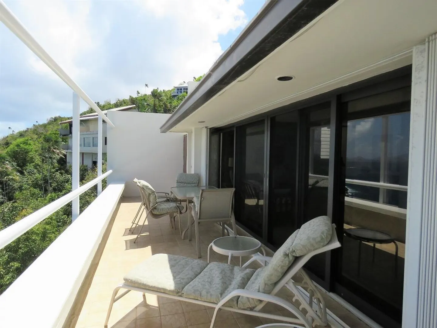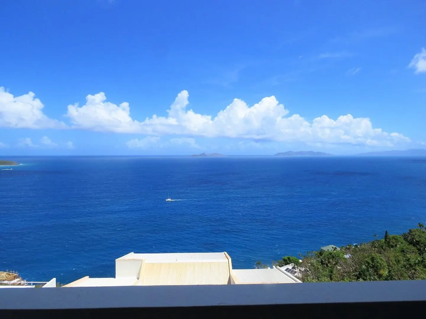 AN OCEAN VIEW FROM EVERY ROOM. Picture perfect down island views abound from this 2 bedroom condominium located at the end of a quiet cul-de-sac. A walk-in level condo with a carport that captures the easterly trade winds and has breathtaking views of the BVI's and St. John. The entryway and living room feature blue bit stone walls; the remodeled gourmet kitchen has sparkling stainless steel appliances and opens to the main living and dining area. There is an extra room off the guest bedroom that makes a great outdoor den/living area. New sliders and screen doors were installed in the living room and Master bedroom by Mahogany Run in 2016. Bright and airy and a wonderful place to call home. See new Vacation Rental Policy in Documents.