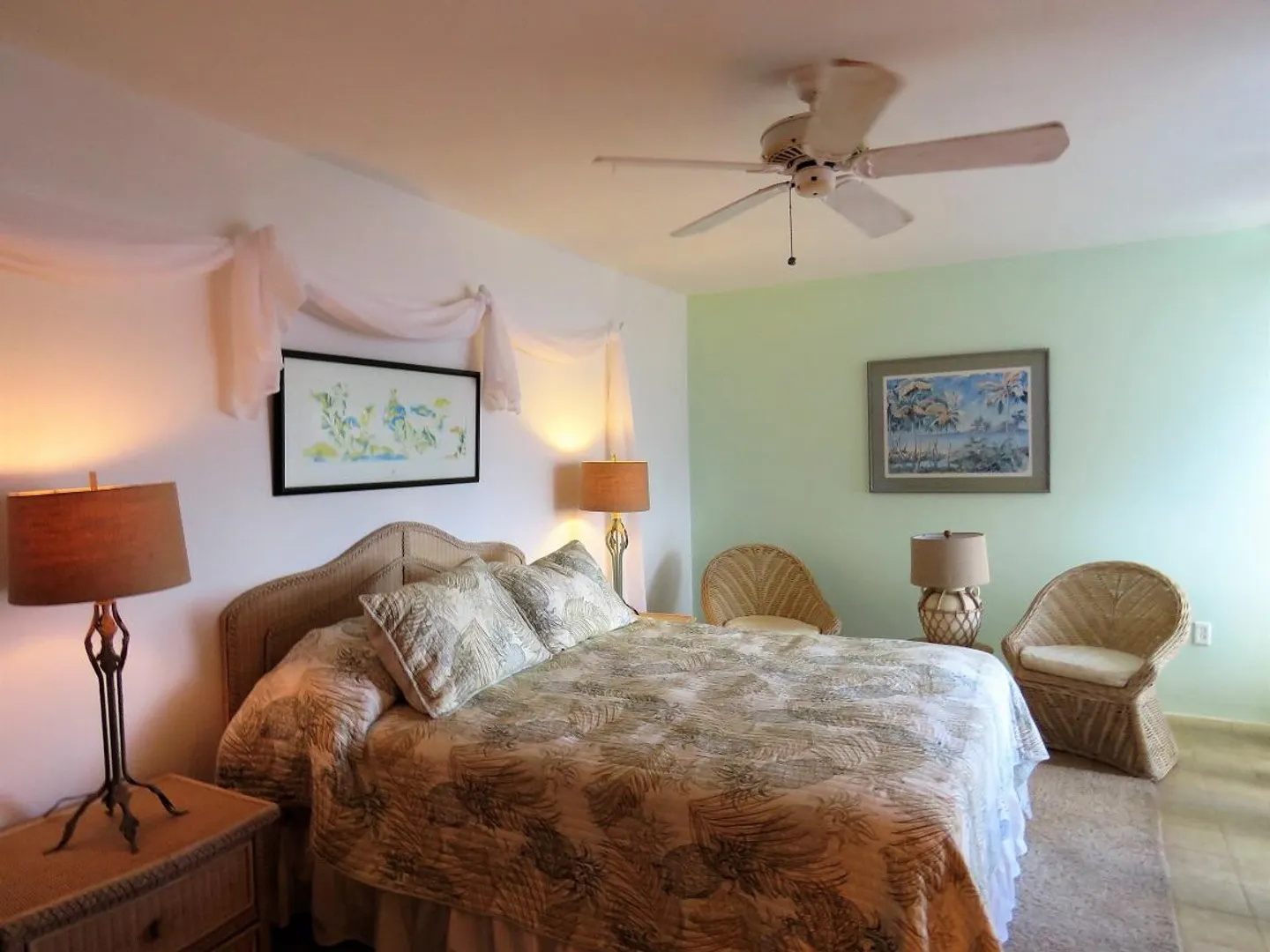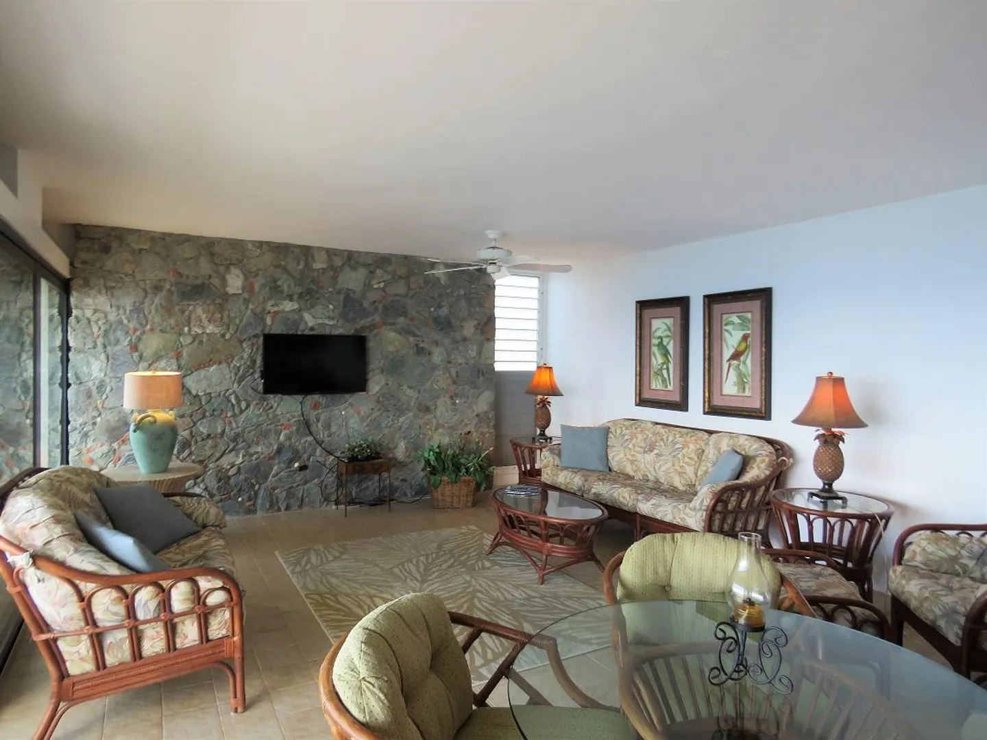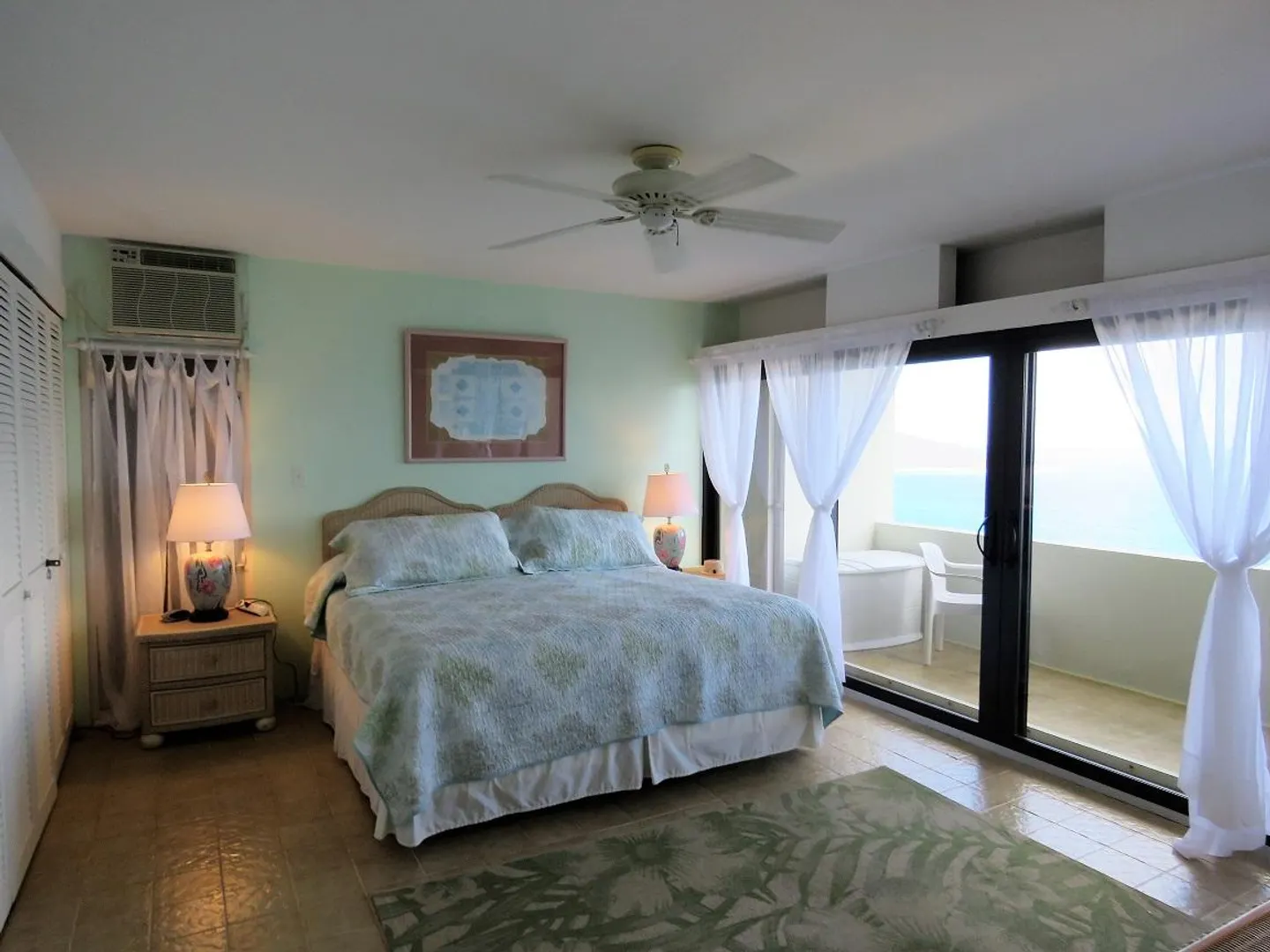 AN OCEAN VIEW FROM EVERY ROOM. Picture perfect down island views abound from this 2 bedroom condominium located at the end of a quiet cul-de-sac. A walk-in level condo with a carport that captures the easterly trade winds and has breathtaking views of the BVI's and St. John. The entryway and living room feature blue bit stone walls; the remodeled gourmet kitchen has sparkling stainless steel appliances and opens to the main living and dining area. There is an extra room off the guest bedroom that makes a great outdoor den/living area. New sliders and screen doors were installed in the living room and Master bedroom by Mahogany Run in 2016. Bright and airy and a wonderful place to call home. See new Vacation Rental Policy in Documents.