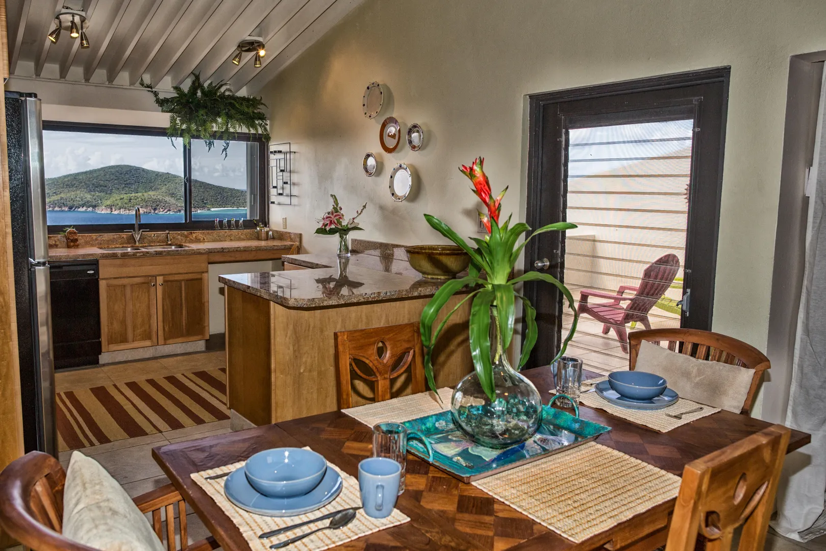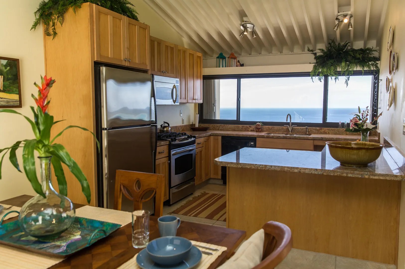 Exquisitely renovated top floor unit;featured as luxury condo on HGTV, Artfully furnished.Expansive ocean/island views from large gallery. Sunrise/sunset. Granite Kitchen counters; extensively re-designed baths; imported tile floors thru-out. Extended 2nd bedroom adds space. near end of cul-de-sac/no thru traffic. Walk to hilltop pool. Owner licensed Real Estate Broker in US.