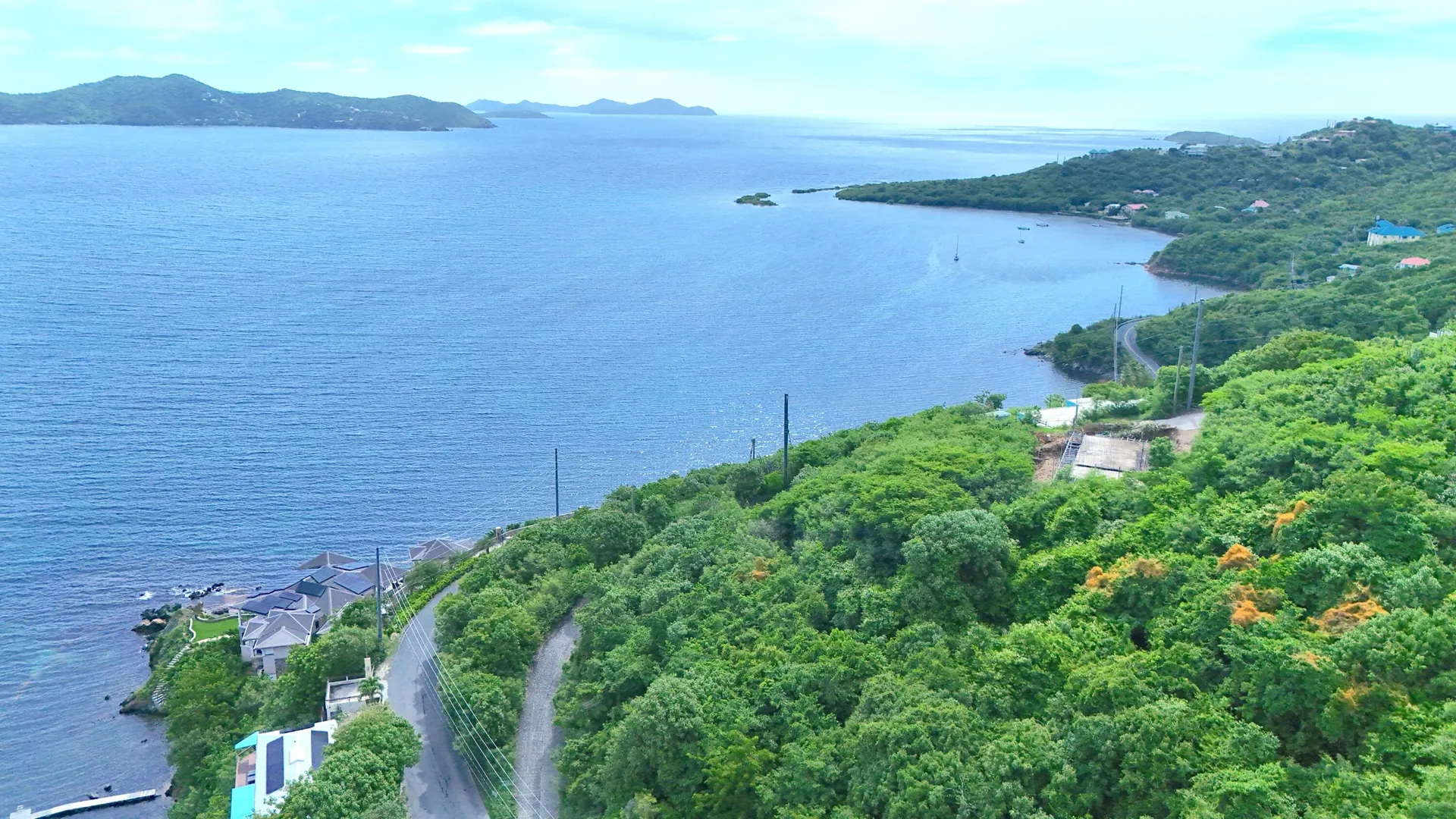 There's something truly enchanting about this Freeman's Ground gem -- a place where the rhythm of the ocean drifts up from below and the gentle sea breeze greets you each day. Just above the road off Chicago Hill, this almost waterfront location combines effortless access with the serenity of island living. From sunrise to moonrise, the views unfold in a sweeping panorama -- Coral Bay's turquoise waters shimmering below and the British Virgin Islands gracing the horizon.