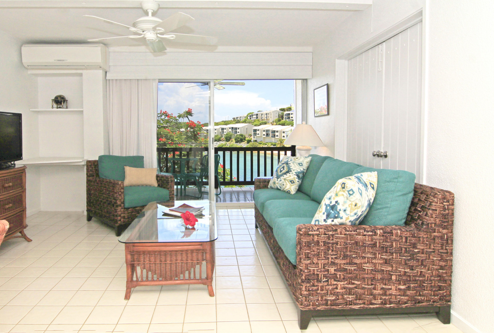 Welcome to 7 Saturdays vacation condo! You too can enjoy life with waterfront living at its best. Cowpet Bay East Condominium has just wrapped up an extensive rehabilitation post 2017 and the complex is looking very good! Walk to the beach in 2 minutes from this two bedroom two bath furnished condo. Brand new glass sliding doors in living room and master, granite counters and wood plank porcelain flooring in kitchen. Great vacation rental income can convey to new owner if desired. Condo fee $1,477.04 all in .