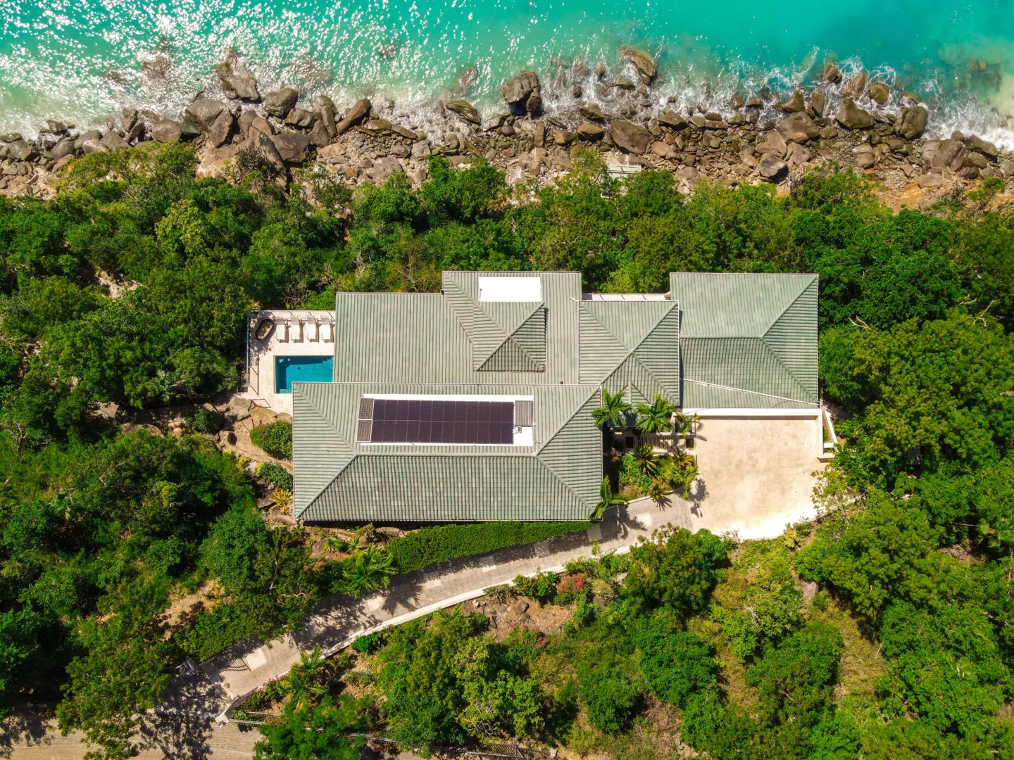 In a world that is virtually connected, why not work from your beach house? Whether as a family residence or getaway, this stunning estate languishes on an acre and a half of pristine, secluded waterfront. Need motivation? Wiggle your toes in the sand, swim in turquoise liquid. It frees the mind and soothes the soul. Architecturally, straight lines & soft curves bring the outside in, & the inside spills out onto decks overlooking Magen's Bay, arguably one of the world's sublime beaches. Laid-back luxury is evident in every room. It's a house you drift around in. It defies description, because it boils down into how you want to live, 4 swims per day, 7 chapters of a book on the pool deck or stargazing by candle light. Bathing suits & bare feet; caftans and cocktails as the sun sets