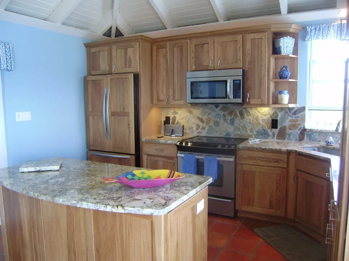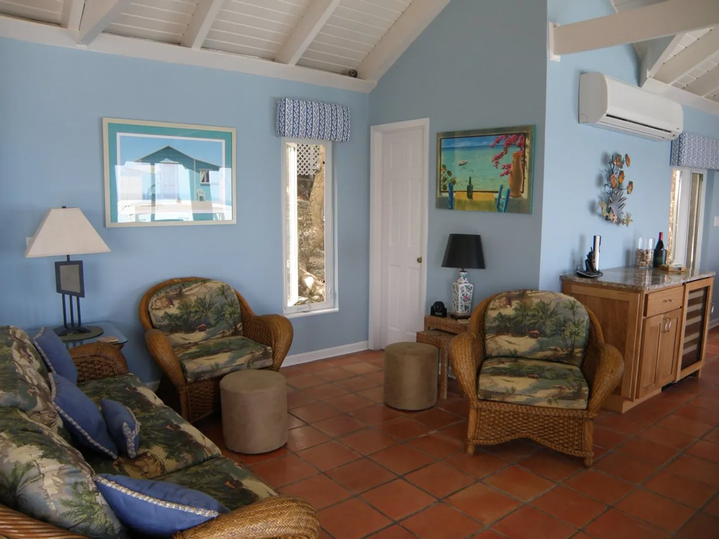 ''Crosswinds''. The waves lapping below this enchanting waterfront villa will lull you to sleep & come morning, watch the sunrise over the distant islands. Two bedroom suites & a self contained cottage just steps away. Newly remodeled kitchen (3/11),generator & more (see Supplement). 'Crosswinds' comes fully furnished & equipped. The lush tropical grounds are a Certified Wildlife Habitat.LIST OF IMPROVEMENTS 9-1-27 Estate Peterborg Crosswinds New kitchen completed March 2011 with hickory cabinets, granite countertops, hickory paneled appliances. KitchenAid dishwasher, refrigerator, garbage disposal. Whirlpool stove and built in microwave. KitchenAid 2-temperature wine cooler. New vanities in bathrooms March 2011. New 30k Tradewinds generator, powdered aluminum housing (to prevent rusting)and diesel fuel storage. Installed February 2011. Heated pool with chlorinator. Diamond bright surface. UV water filtration system Air conditioning throughout. 2 mosquito magnets Minifridge in lower bedroom In floor Safe Bose sound system in living room and poolside Satellite dish with HD and 3 LCD flat panel 1080 HD TVs with 2 Blu Ray DVD players Timer controlled sprinkler system for landscaping 2 alfresco showers, one in the main house Hurricane/security film on windows and sliders (Llumar, a Kevlar based protection). 2 phantom door screens. Camera surveillance system (4 cameras with monitor).